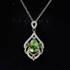 A beautiful blend of elegance and meaning, this Peridot Teardrop Necklace is designed to touch hearts with its graceful charm. Handcrafted in 14k yellow gold plated silver, the Designer Necklace features a stunning 8X10 MM pear shaped natural peridot set securely in prongs at the center of a delicate teardrop frame. The vivid green hue of the peridot represents harmony, strength, and new beginnings, making this piece ideal for brides or as a thoughtful gift for someone born in August. The teardrop frame is accented with round lab grown diamonds, adding just the right amount of sparkle while highlighting the gemstone’s natural beauty. Every detail speaks of refined craftsmanship, from the gentle curves of the pendant to the shimmering center stone that catches the light with every movement. Suspended from a sleek and adjustable chain secured with a lobster clasp, this Peridot and Diamond Necklace allows for versatile styling. The teardrop shape, often seen as a symbol of joyful emotions, adds a sentimental touch, making this Wedding Necklace for Bride more than just a piece of jewelry, it is a keepsake. Perfect for weddings, anniversaries, or birthdays, this Peridot Pendant Necklace is a timeless expression of love, grace, and individuality.