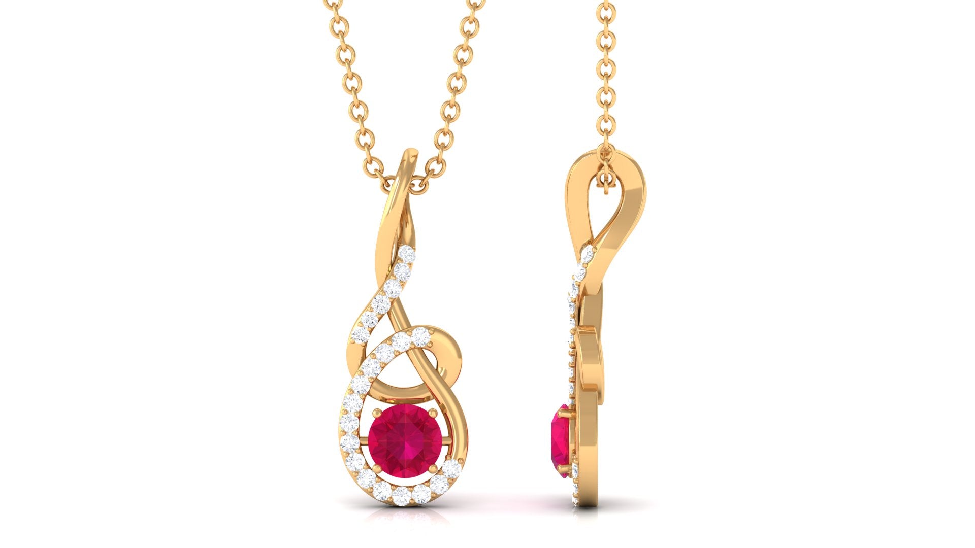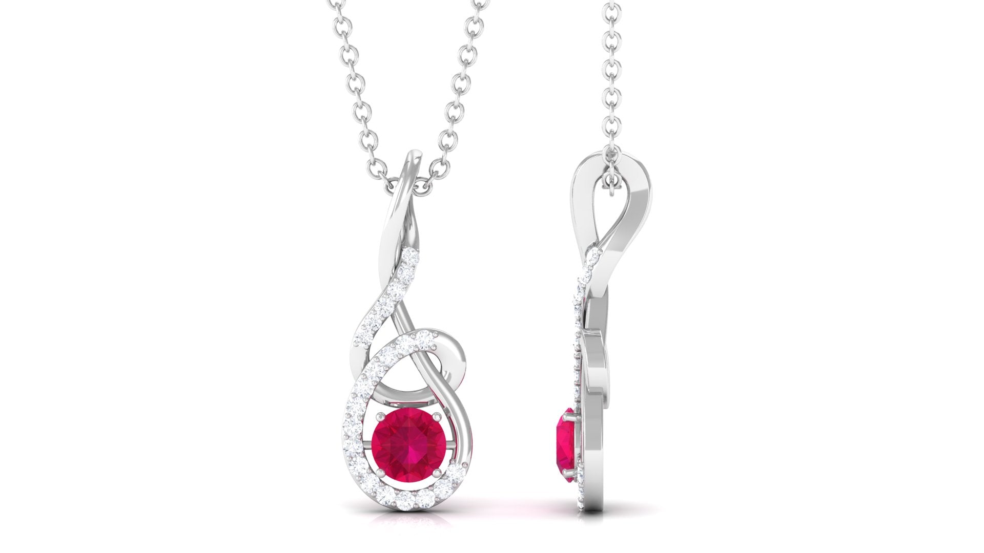 Designer Round Ruby and Diamond Twisted Drop Pendant
