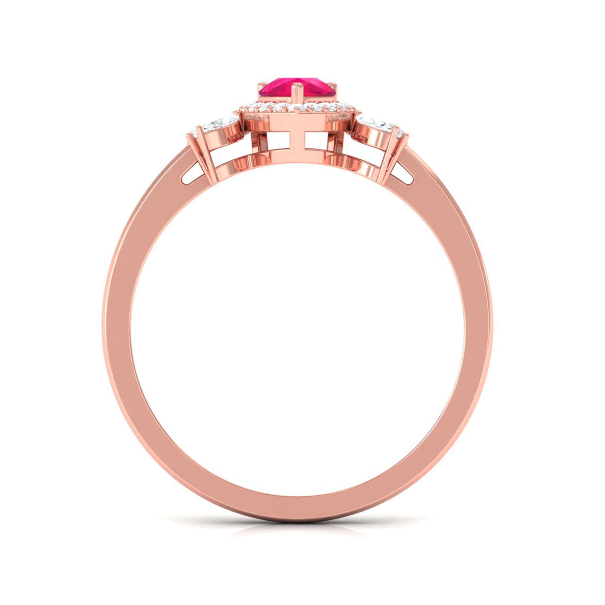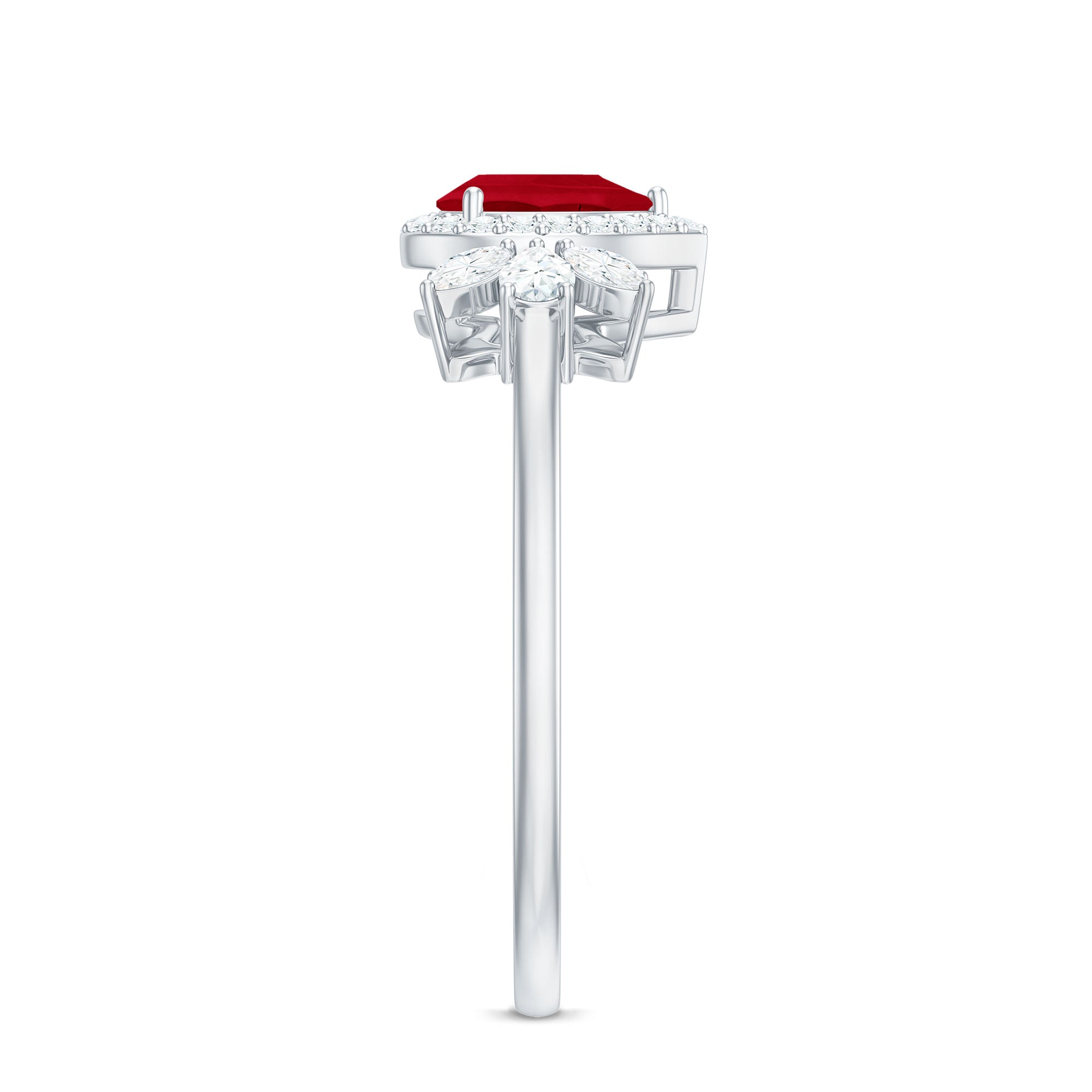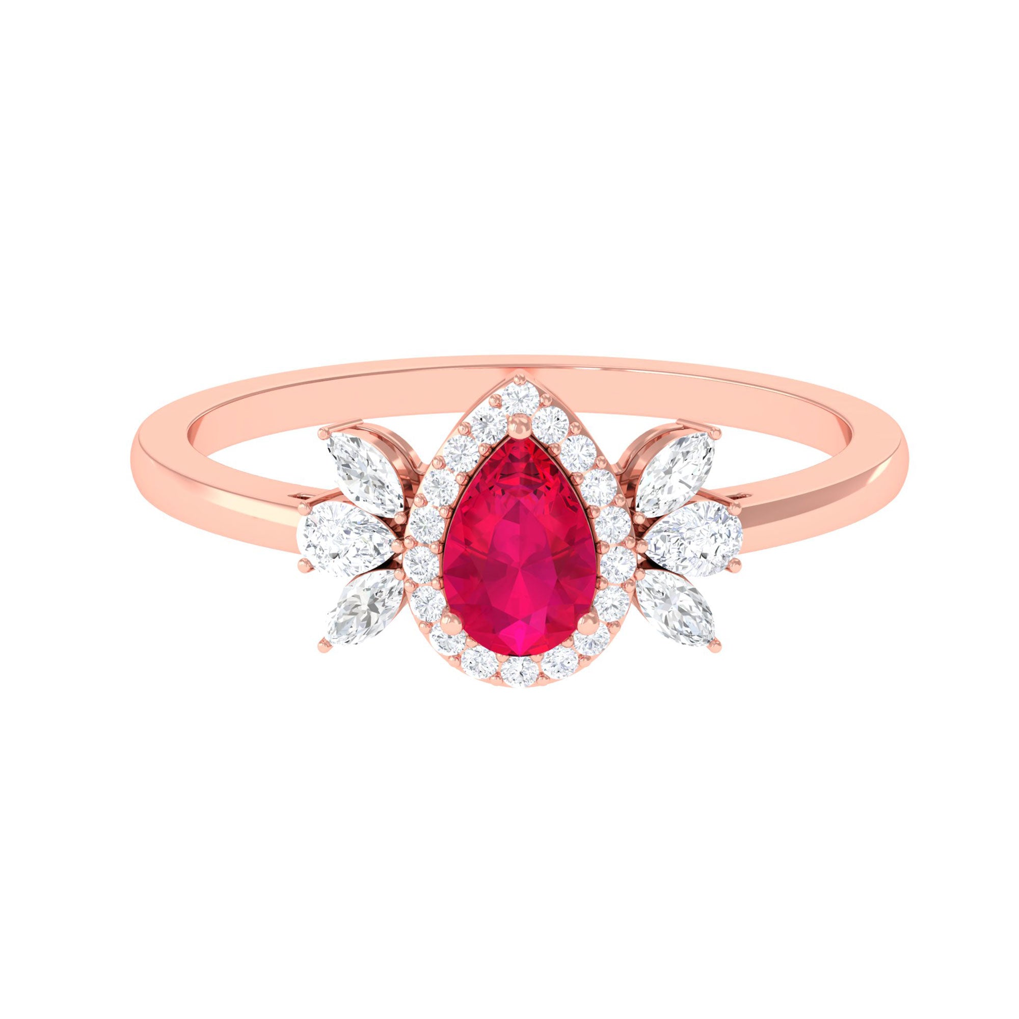 Designer Ruby and Diamond Halo Teardrop Engagement Ring