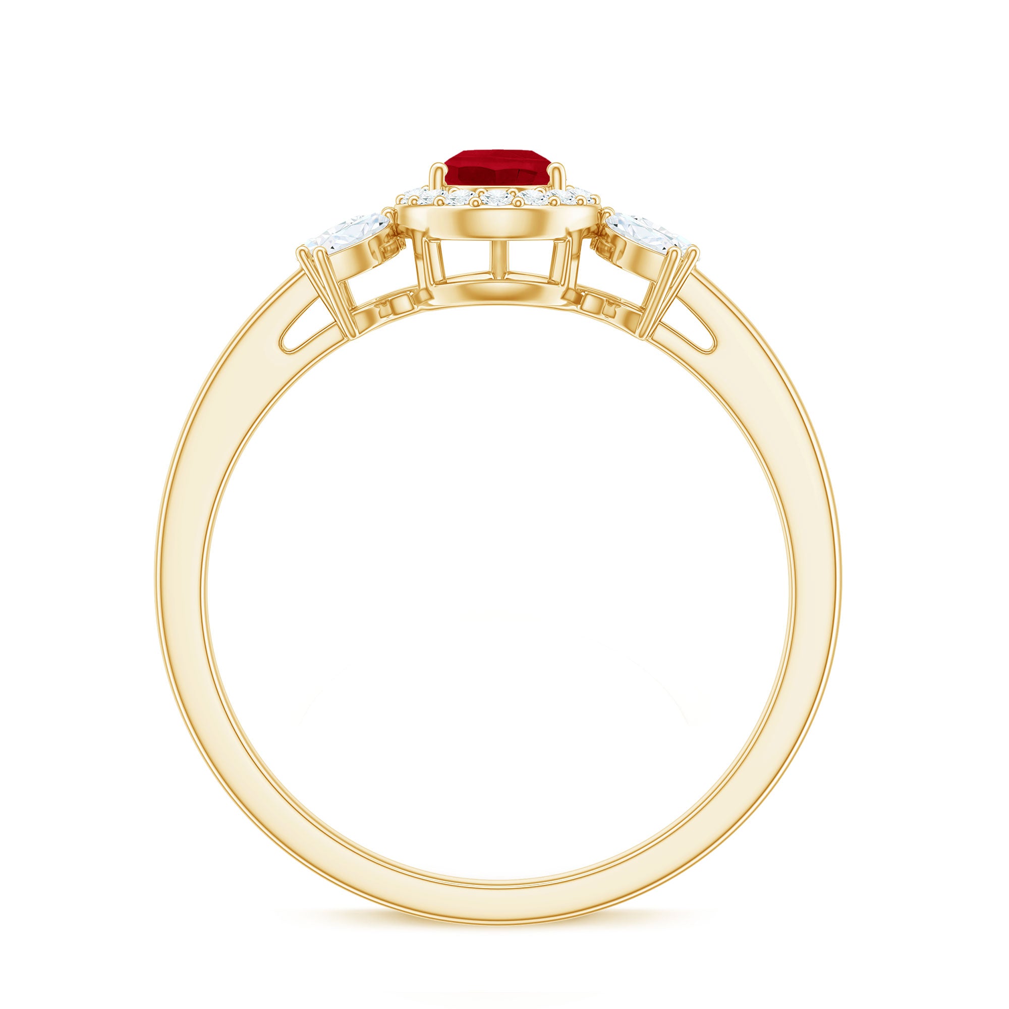 Captivate all eyes with the enchanting Teardrop Engagement Ring, designed to capture attention effortlessly. Featuring a dazzling pear-cut ruby delicately set in a three-prong setting and accentuated with marquise, round, and pear-cut Diamond stones on the engagement ring, this piece is perfect for any occasion.