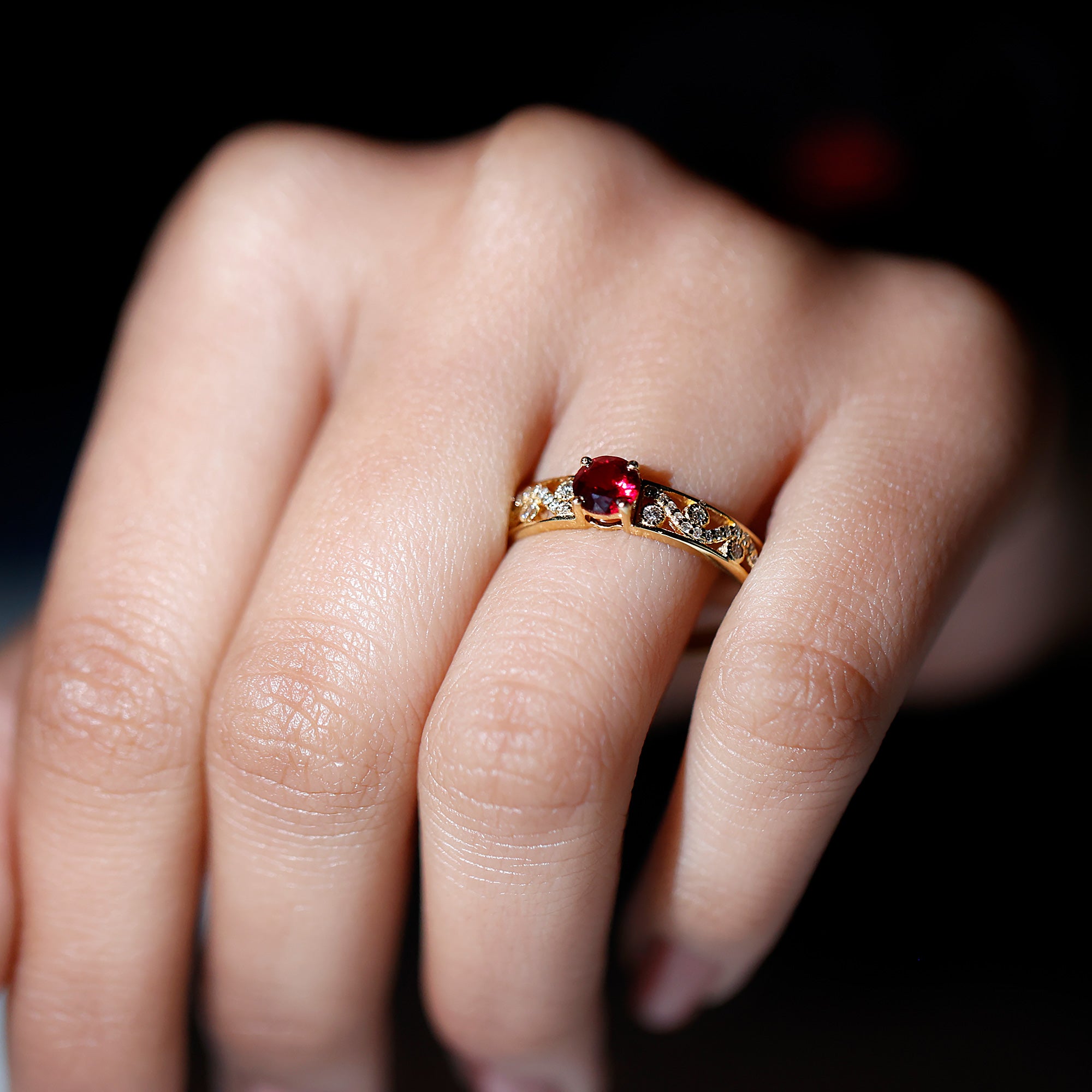 Designer Solitaire Engagement Ring with Lab Grown Ruby and Diamond