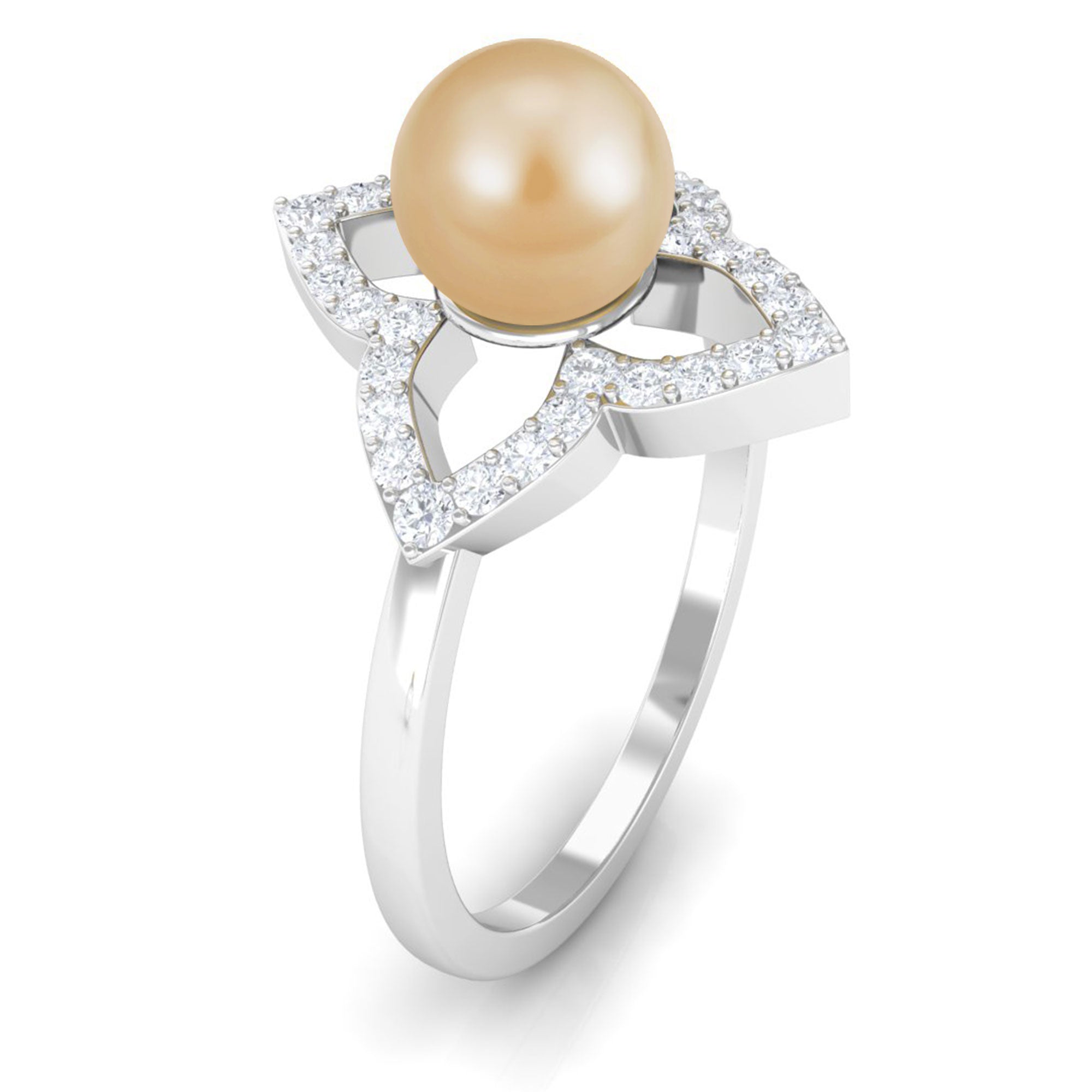 Elevate your look with the beautiful South Sea Pearl Floral Ring, perfect for those with a flowery and blossoming personality. The round South Sea pearl is set at the center, surrounded by a delicate Diamond floral halo that adds a touch of elegance and femininity. This engagement ring is perfect for June women looking to make a smashing statement and enhance their already stunning appearance.