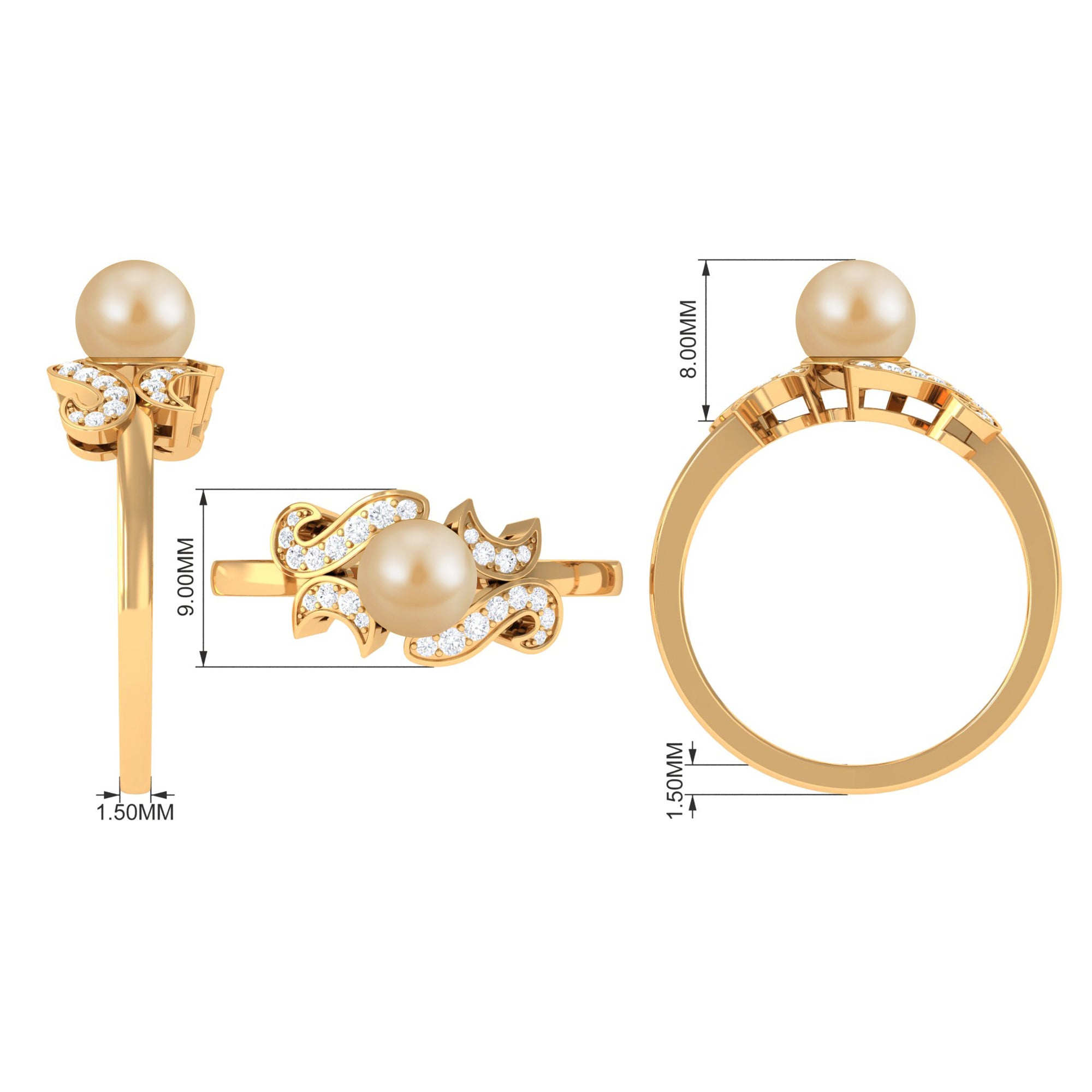 Perfect connotation to symbolize the serenity and purity of love and relationship, this South Sea Pearl Engagement Ring is crafted in Gold for sumptuous charm. This Designer Engagement Ring has round petite Diamond stones to give this ring a more luxurious look. Stunningly adorn yourself with this South Sea Pearl and Diamond Ring.