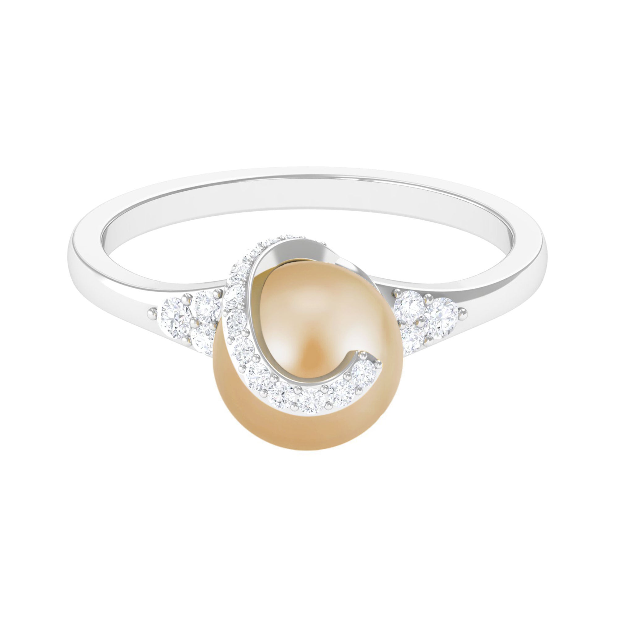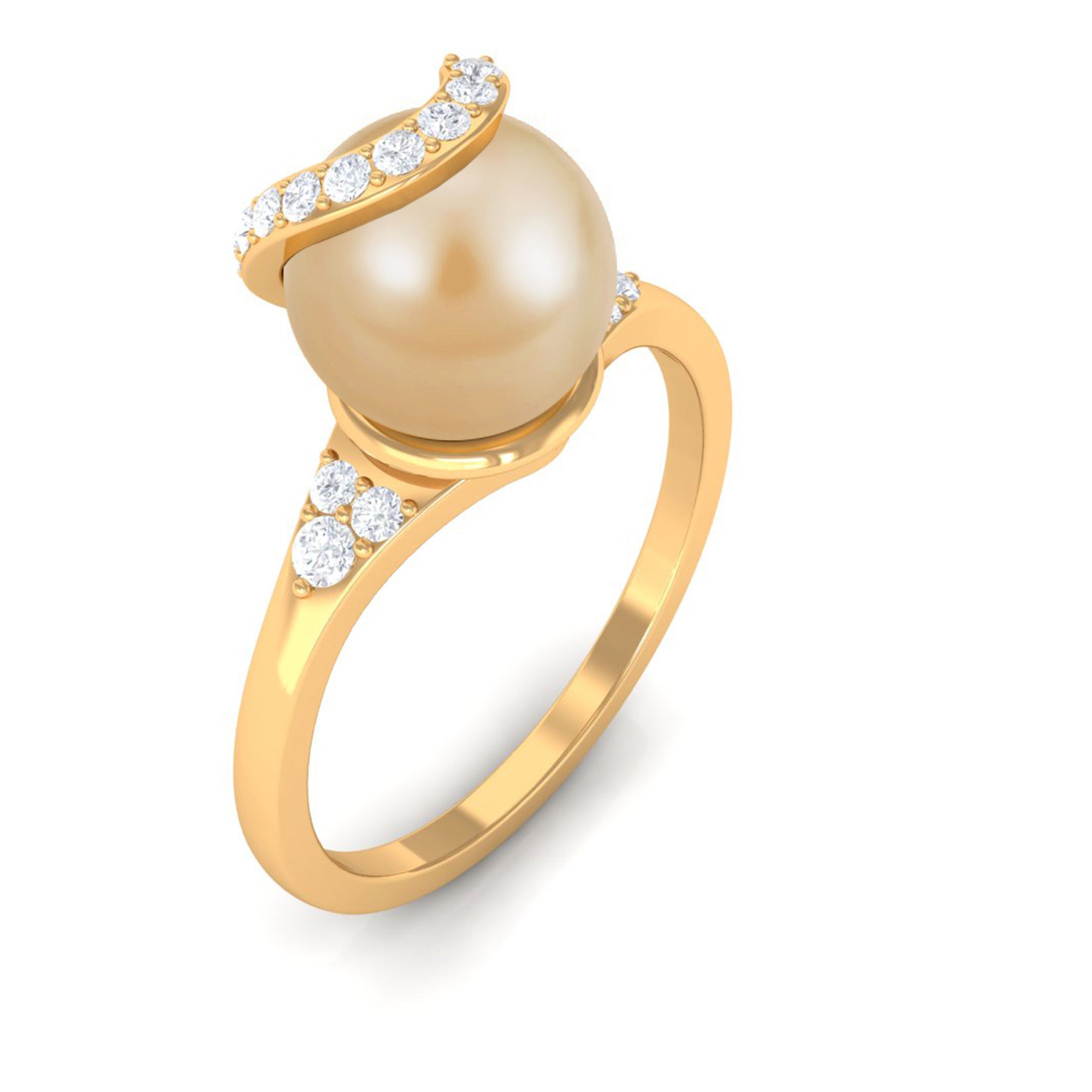 Designer South Sea Pearl Solitaire Engagement Ring with Diamond