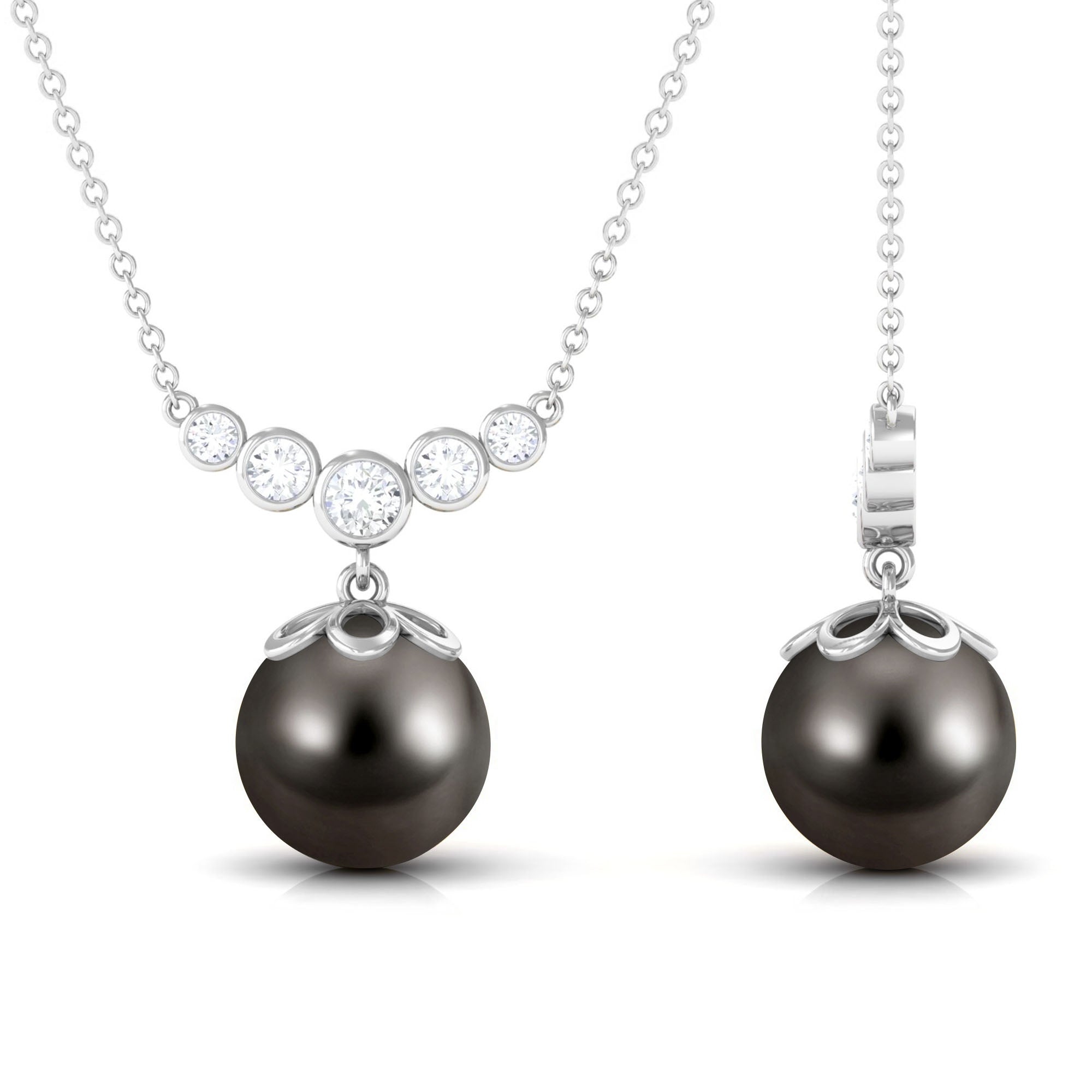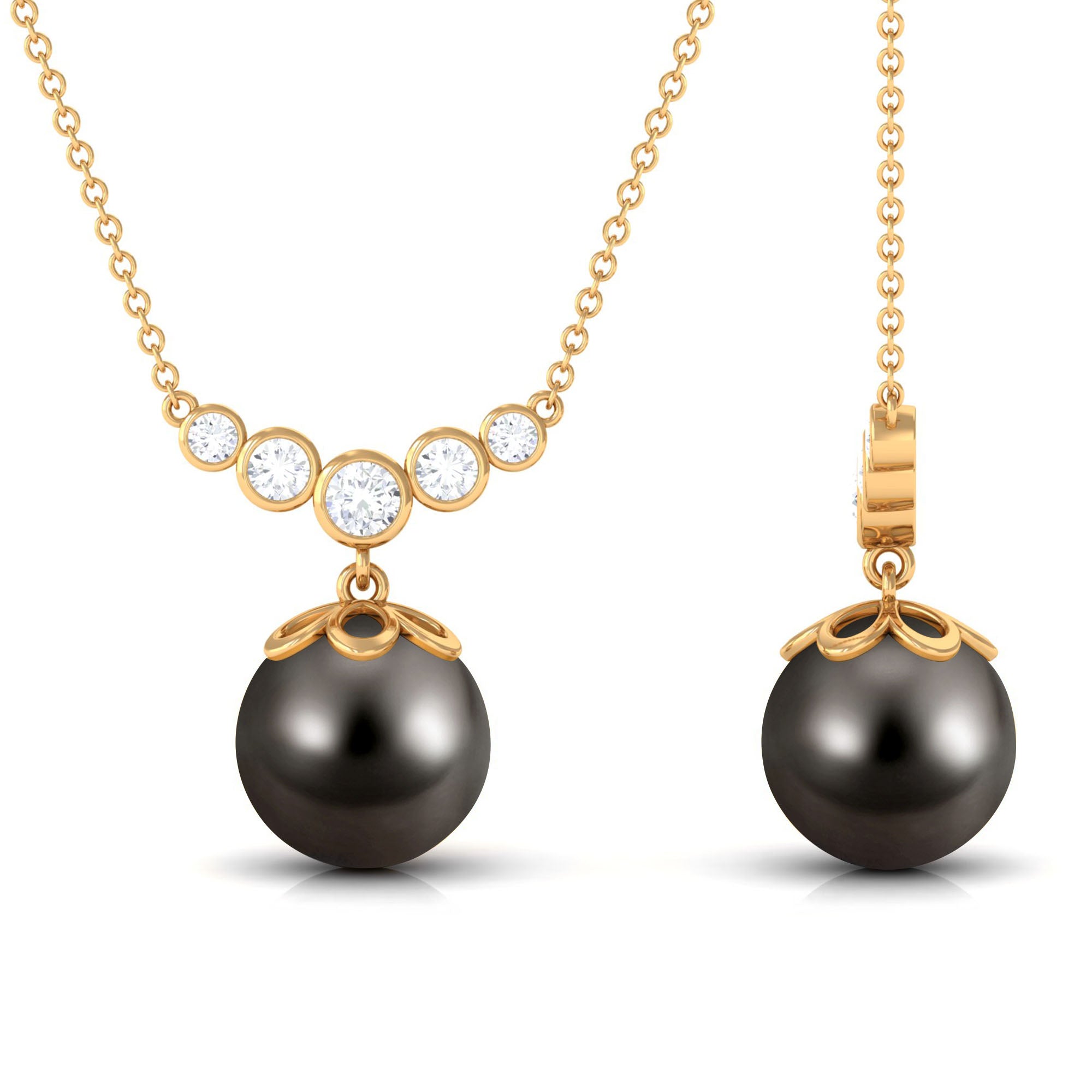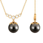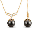 Elevate your style with this magnificent Graduated necklace showcasing a round Tahitian pearl as drop. The mesmerizing beauty of the pearl is accentuated by the presence of bezel-set round Diamond stones, arranged in a graduated style. The rich, dark allure of the Tahitian pearl combined with the sparkling brilliance of the Diamond creates a captivating contrast.