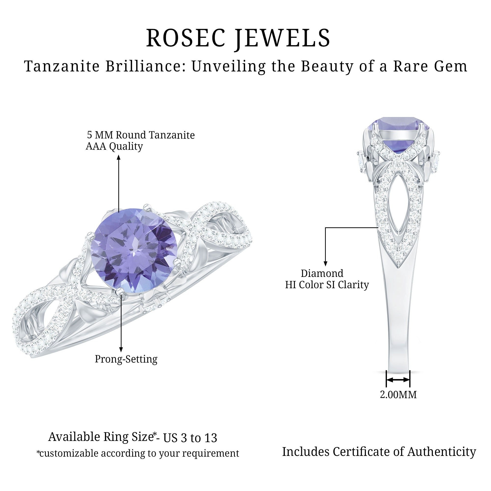 Designer Tanzanite and Diamond Crossover Engagement Ring