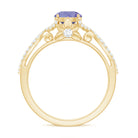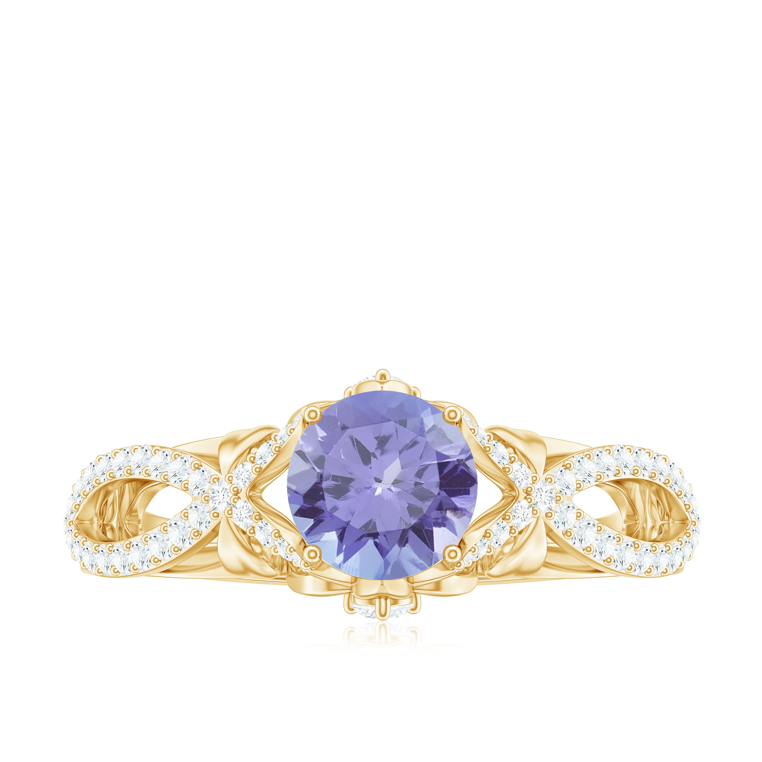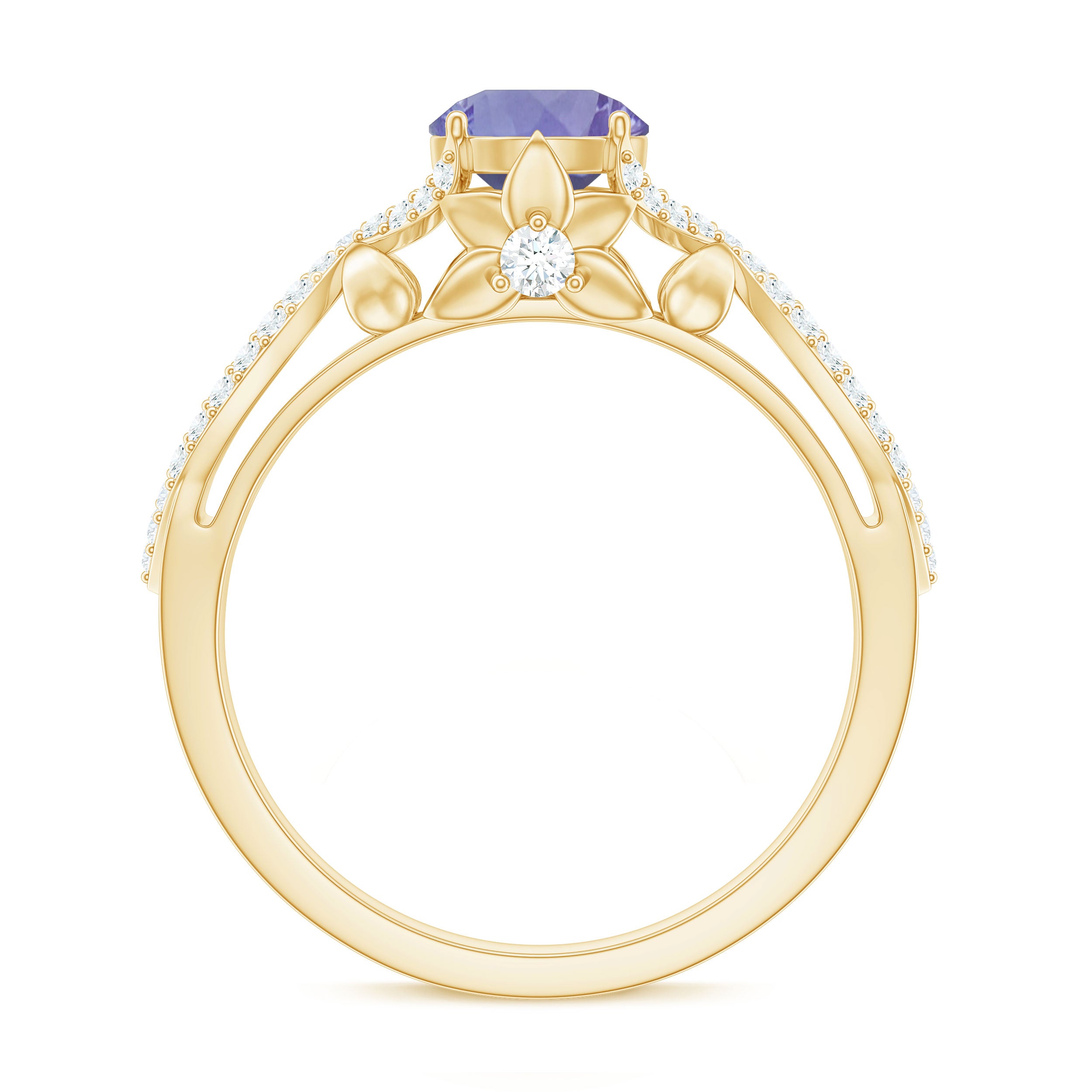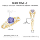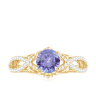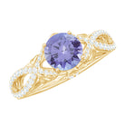 If she is all about grand gestures of love, this Tanzanite Engagement Ring would sweep her right off her feet. Sitting pretty at the center, the Single Stone of 6 MM Round Shape Tanzanite adds a royal flair with its purple hue, sparkled up by hidden stone of Diamond. Nestled atop a Diamond encrusted Crossover Shank, this Certified Tanzanite Ring is any day an extraordinary token of love, just like her.