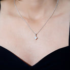 Diagonal Set 8 MM Zircon Princess Cut Solitaire Pendant With Chain