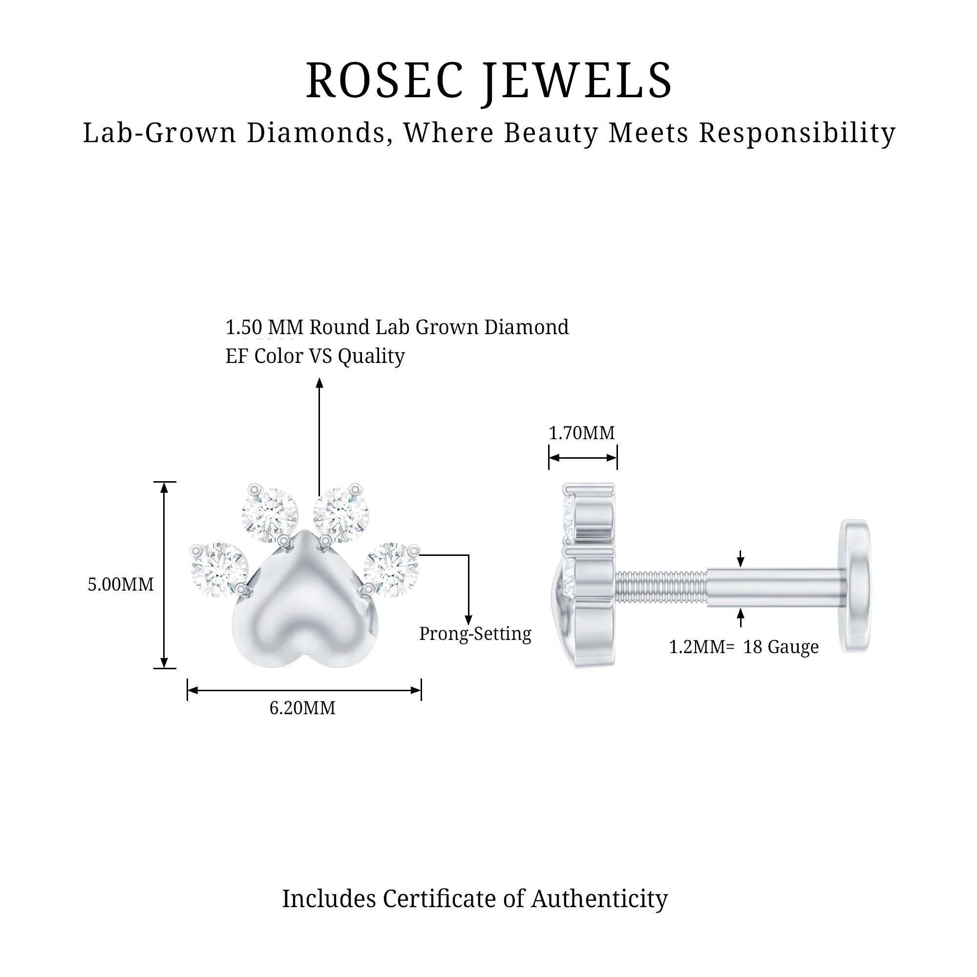 Every ear stack needs a playful piece, so heres our Diamond Paw Print Earring, made for showing off! Embellished with petite Round Brilliant Cut Diamonds set in Prong Setting with a puffed metal heart in the center, its minimal look allows you to stack it with your other ear jewelry collection. This Diamond Paw Earring comes with a flat back closure, ensuring no pokes or jabs disrupt your quick naps or beauty sleep extravaganzas. Perfect for Conch, Cartilage, Helix, or Upper Lobe Piercings. Are you ready to step up your style? This Dog Paw Earring can be paired with any outfit, from a party dress to a casual look, and you are sure to make a statement. Show your love for your furry friend with this Diamond Cartilage Earring, an exquisite symbol of affection and grace. This gorgeous Heart and Paw Earring is crafted with attention to detail, adding a bit of bling to your ensemble stylishly. Also, a perfect feminine accessory to make her feel truly special.