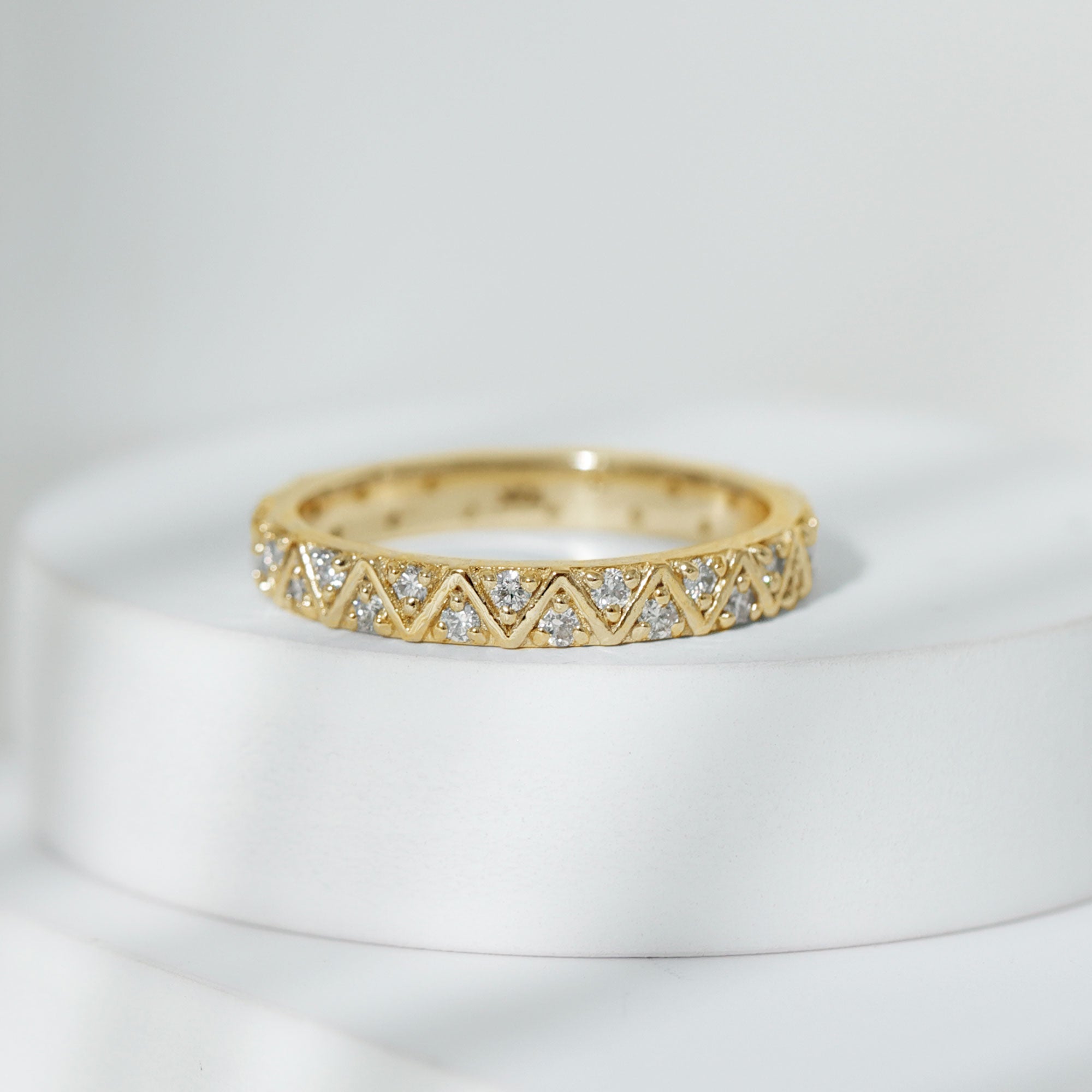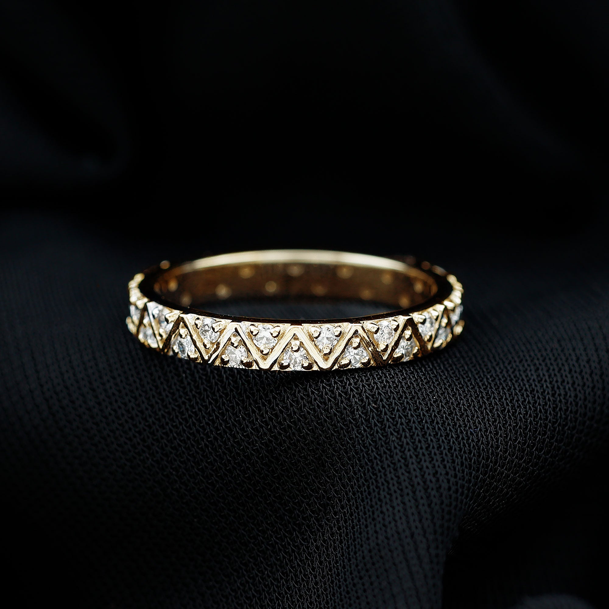 Unleash a cascade of brilliance with this Diamond Band Ring, a timeless testament to unwavering elegance. It is a stunning design featuring an unbroken circle of meticulously crafted Round Brilliant Cut Diamond in Surface Prong Setting with its inherent fire and sparkle. Crafted with exceptional precision, this Eternity Wedding Band serves as the perfect complement to the continuous line of diamonds that is a versatile masterpiece for the most special occasions. As a continuous line of unbroken symbols, this Diamond Wedding Ring is a timeless reminder of moments that endure. As a tangible expression of moments cherished and memories made, it is a celebration of everlasting allure, a whisper of luxury, and a luminous symbol of enduring beauty. Stack it with other rings or let it shine solo, its adaptable beauty is truly captivating. Crafted with exceptional care, this Diamond Eternity Ring is a testament to the promises you hold dear, a glittering reminder of love that shines brightly and forever.
