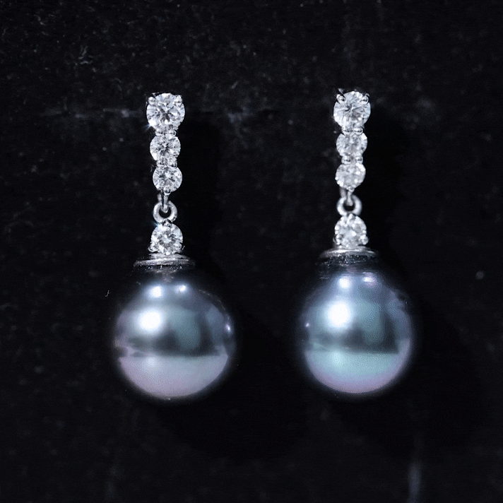 Diamond Bar and Tahitian Pearl Drop Earrings