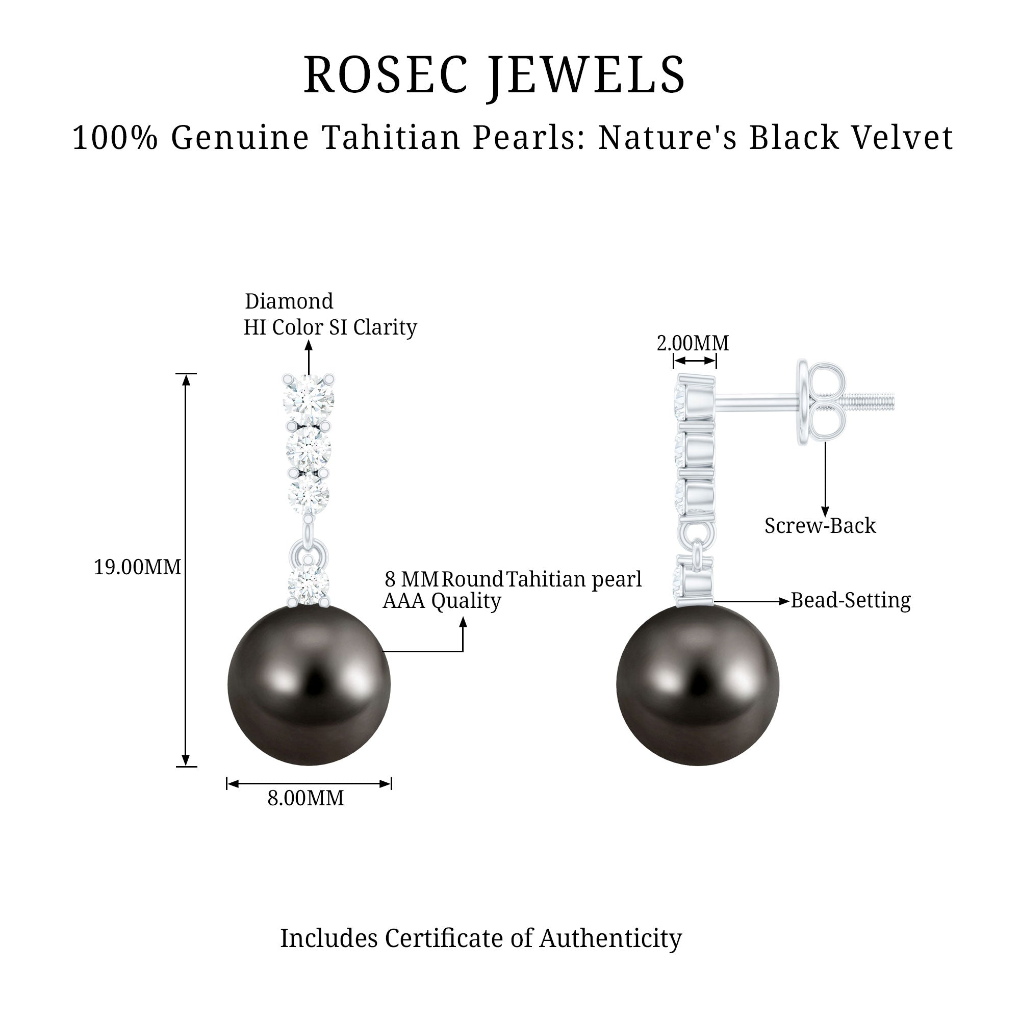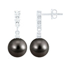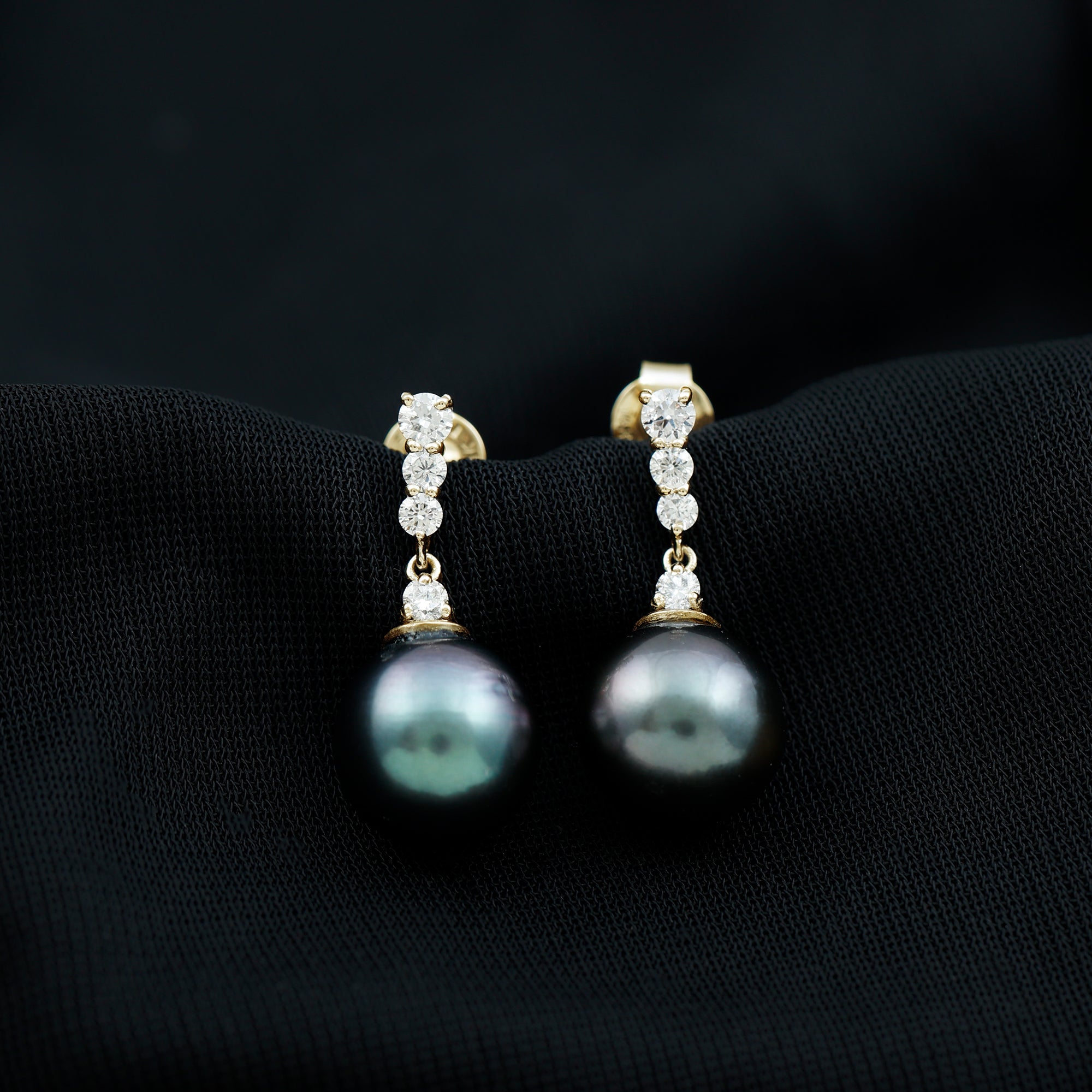 Grab these captivating piece of earrings set with Round Shape Diamond stones in the bar with Tahitian Pearl stone as Drop. These classic bar drop Earring is composed in Solid Gold, a great gift for your beloved.