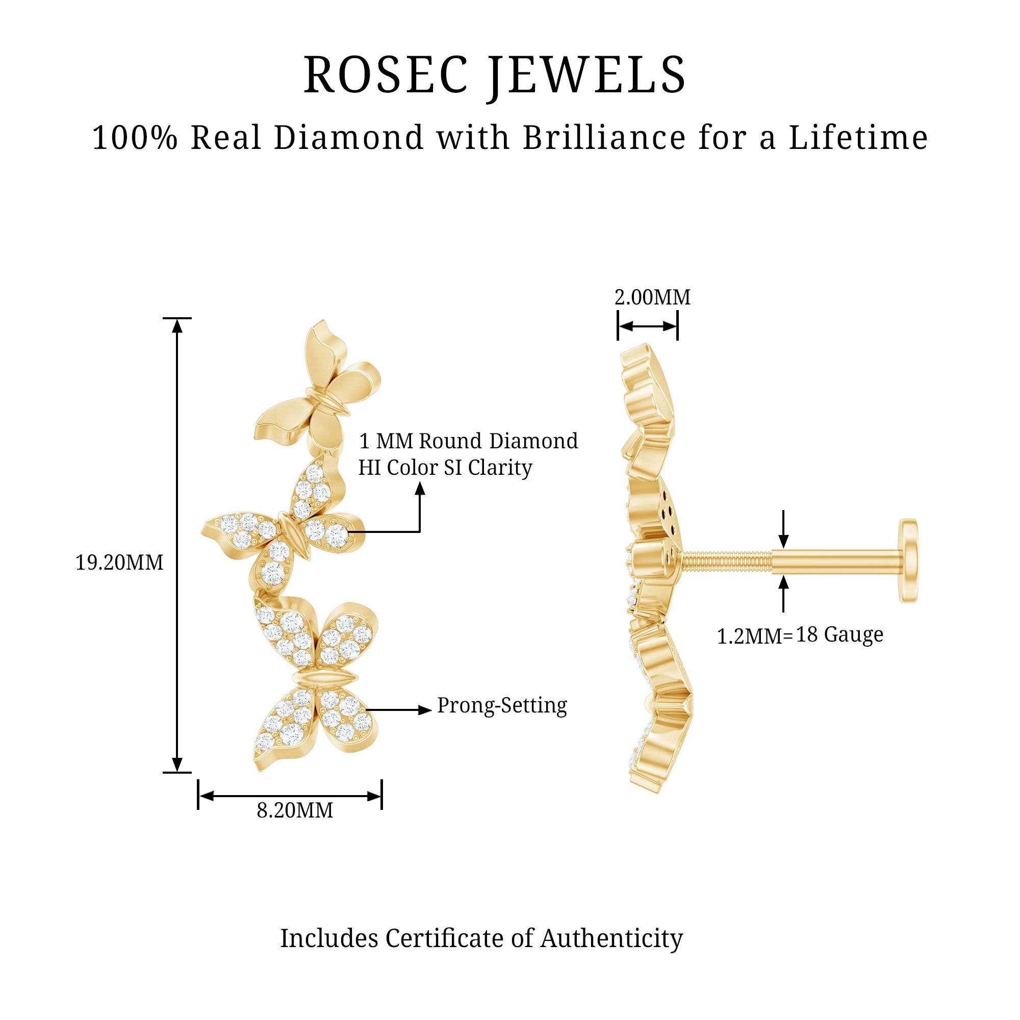 Enhance your cartilage with this gorgeous Diamond Butterfly Earring, making it a stylish and beautiful accessory. The earring showcases shimmering diamonds that highlight the butterfly motifs, bringing a hint of luxury. You can wear this Diamond Climber Earring on your Helix, Cartilage, or Upper Lobe. Its suitable for any event, whether its a casual get-together or a formal gathering. Features Flat Back Closure for all-day comfort, it combines both style and ease. This beautiful earpiece makes a perfect gift for someone special, representing beauty and elegance. With its lovely design and stunning appearance, this Crawler Earring adds a spark of enthusiasm and a touch of refined femininity. With its classy appeal and deep meanings, this Diamond Helix Earring opens up new avenues to explore.