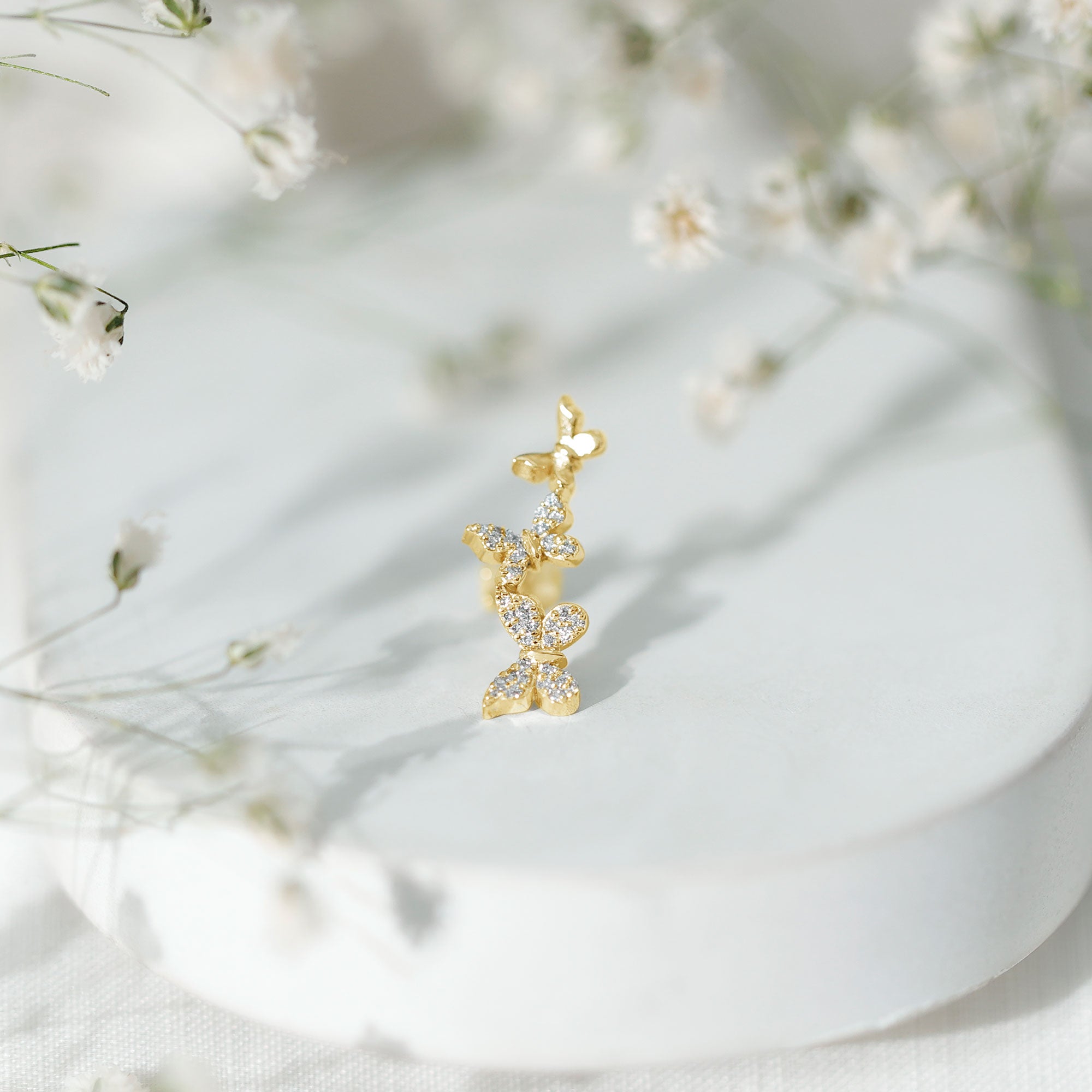 Diamond Butterfly Crawler Earring for Helix Piercing