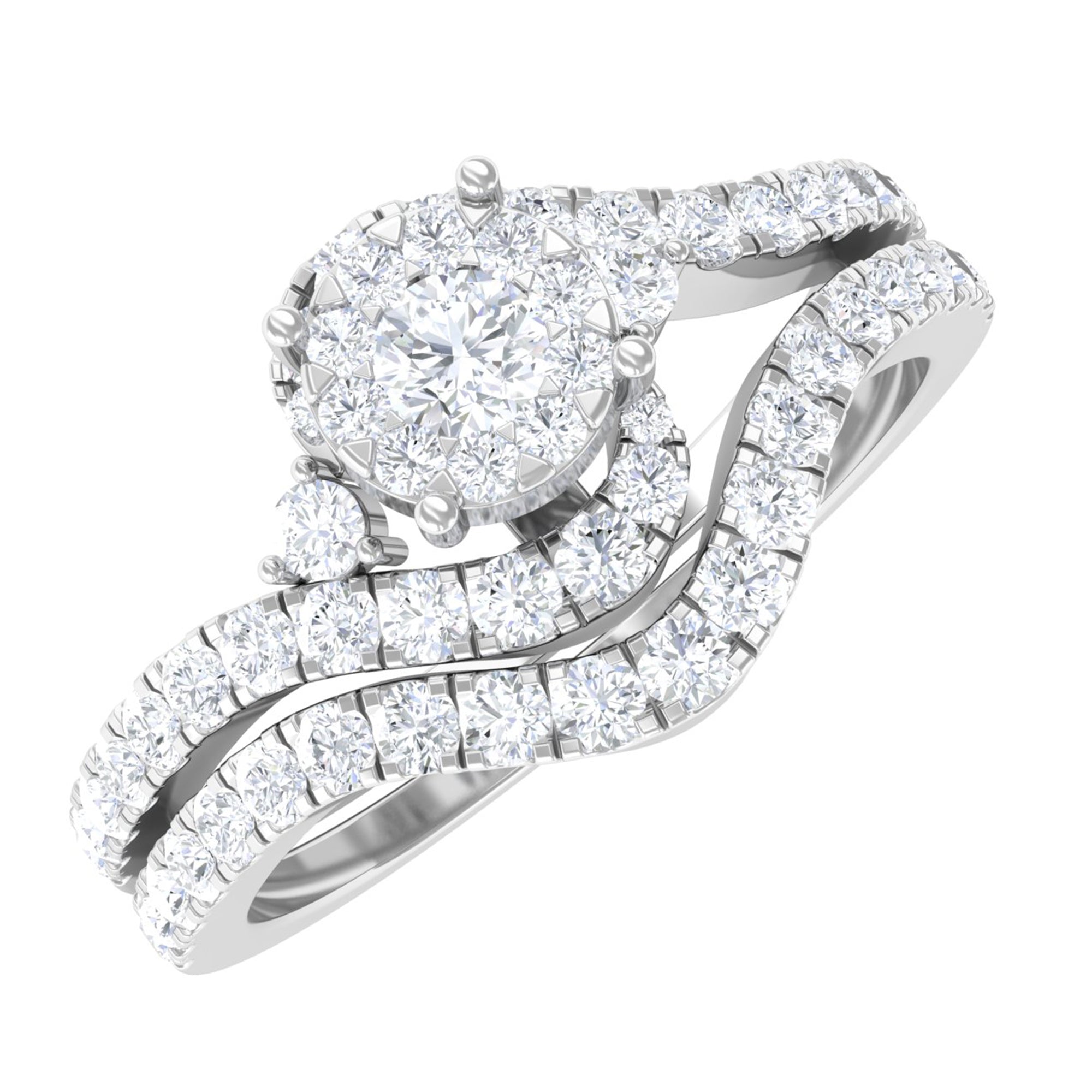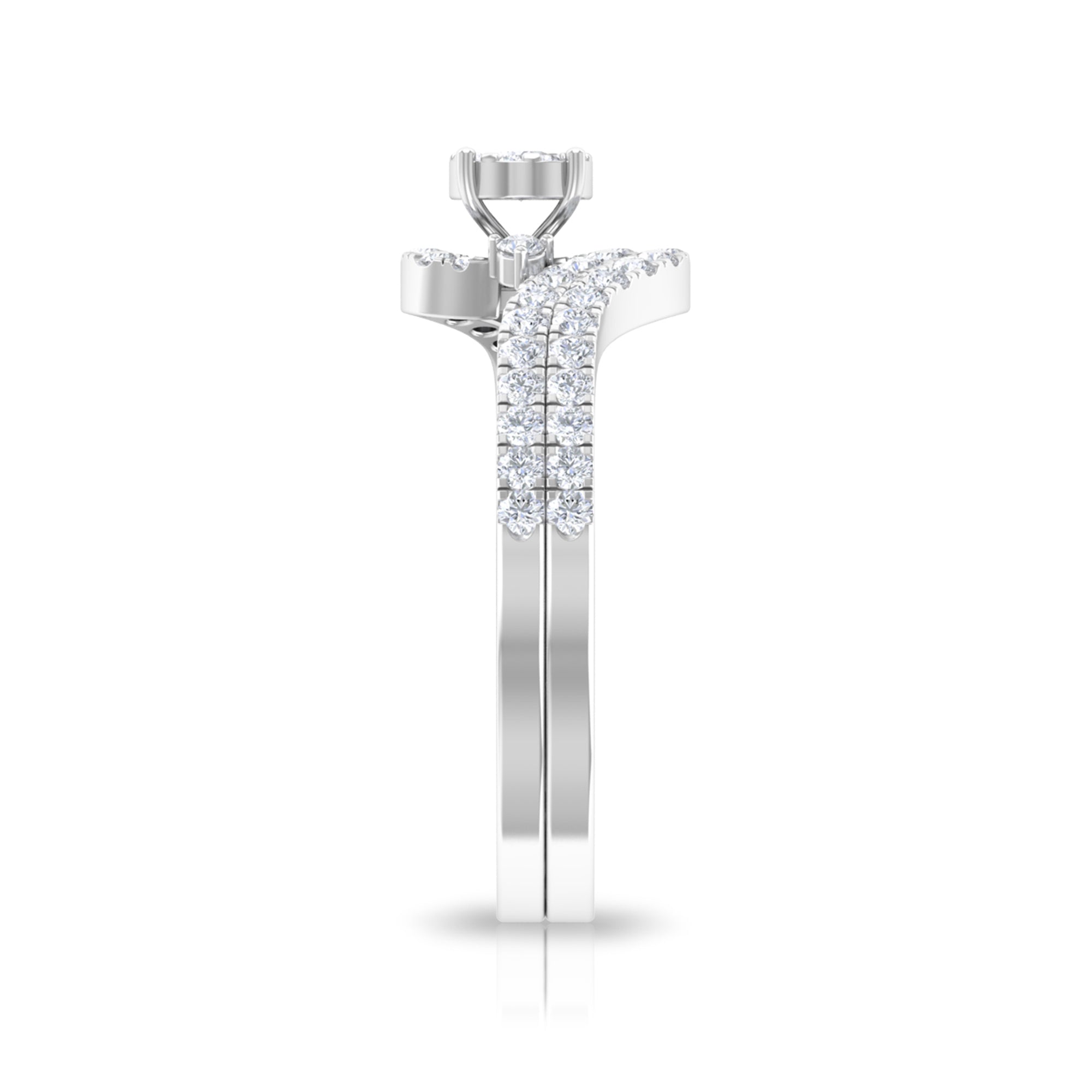 Diamond Bypass Engagement Ring Set with Shadow Band