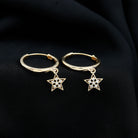 We heard the word that comes out from your heart, was it wow and gorgeous? Just to enchant these words again and again for you, we have crafted these Diamond Hoop Earrings that bring a charm of celestial sparkle to your ears. So, for your casual day out or office wear, these Hoop Drop Earrings are a go-to pair. They are embellished with Round Shape Diamonds in Pave Setting, which are set in a star, stunningly gleaming below your ear lobe. For a further touch of vintage grace are the round beaded details that would give this pair of Diamond Drop Earrings an amount of dazzling look with them. These Simple Star Earrings have a stunning theme that adds a touch of magic and whimsy to your outfits, carrying more profound symbolism, which is often associated with dreams, spiritualism, and the universe. Let your special occasions be filled with statements, channeling your inner confidence. Dazzling and unique in their look, these Diamond Star Earrings are show-stopping and take your breath away.