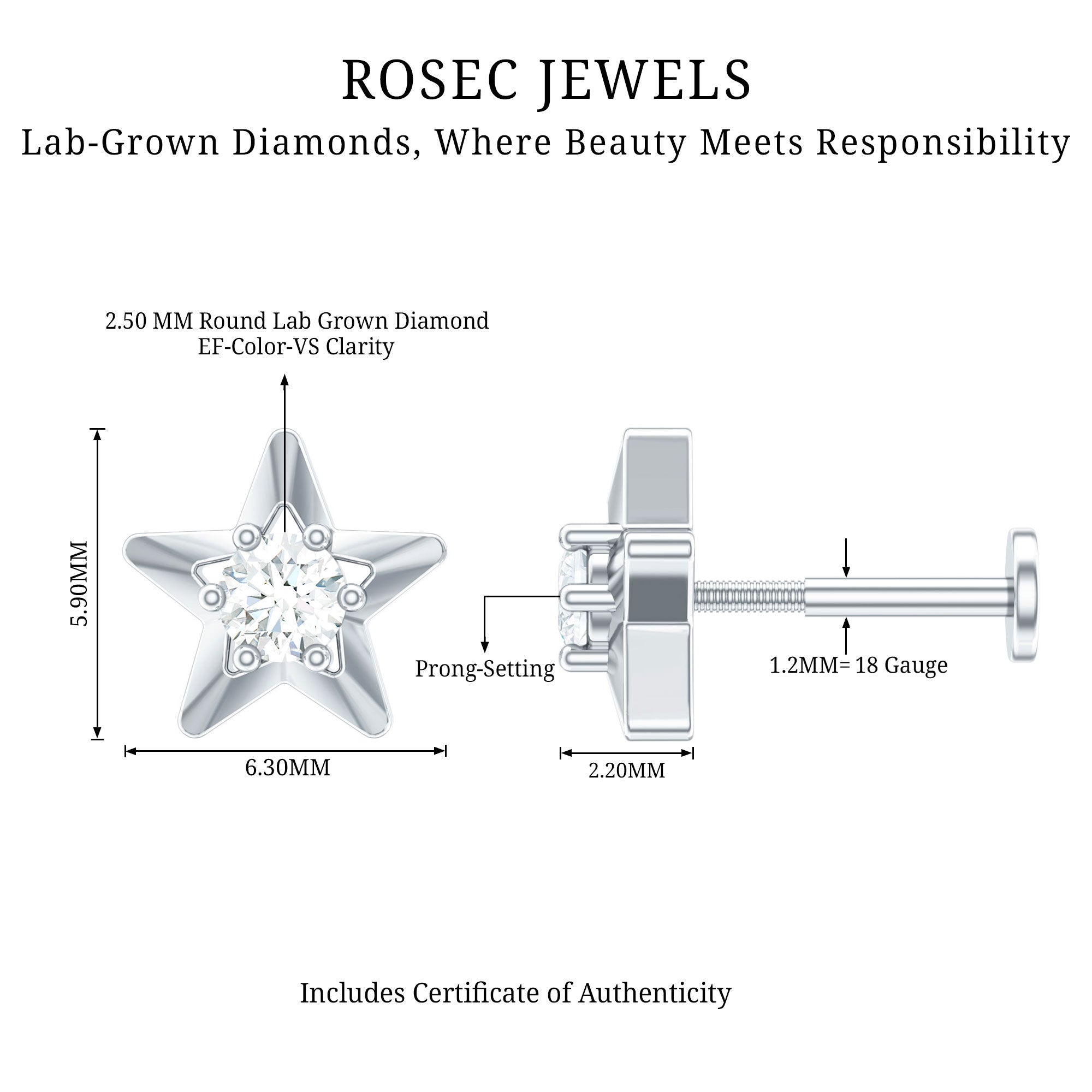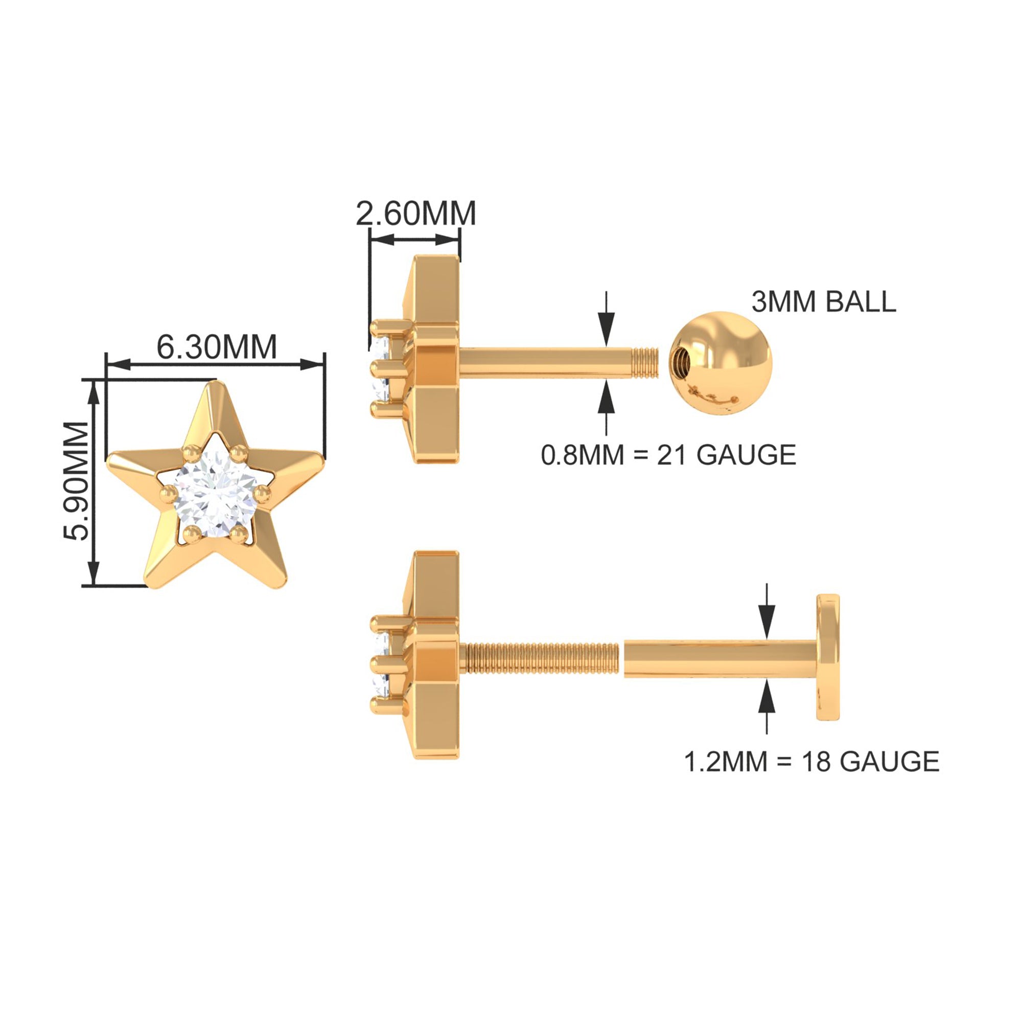 Its in the stars - this Diamond Celestial Star Earring is meant for you! This earring features Round Diamond solitaire secured by Prong Setting in the center of star design. This Piercing Earring is the perfect mix of minimalistic and suave. Style this Celestial Earring on your Helix, Cartilage, Conch, Tragus, or Upper Lobe Piercing. By teaming this Diamond Earring with a pair of hoops, youll ace the stack look. This Celestial Earring is what you need to add to your daily rotation to ensure you look effortlessly elegant every day.