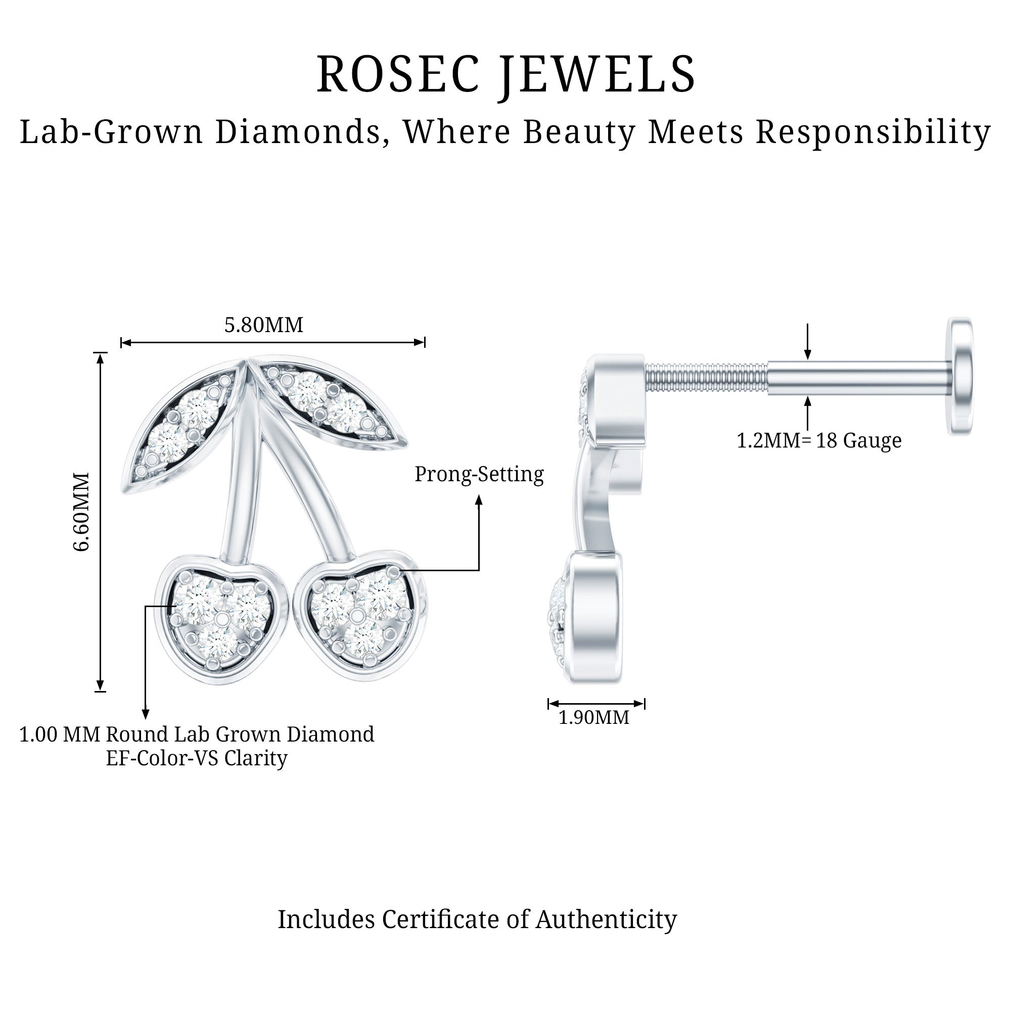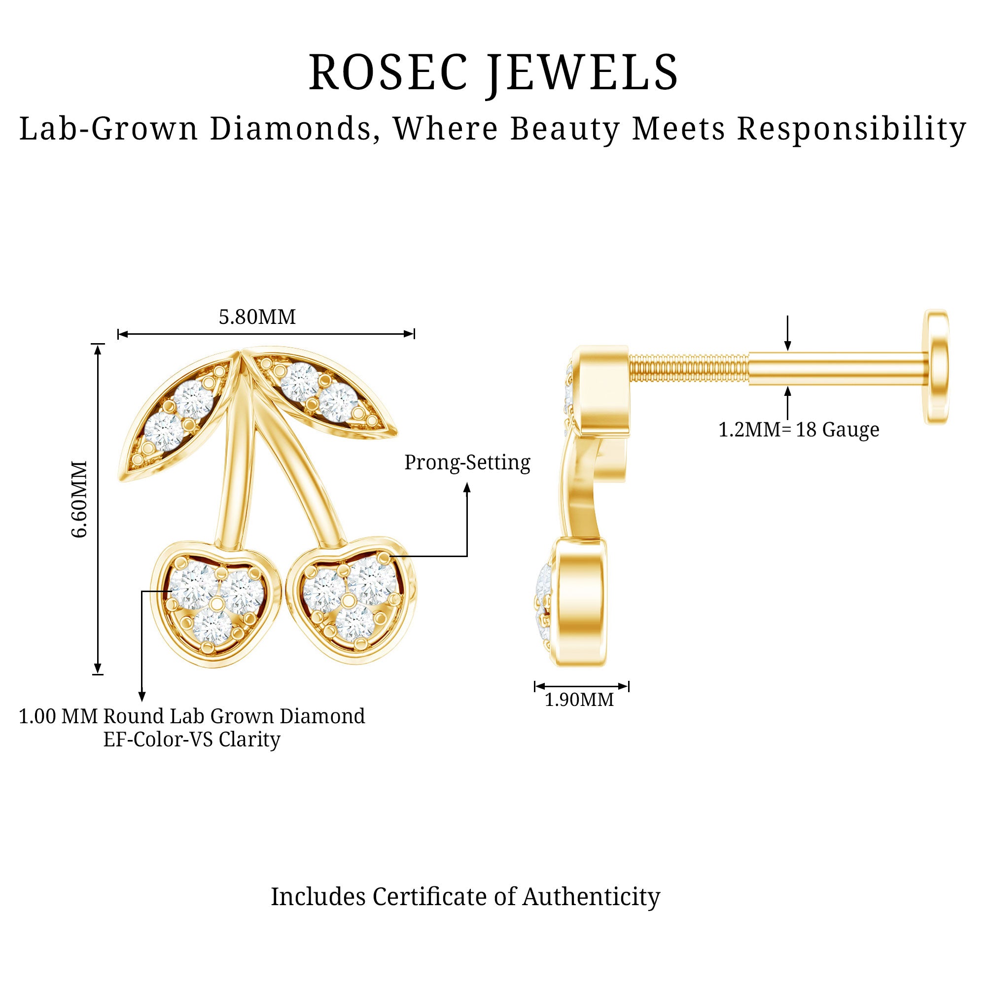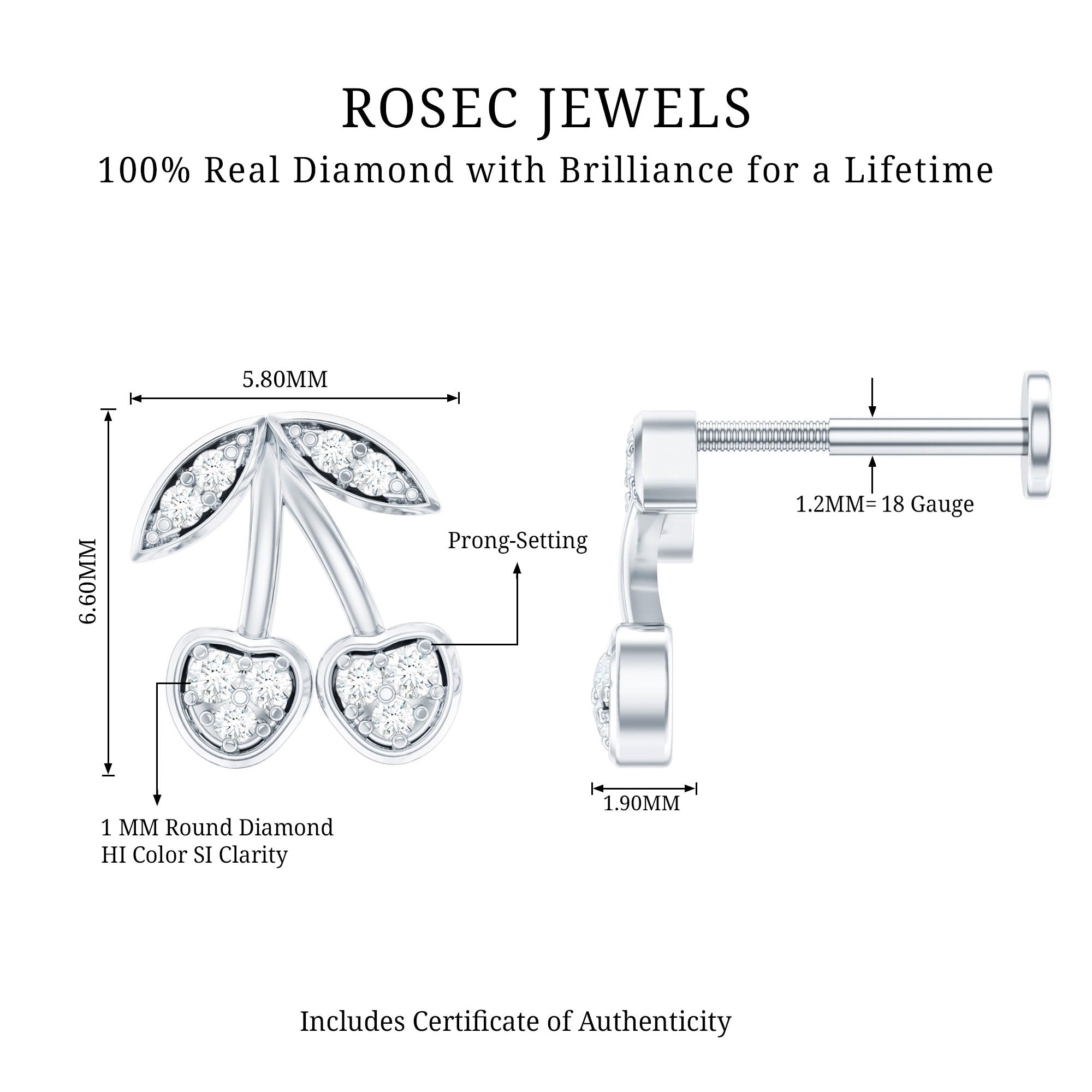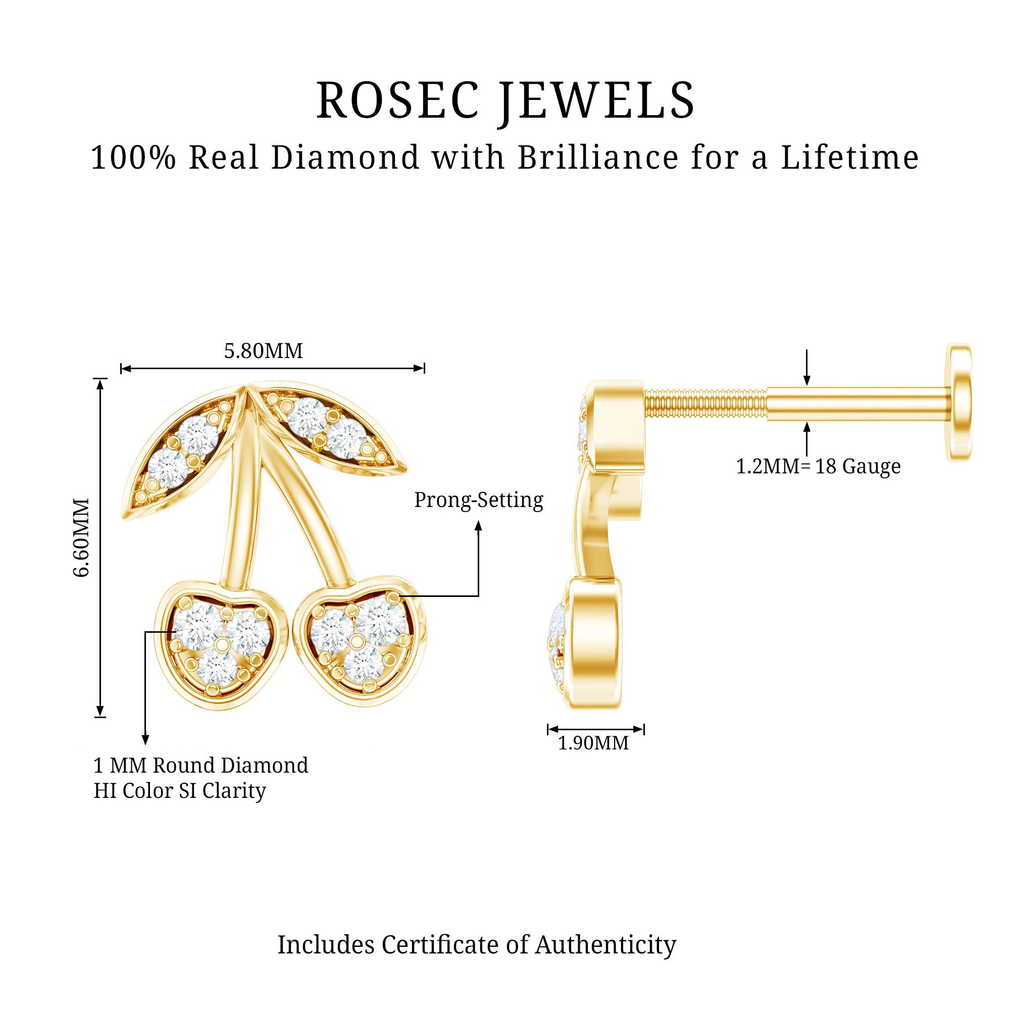 Adorn yourself in the sweetness of style with our adorable Diamond Cherry Fruit Earring—a perfect accessory to sweeten any outfit! Showcasing two cherry designs adorned with Round Diamonds and accent leaves, all elegantly secured by a Prong Setting, make this earring a must-have in your collection. Its a scintillating piece of body art you simply Cannot overlook. Gift this dazzling Upper Ear Earring to your beloved on her birthday and watch her day light up with sparkle and joy!