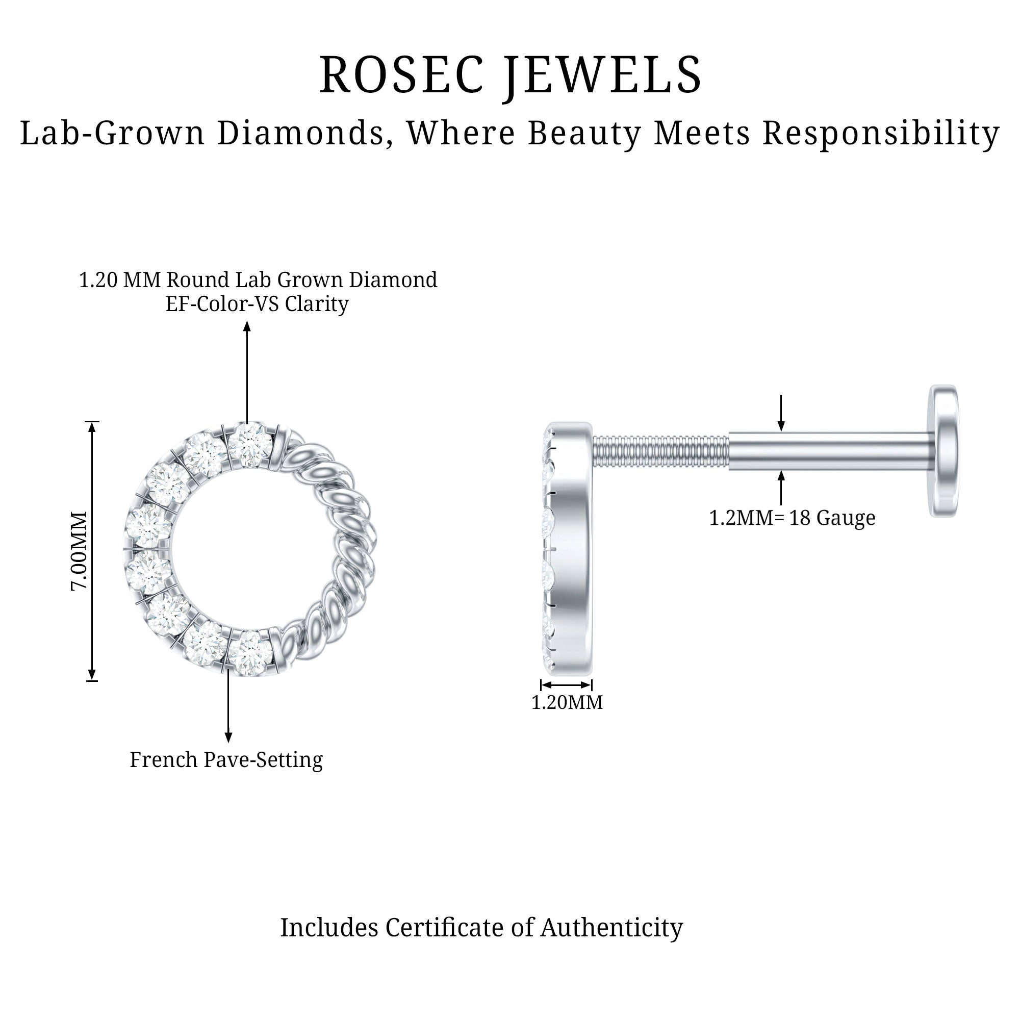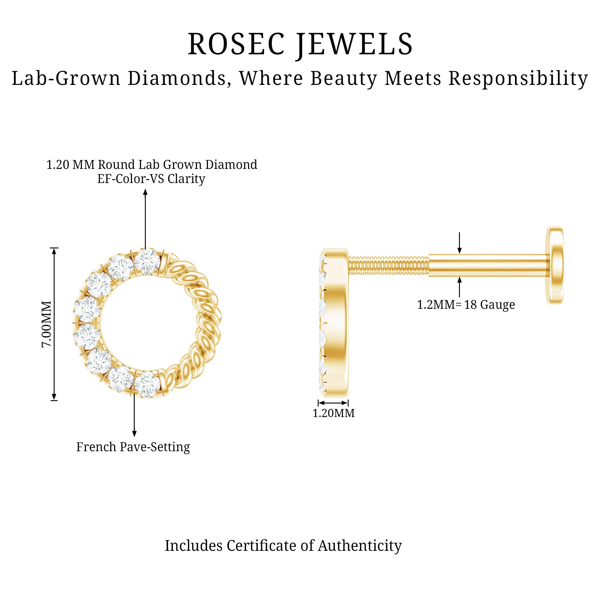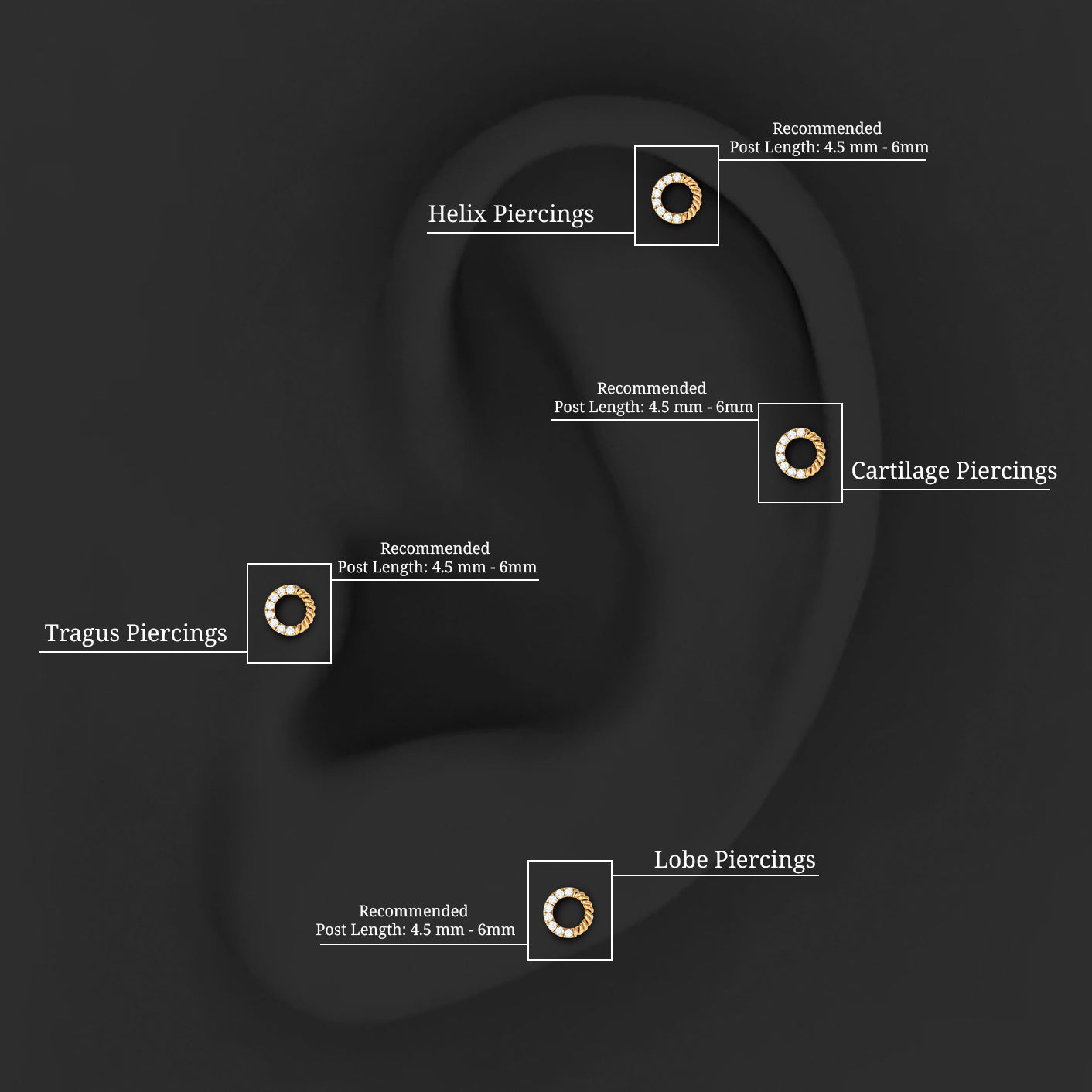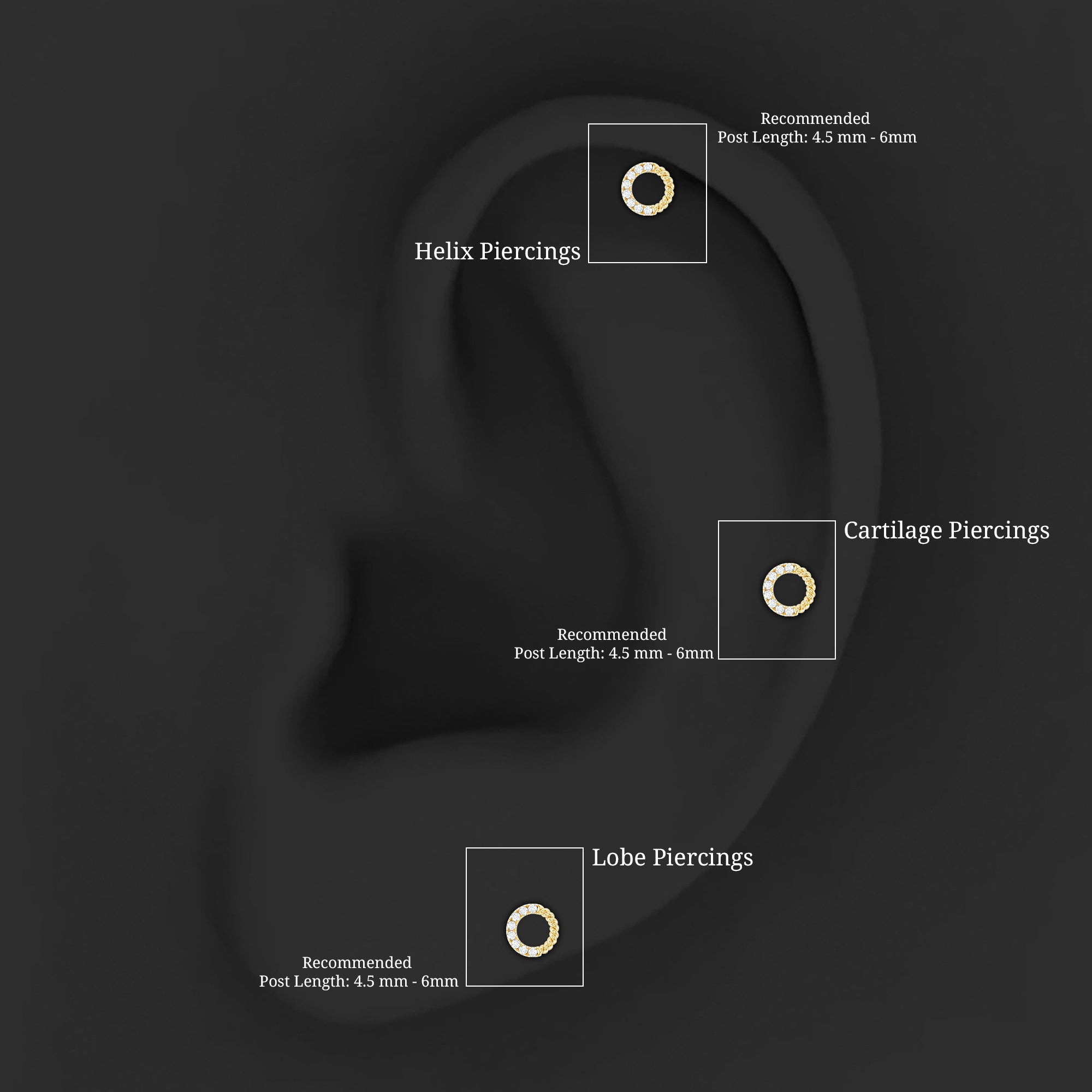 The Diamond Circle Earring - a perfect piece of ear jewelry featuring Round Diamonds secured by Pave Setting studded on an eternity design. This Minimalist Earring is comfortable to wear, and it can be easily slipped into a Conch, Helix, or Cartilage Piercing for an instant pop of dazzle and style. Treat yourself or a loved one by getting the Diamond Circle Earring today! It makes a perfect Birthday Gift for Her, Anniversary Gift, or Graduation Gift for your friend.