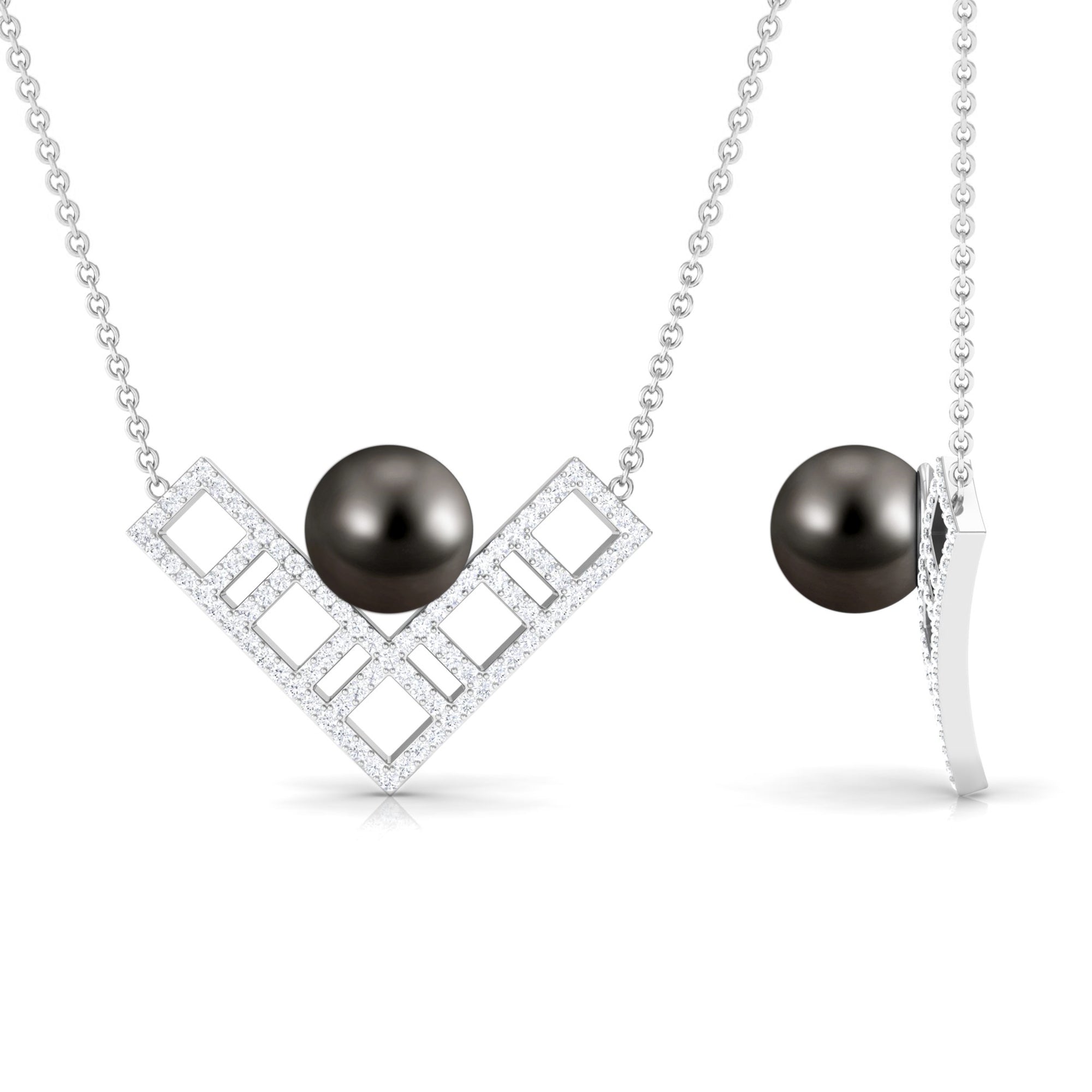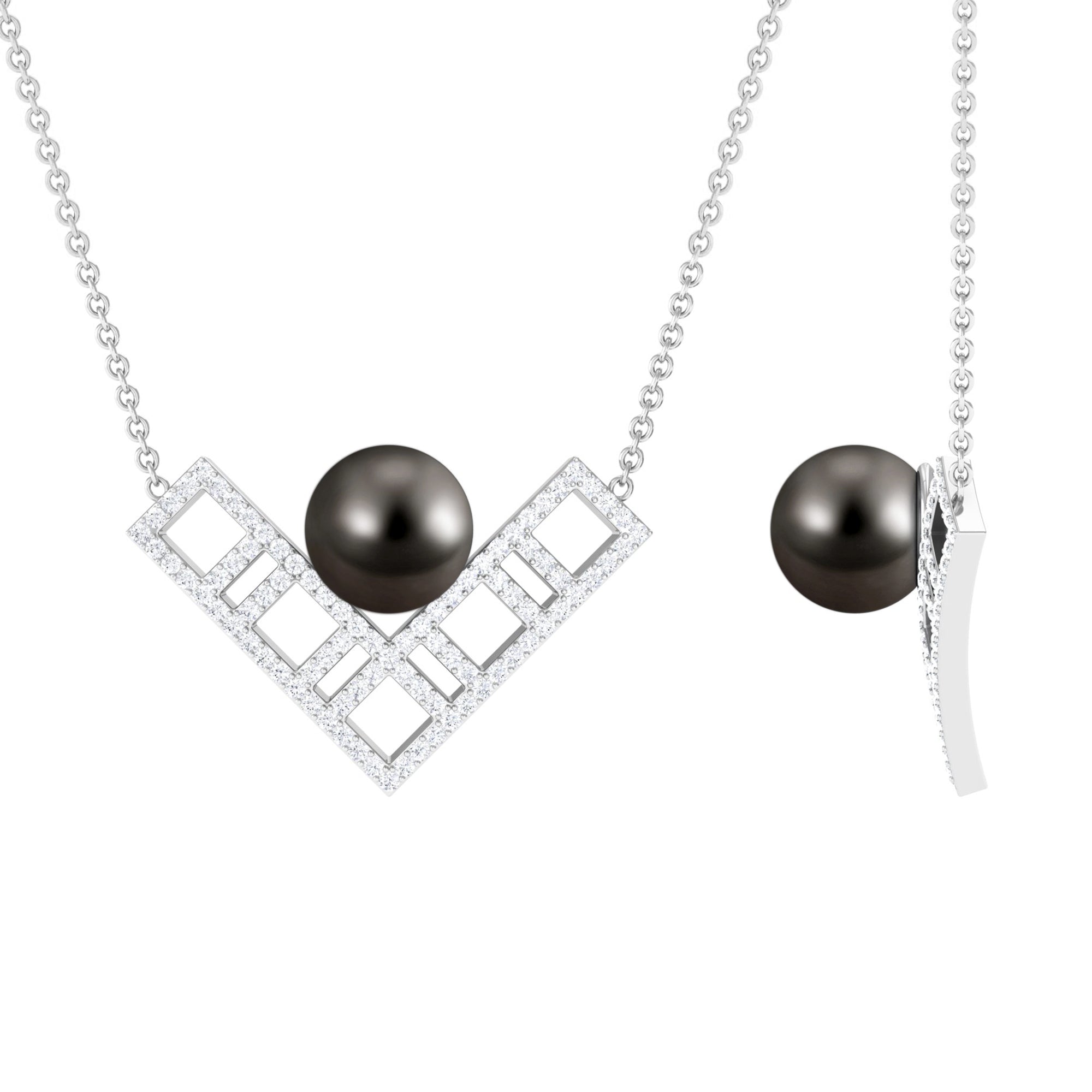 Diamond Contemporary Pendant with Tahitian Pearl