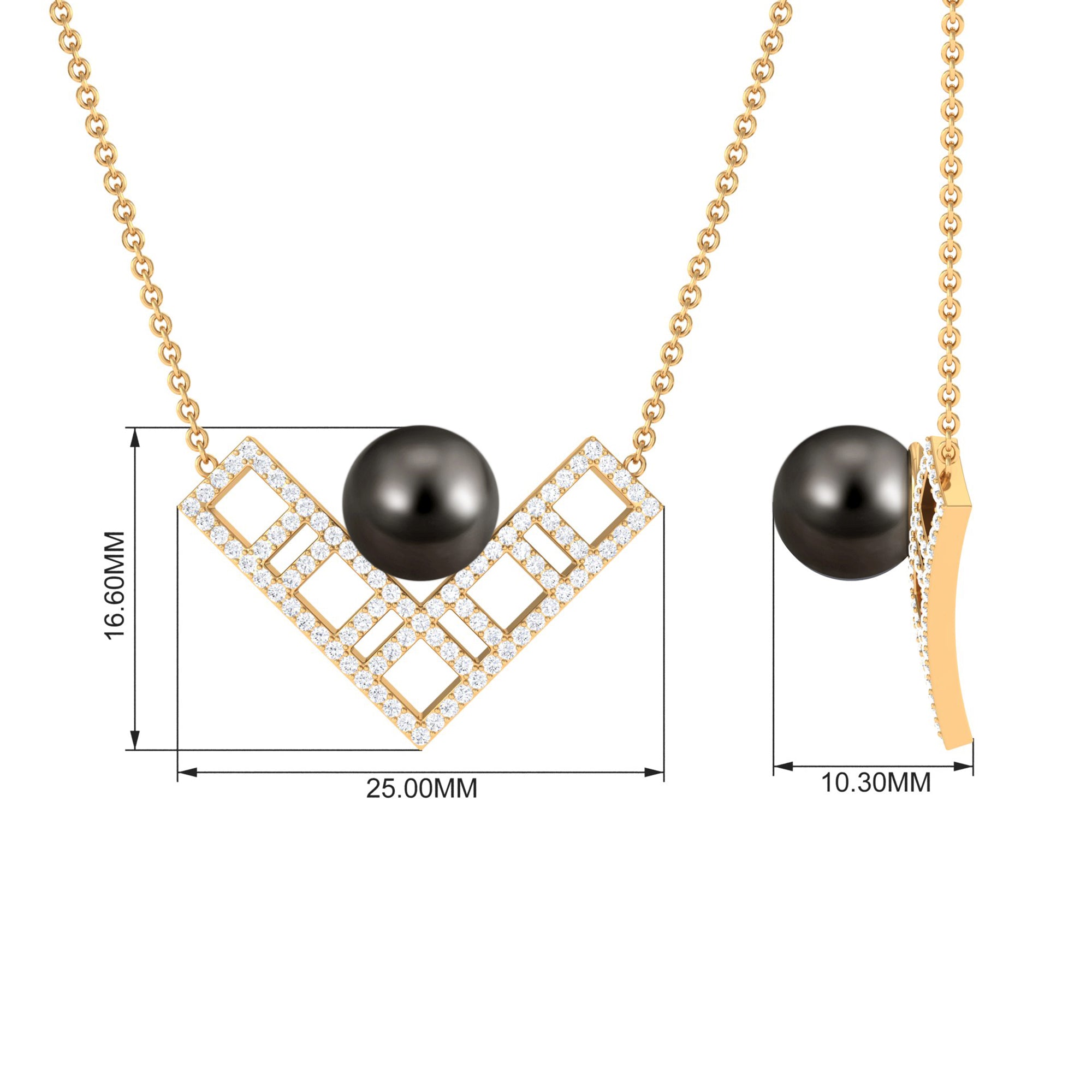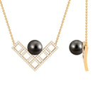 Stay on-trend every day with this stylish Gold V Shape Necklace. Adorned with bead set Tahitian Pearl and sparkling Diamond, this contemporary necklace is the perfect accessory for everyday styling. With its modern design and charming details, this necklace is sure to add a touch of sophistication to any outfit.