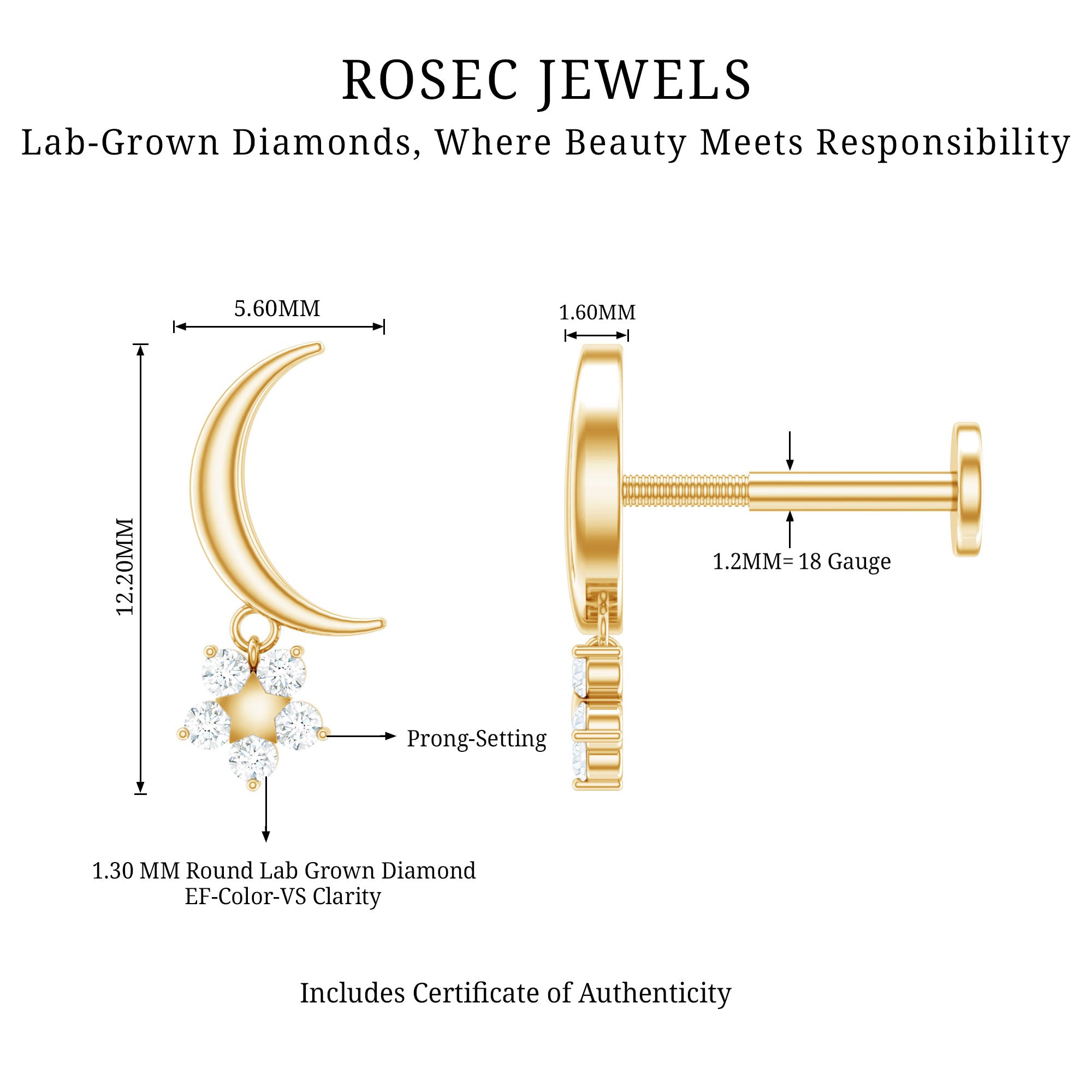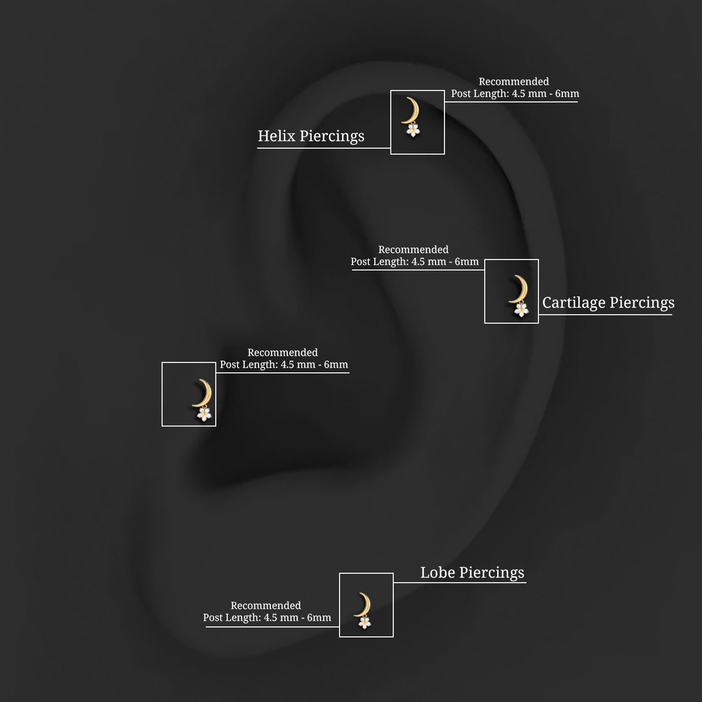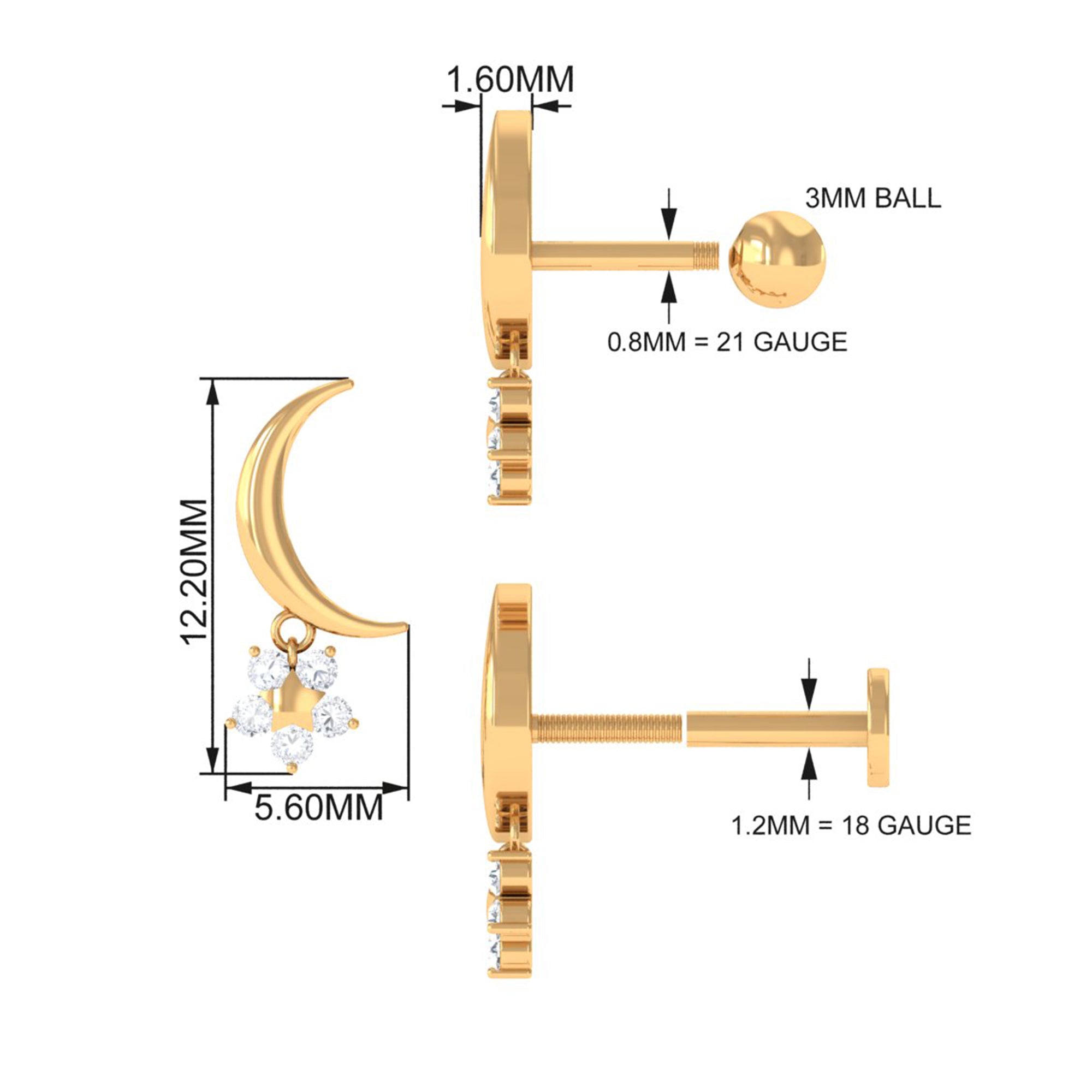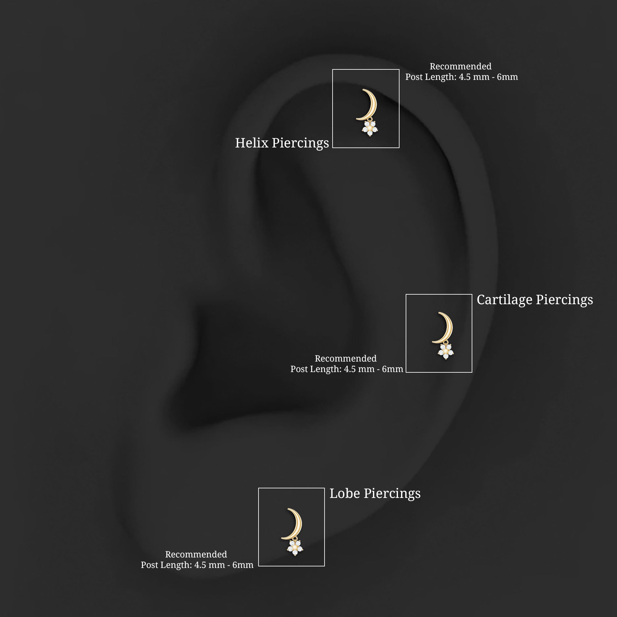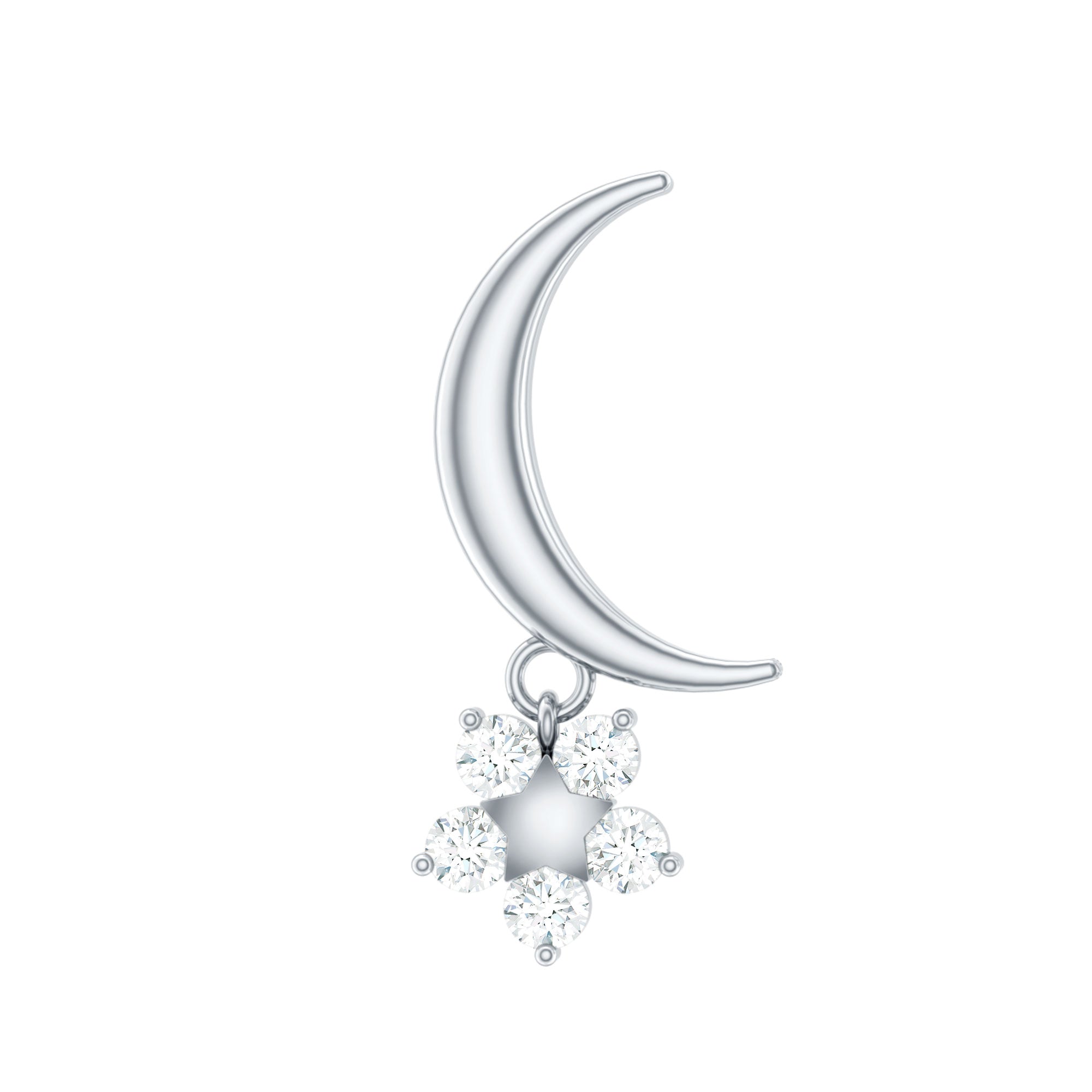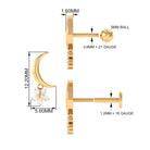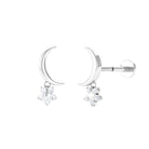 Diamond Crescent Moon and Star Earring for Helix Piercing