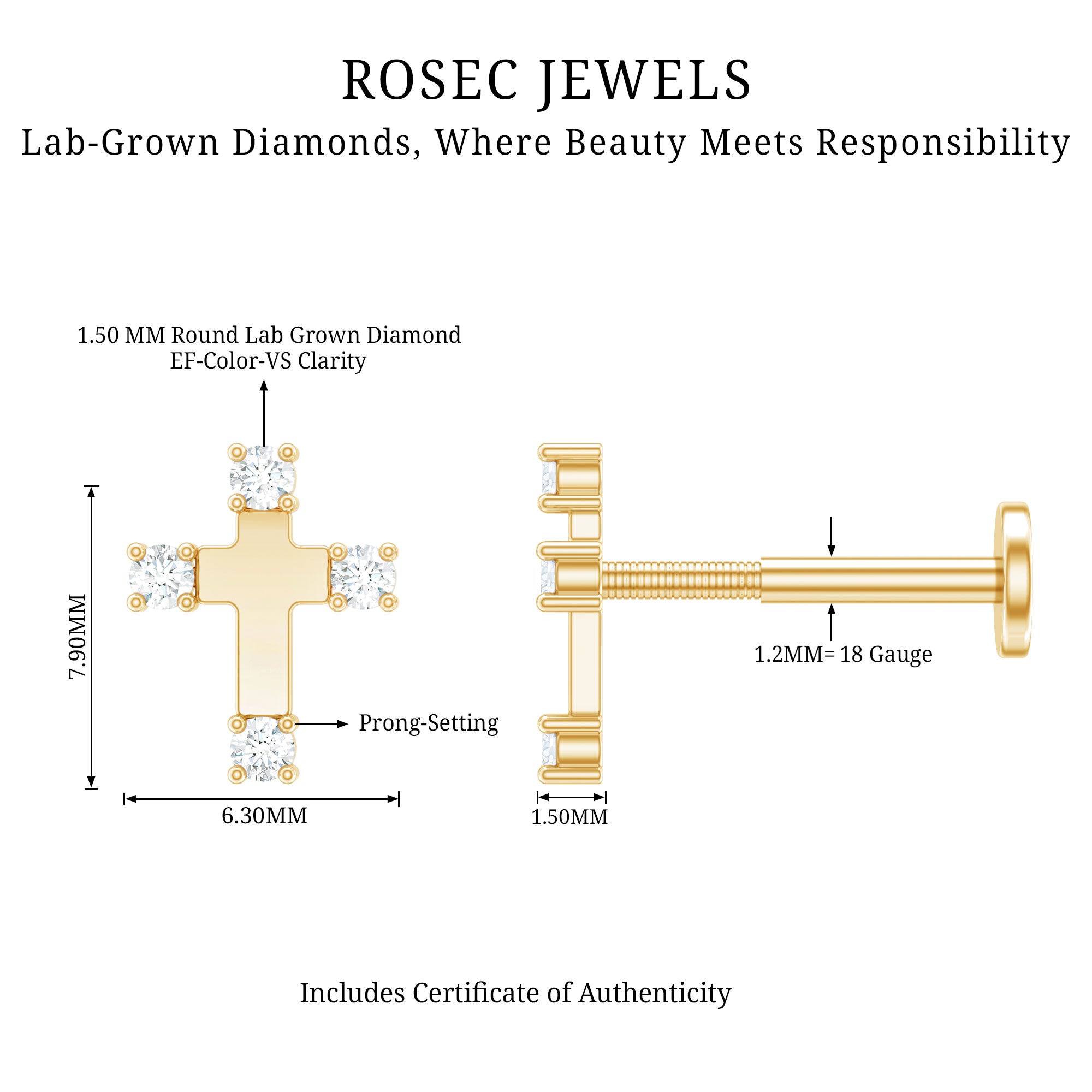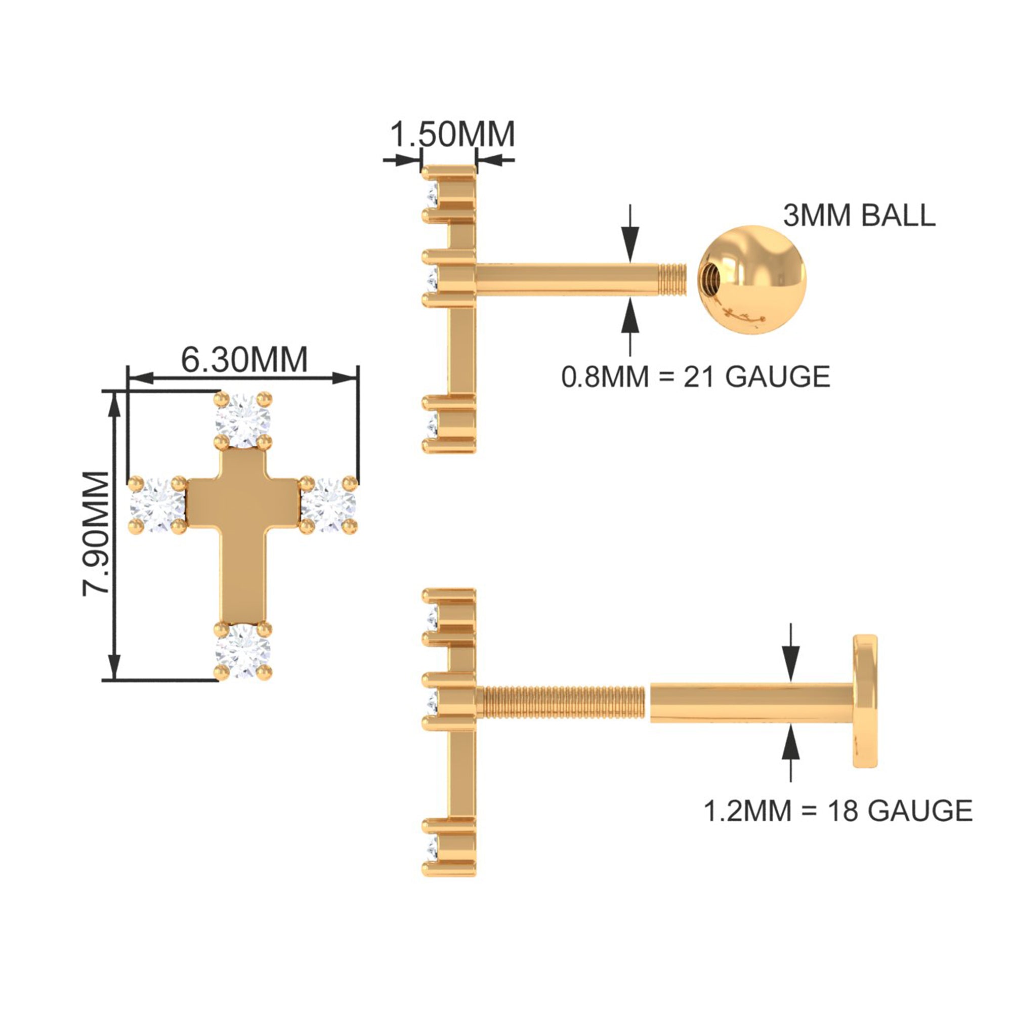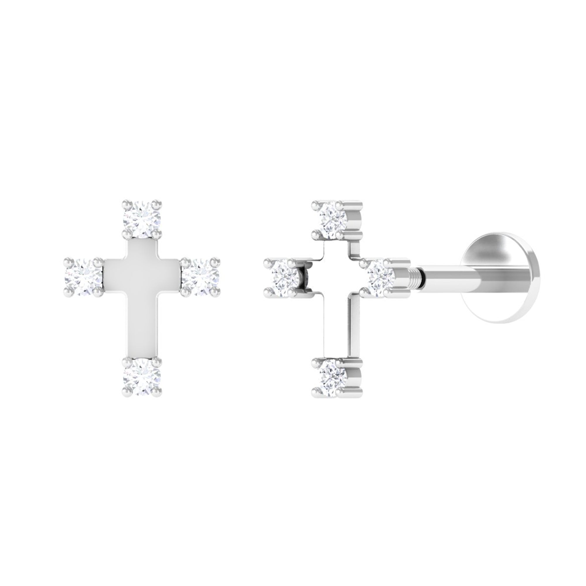 Craft a distinctive ear stack adorned with symbols that hold personal significance. Start with our Diamond Cross Cartilage Earring features Round Diamonds set in Prong Setting.Tired of the boring ear-piercing options? Elevate your style with this charming Diamond Cross Earring, specifically designed for your Helix, Conch, Cartilage, or Upper Lobe Piercing.This Piercing Earring with both your casual and elegant outfits, leaving a lasting impression and a unique sense of style.Build a unique collection that reflects your individuality and spirituality with this exquisite Cross Earring.