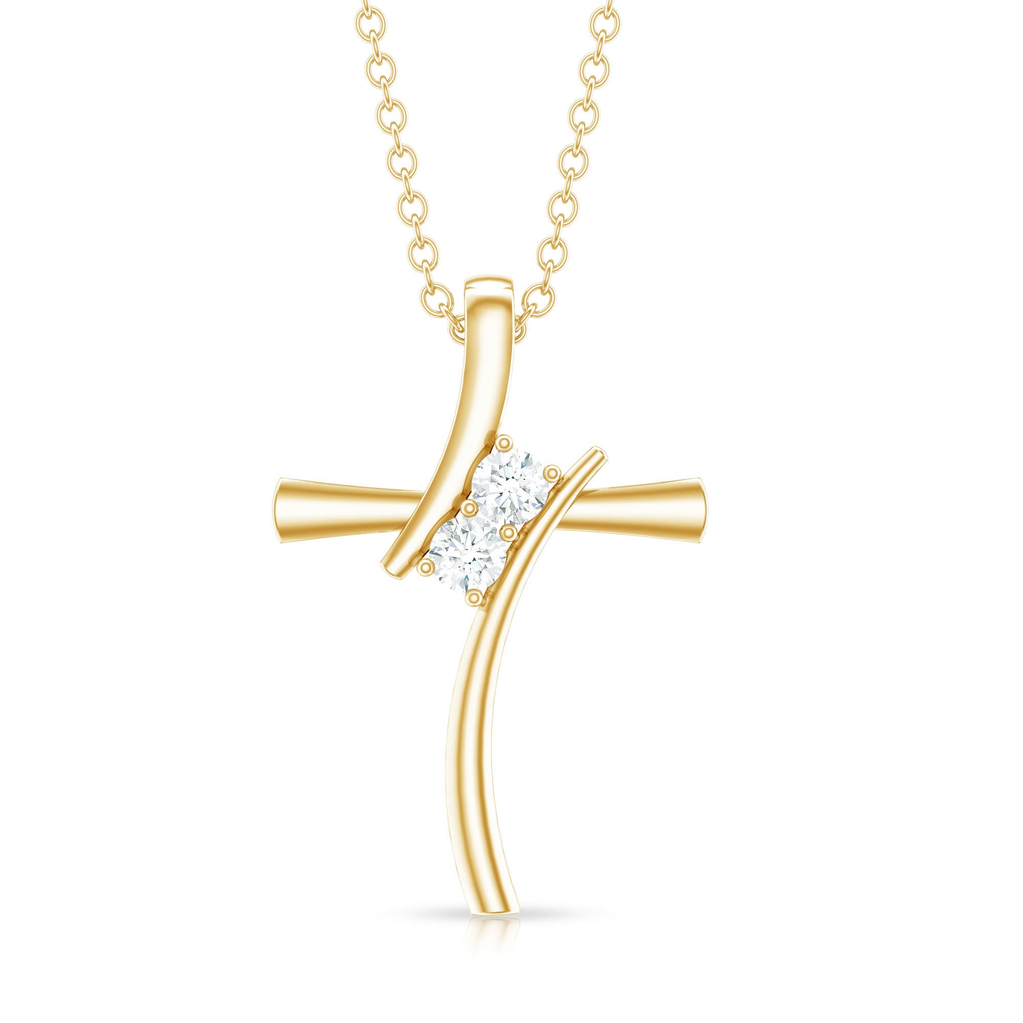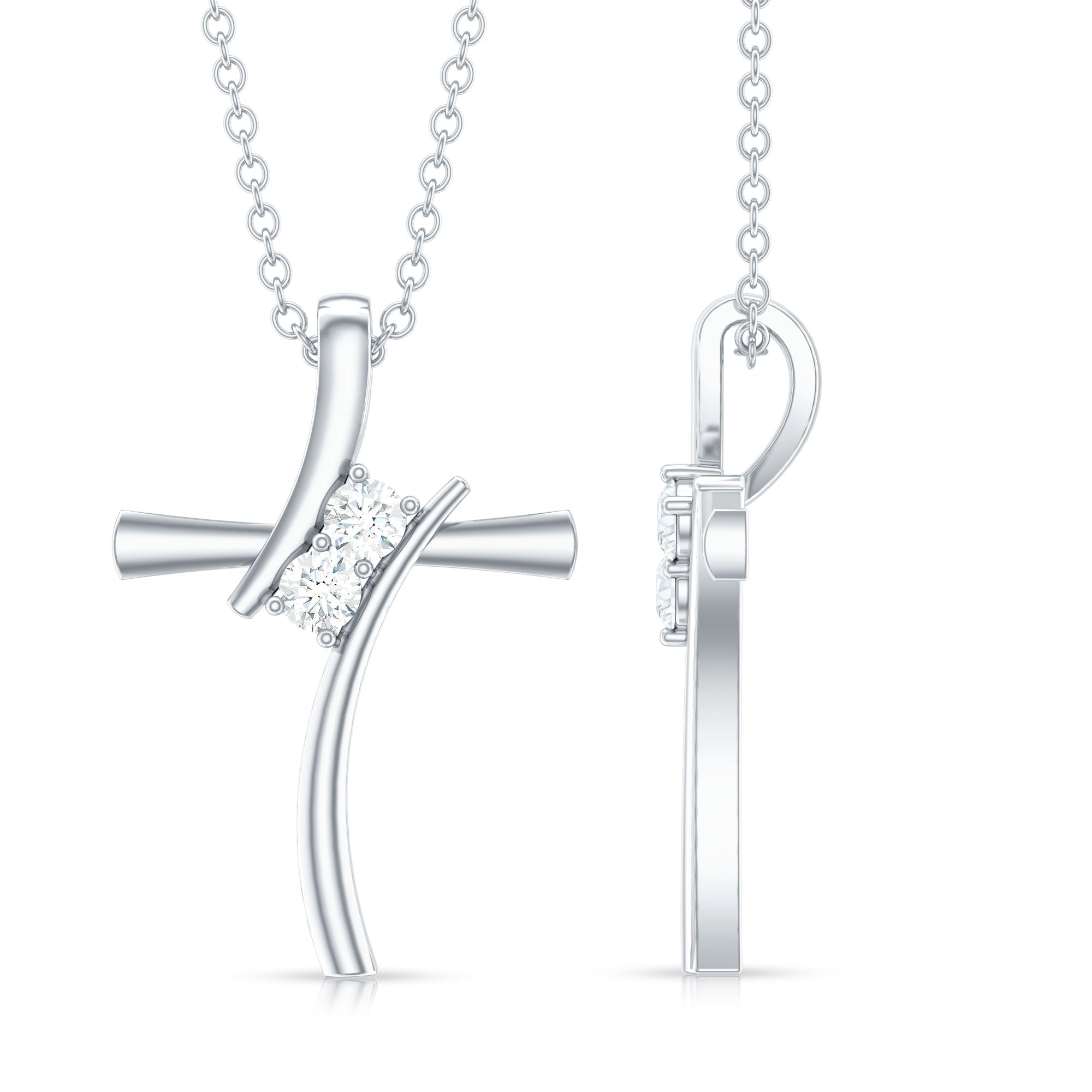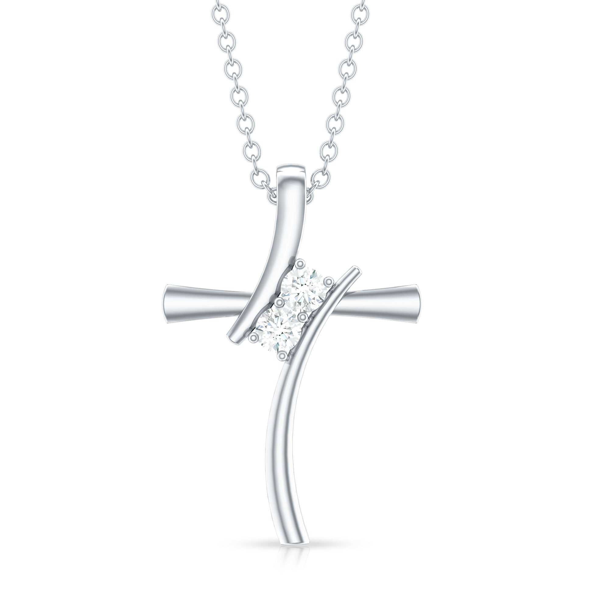 When faith, elegance and style blend uniquely, then this Diamond Pendant Necklace will always let you stand the test of time. An added luxury with a modern twist is the cross design with a bypass style and the two round brilliant cut Diamonds scintillating from the center. Dangling through a chain, this Religious Necklace has a simple and minimalist look that reflects the most you look. A timeless symbol of faith, it expresses your religion, representing uniqueness, becoming a lovely and significant piece of jewelry. As an emblem of personal and universal significance, this Catholic Cross Necklace merges beliefs with contemporary style. Wearing it close to the heart serves as a constant reminder of spiritual beliefs and the guiding principles of love, forgiveness, and redemption. This Christian Necklace is a personal declaration of faith that accompanies the wearer throughout their daily life, offering comfort, protection, and inspiration. Minimalist and modern design, making it suitable for everyday wear. Whether you are drawn to its spiritual meaning or its simple elegance, this Catholic Religious Pendant is a piece that resonates with a unique design.