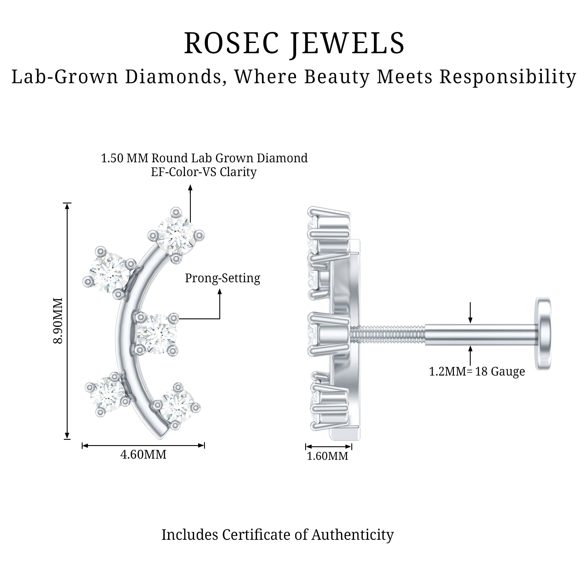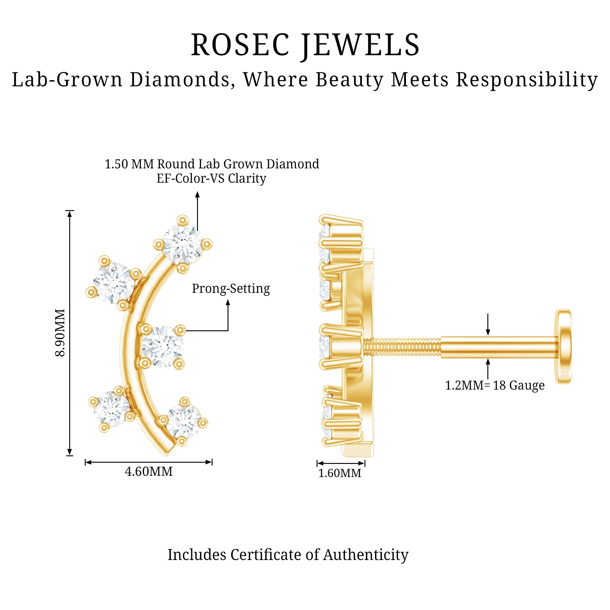 Wear this Diamond Curved Crawler Earring solo or stack it up, either way, its made to be seen. Showcasing Round Diamonds secured by Prong Setting studded on a curved design, crafted with Hallmarked Metal. Wear this Diamond Earring on piercings like Helix, Cartilage, Conch, or Upper Lobe Piercing. The Flat Back Closure ensures a comfortable and secure fit. You can style this Piercing Earring with your casual or dressy attires to stand out from the crowd. If you are a big fan of piercing, then this Diamond Earring is a dazzling choice to elevate your ordinary looks. Do not wait grab for yourself NOW!
