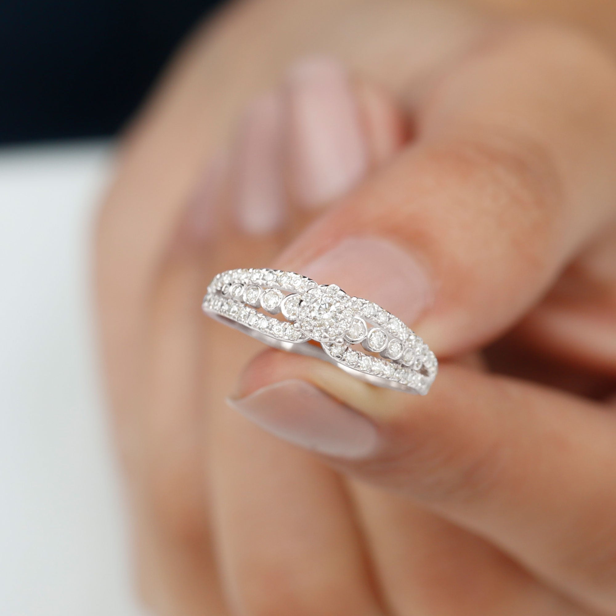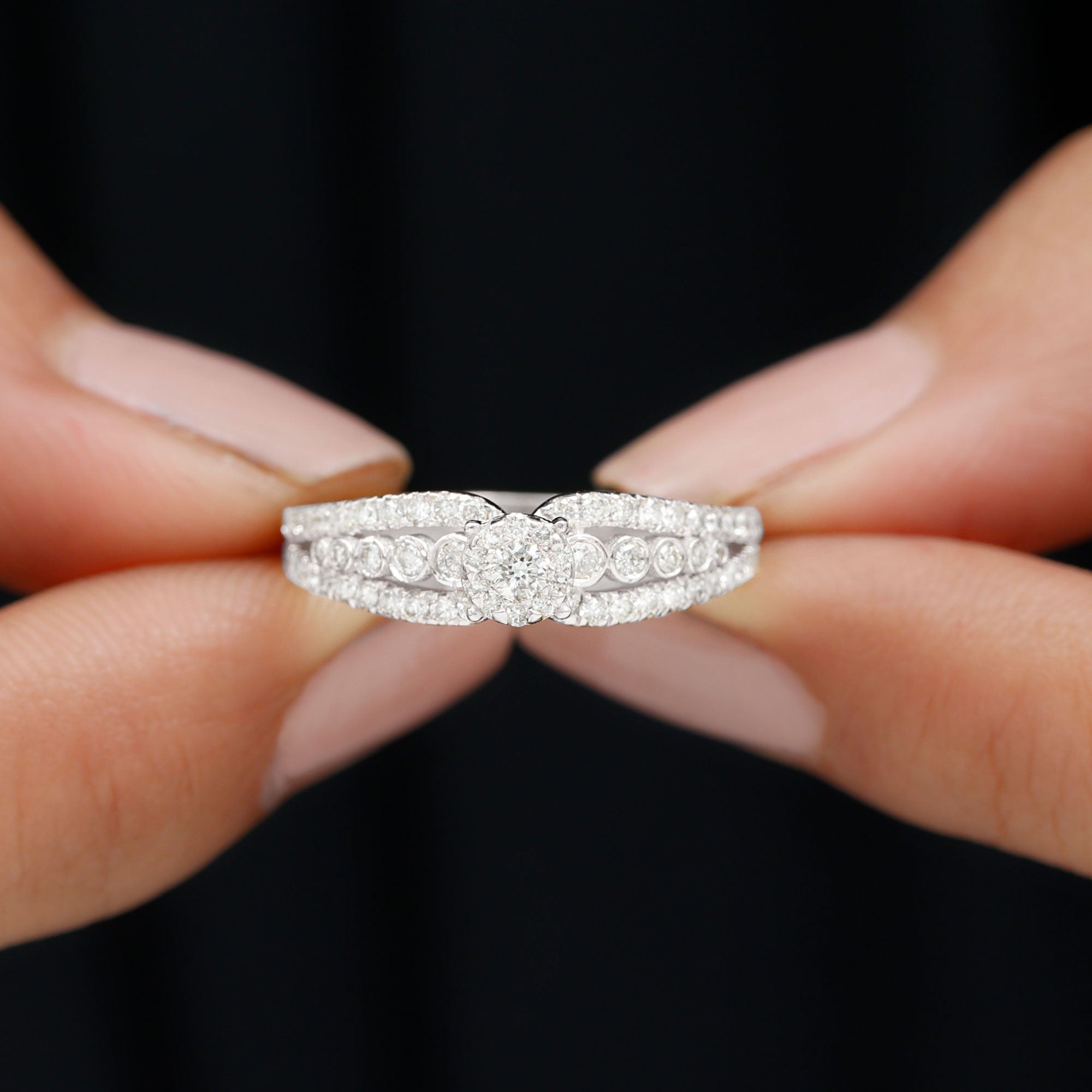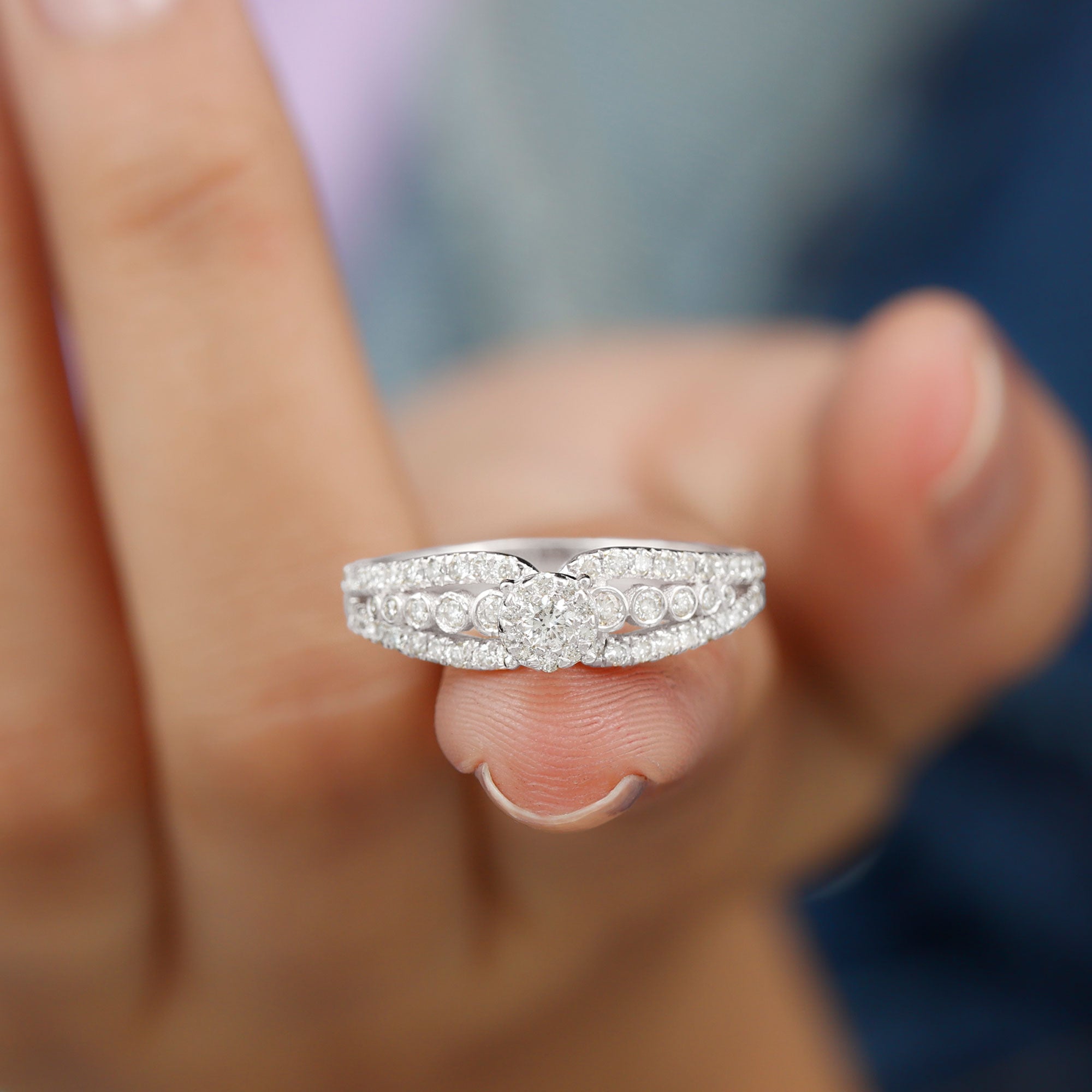 Enhance the beauty of your finger with this stunning Real Diamond Engagement Ring. This Designer Engagement Ring is crafted to celebrate the promises that matter most. It showcases beautiful round cut diamonds at its center, set in illusion style, radiating passion and purpose, along with delicate side stones. Made with HI-SI Quality, this Diamond Ring for Women is not just lovely but also perfect for engagements, anniversaries, or simply to express that you are forever mine. Its classic design exudes effortless elegance, with just the right amount of charm to attract attention without being over the top. From romantic proposals to delightful surprises, this Side Stone Engagement Ring creates unforgettable moments that linger in your heart. Available in a range of ring sizes, this Unique Diamond Ring is designed to fit every hand comfortably. Adorable, elegant, and truly heartfelt, it is like that special love moment you wish to experience again and again. This exquisite Diamond Ring is the ideal statement piece for a proposal, featuring a unique and designer pattern.