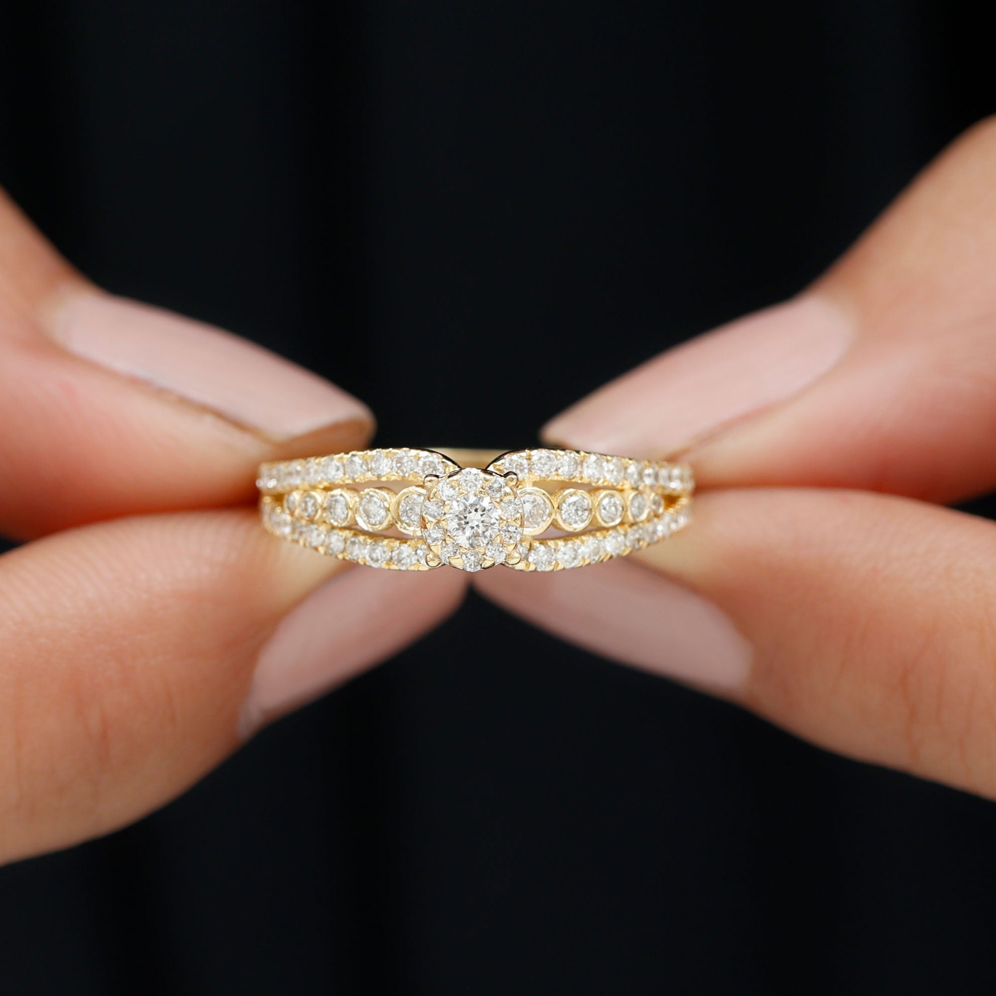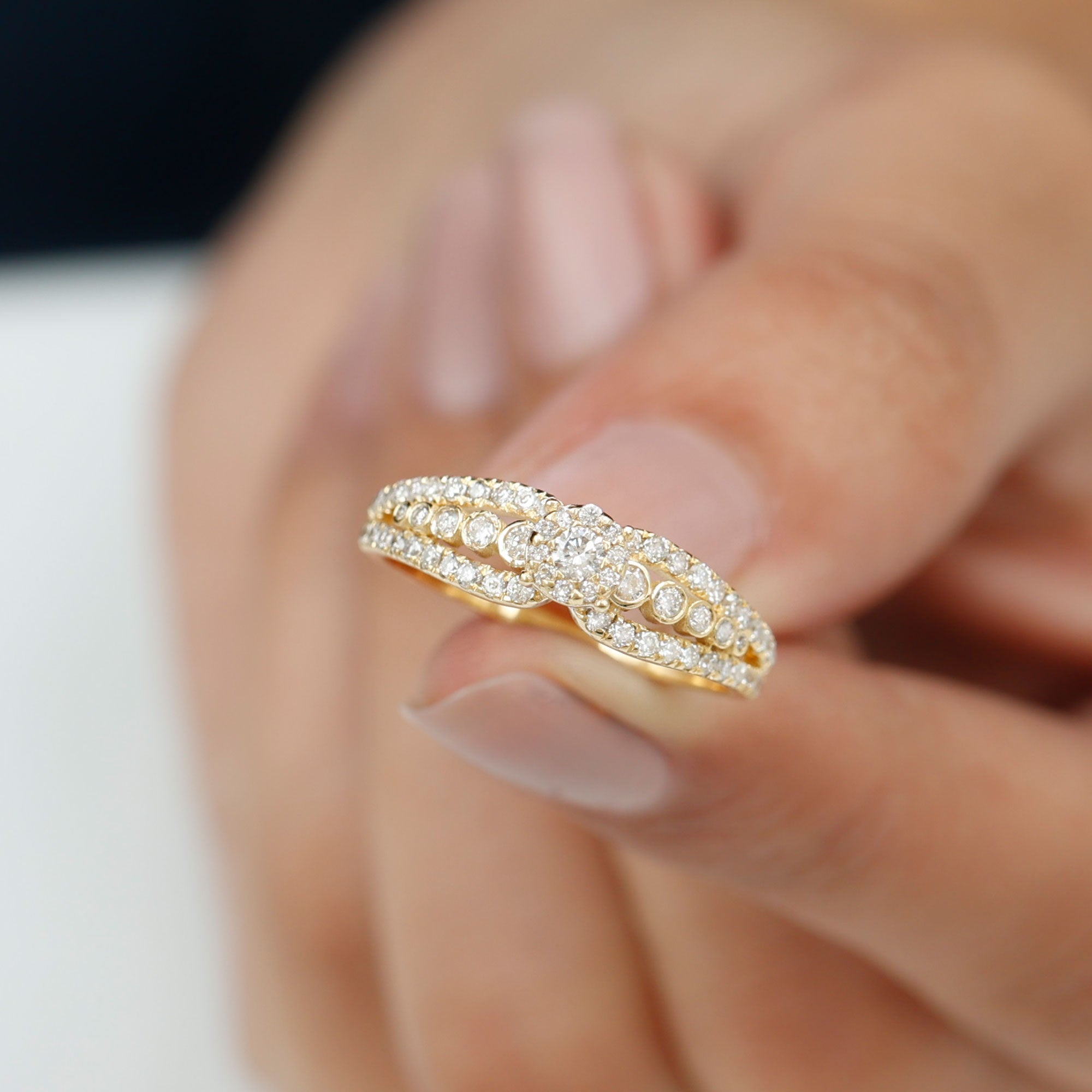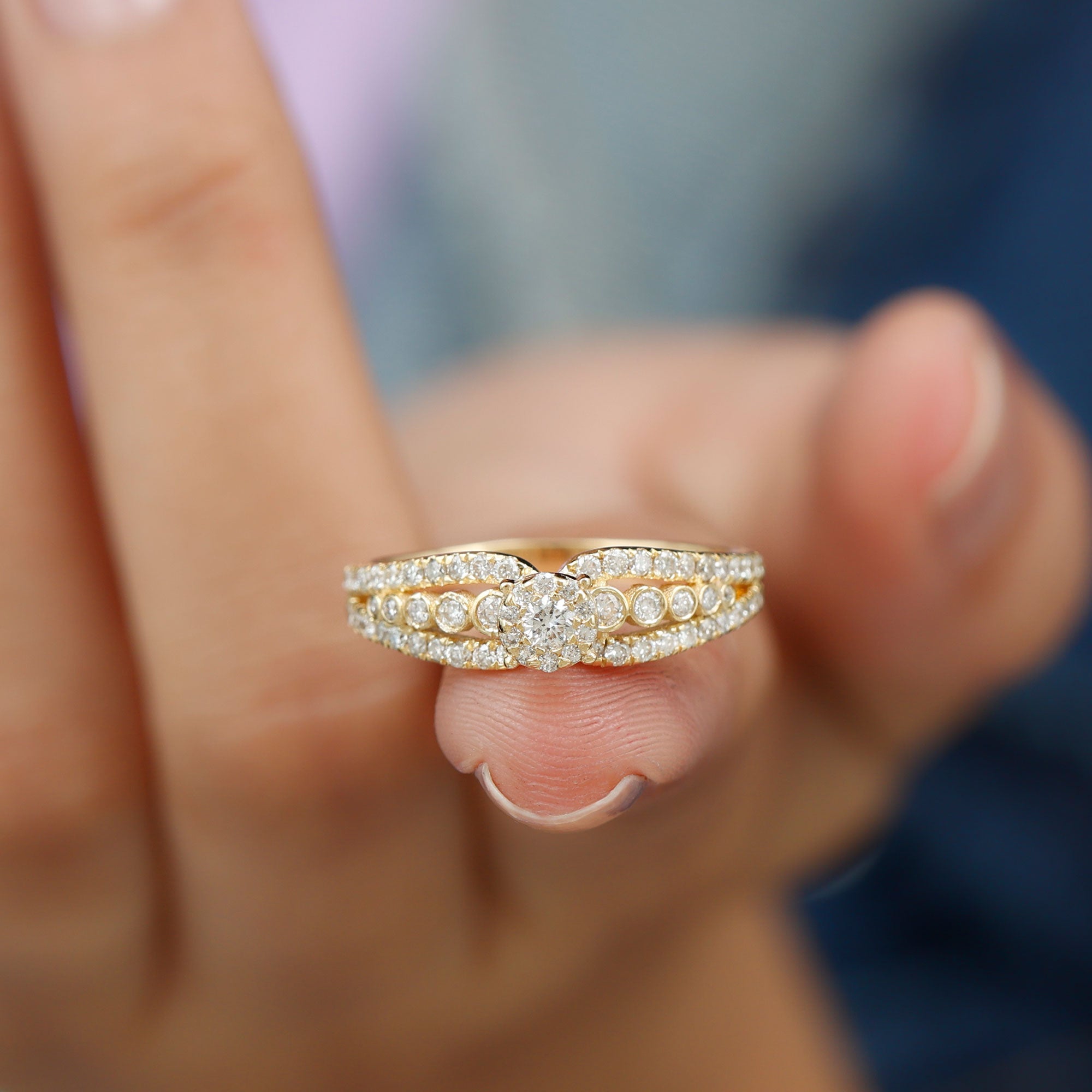 Enhance the beauty of your finger with this stunning Real Diamond Engagement Ring. This Designer Engagement Ring is crafted to celebrate the promises that matter most. It showcases beautiful round cut diamonds at its center, set in illusion style, radiating passion and purpose, along with delicate side stones. Made with HI-SI Quality, this Diamond Ring for Women is not just lovely but also perfect for engagements, anniversaries, or simply to express that you are forever mine. Its classic design exudes effortless elegance, with just the right amount of charm to attract attention without being over the top. From romantic proposals to delightful surprises, this Side Stone Engagement Ring creates unforgettable moments that linger in your heart. Available in a range of ring sizes, this Unique Diamond Ring is designed to fit every hand comfortably. Adorable, elegant, and truly heartfelt, it is like that special love moment you wish to experience again and again. This exquisite Diamond Ring is the ideal statement piece for a proposal, featuring a unique and designer pattern.