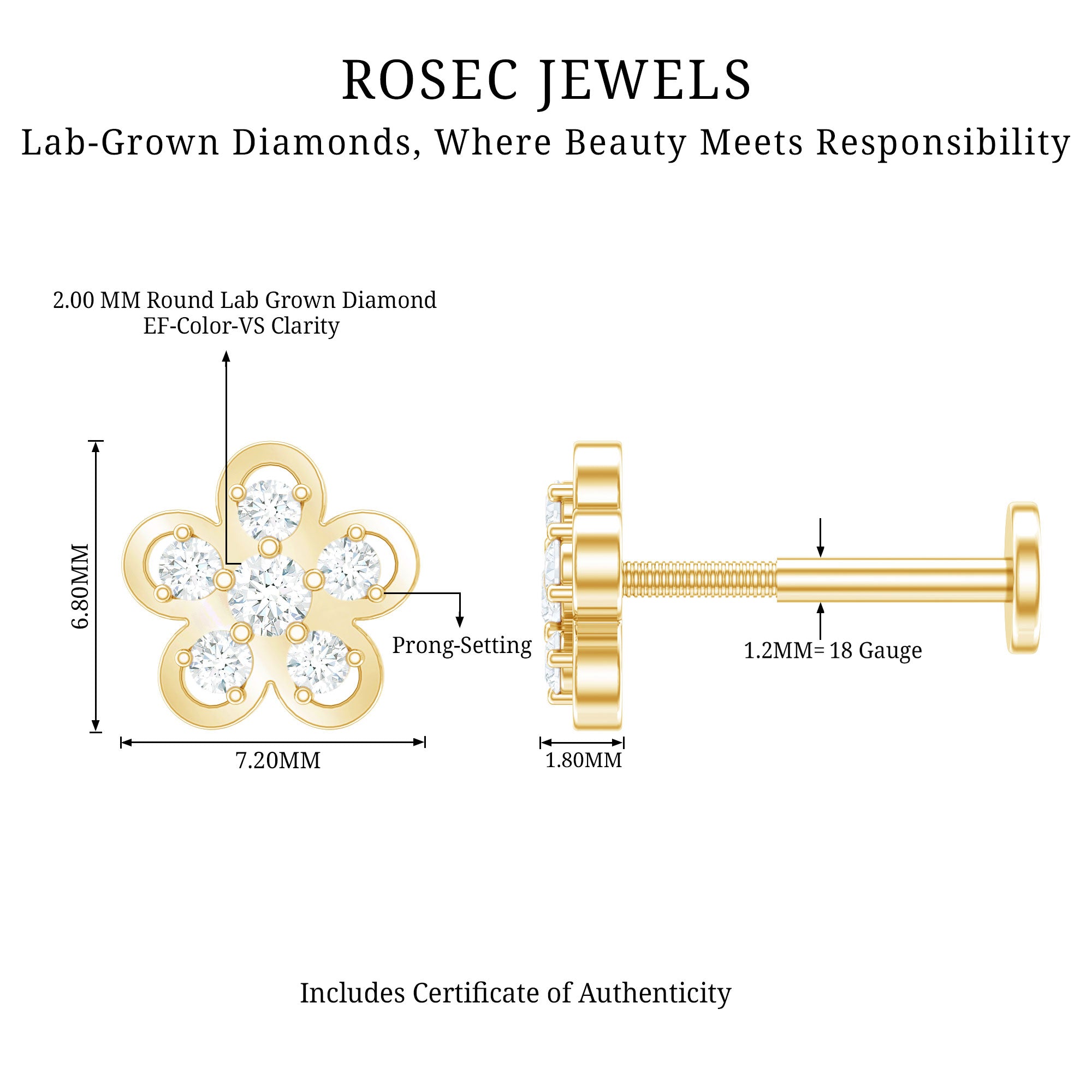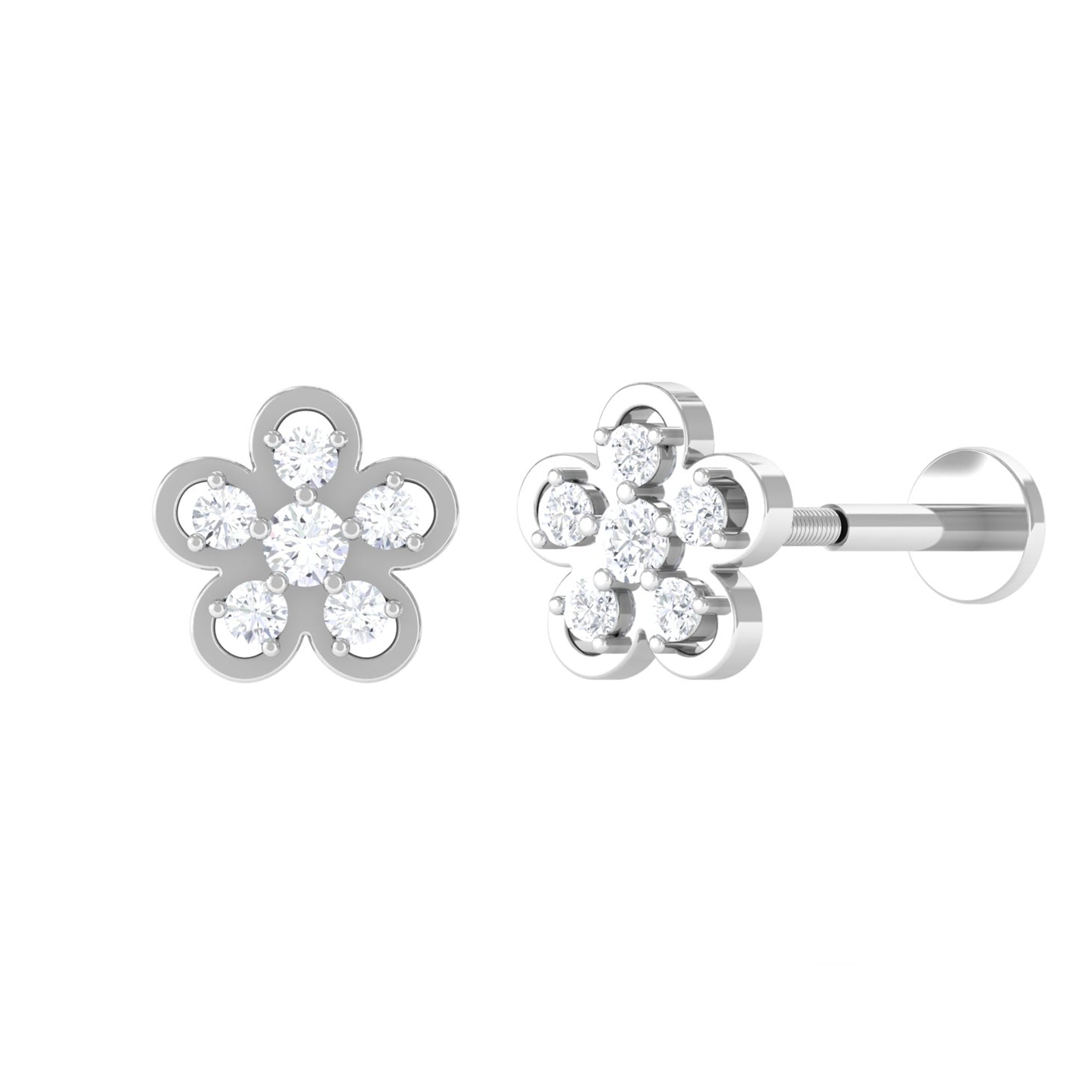 Perfectly adorable! Our Diamond Floral Earring features glistening Round Shape Diamonds delicately arranged in Prong Setting, on a captivating flower design. This Helix Piercing Earring stands out as a remarkable piece of jewelry, capable of transforming any mundane outfit into a vibrant and more appealing ensemble with its distinctive vibe. Suitable for Helix, Cartilage, Upper Lobe, and Conch Piercings, this Diamond Floral Earring offers versatile styling options. Elevate your anniversary celebration by gifting your beloved a Diamond Earring that is sure to capture her heart with its timeless beauty.