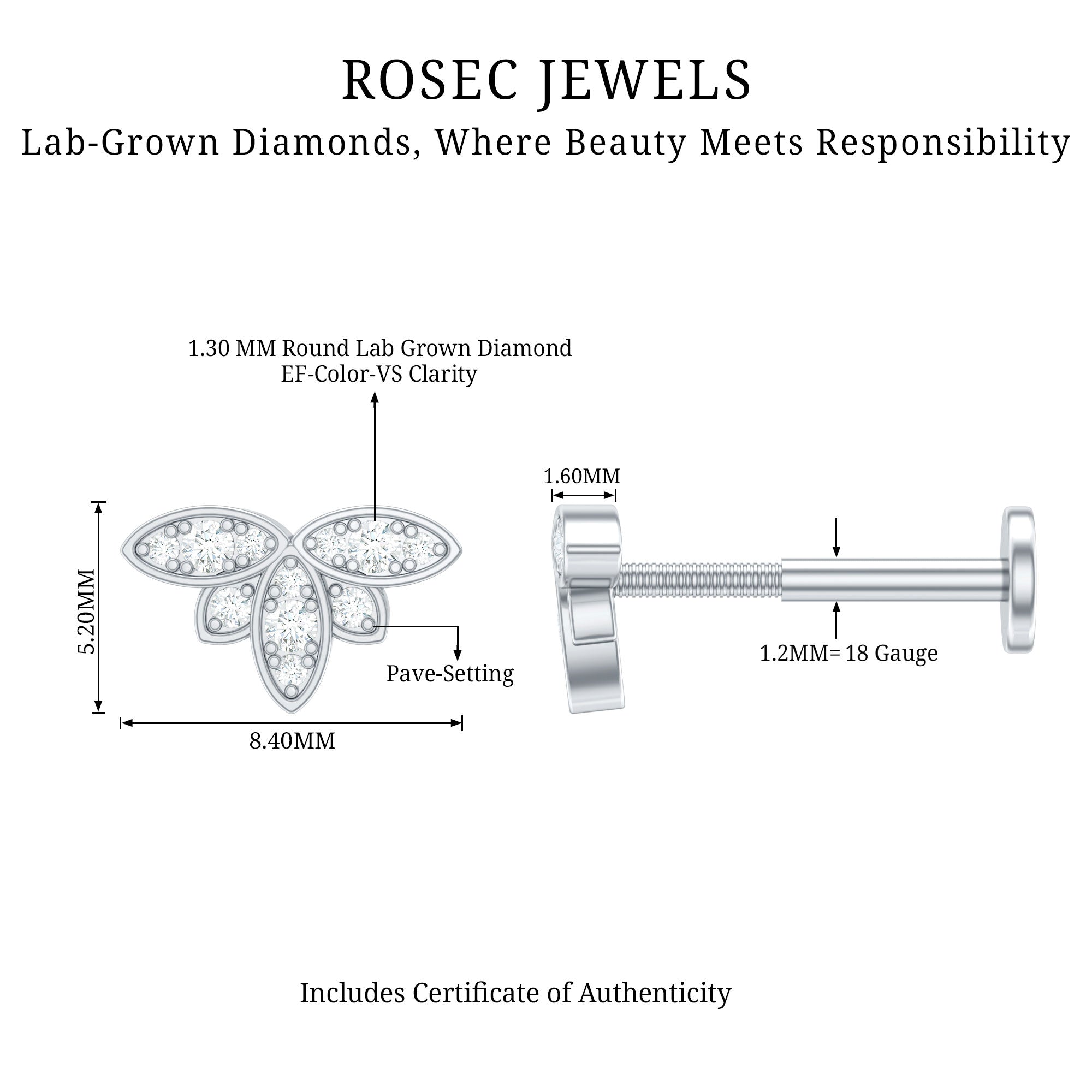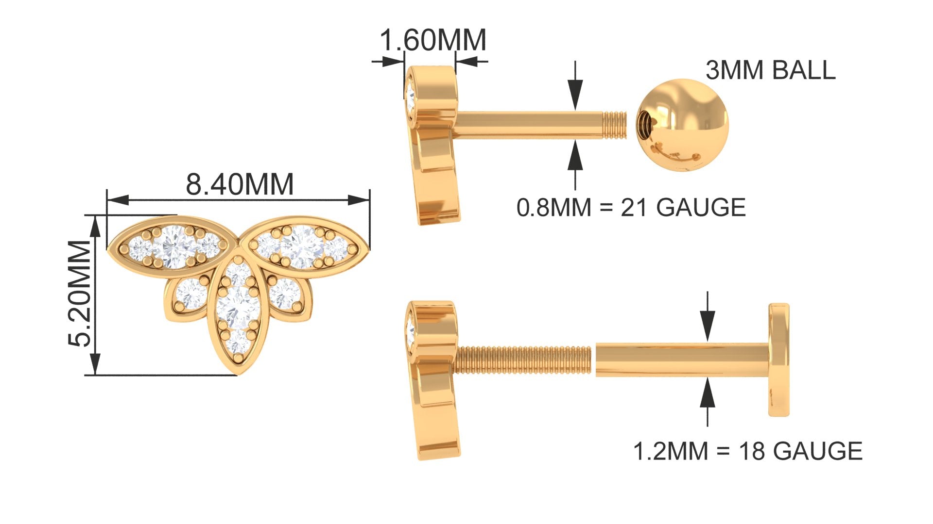 This charming and stunning Diamond Floral Earring is embellished with Round Shape Diamonds studded on a floral design. Whether you wear this Diamond Earring alone or stack it up with your other ear piercing jewelry, this earring is gonna shine forever.You can style this Diamond Flower Earring in your Helix, Cartilage, or Upper Lobe Piercing. Worried about falling off? Fret Not, the Flat Back Closure will keep it all intact with your piercing. No need to take it off, even while sleeping. If you want to add an instant touch of glamour to your ear stack, go with this Floral Earring.