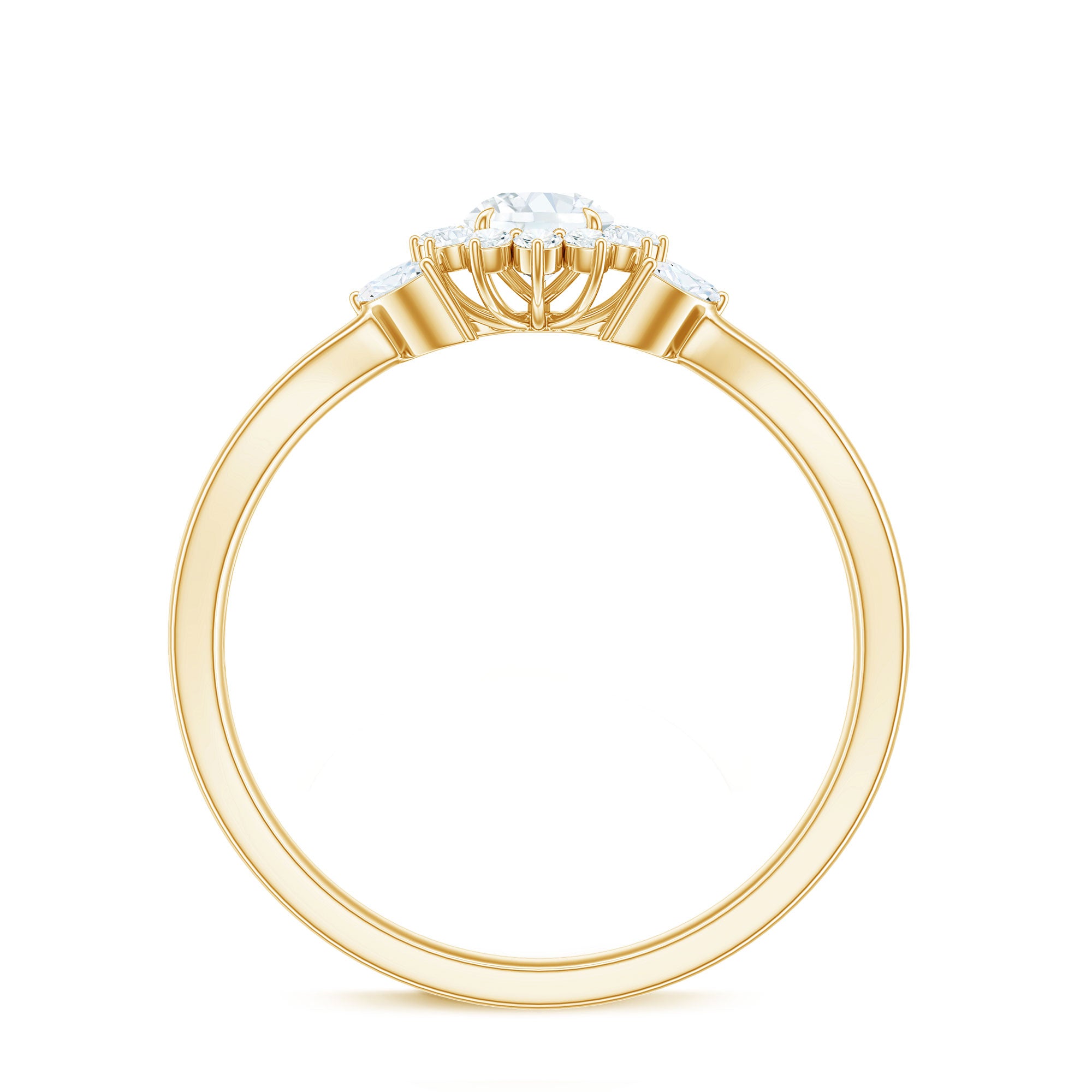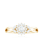 This Real Diamond Engagement Ring features a beautiful floral design, making it an ideal piece to celebrate your special day. It is a delicate and elegant piece that feels like a dream come true, inspired by the beauty of nature to create a feminine look. The ring showcases a 4 MM Round Shaped Diamond set in Claw Setting. With a Round Diamond Halo and additional Marquise Cut Stones, it resembles a delicate leaf, enhanced by a Split Shank. Crafted with great attention to detail, this Diamond Flower Engagement Ring highlights a floral motif. The intricate design paired with a timeless style makes the Diamond Halo Ring a fantastic choice, capturing the magical feelings tied to each bloom while honoring natural beauty. The HI Color SI Clarity diamond provides a unique variety of styles to elevate your appearance. Beautifully packaged in a signature jewelry box, this Split Shank Engagement Ring is ready to be gifted and cherished. Let your love shine with a sparkle that is gentle on the environment and perfect for your happily ever after. This Flower Ring exudes luxury and elegance, making it an absolutely stunning choice.
