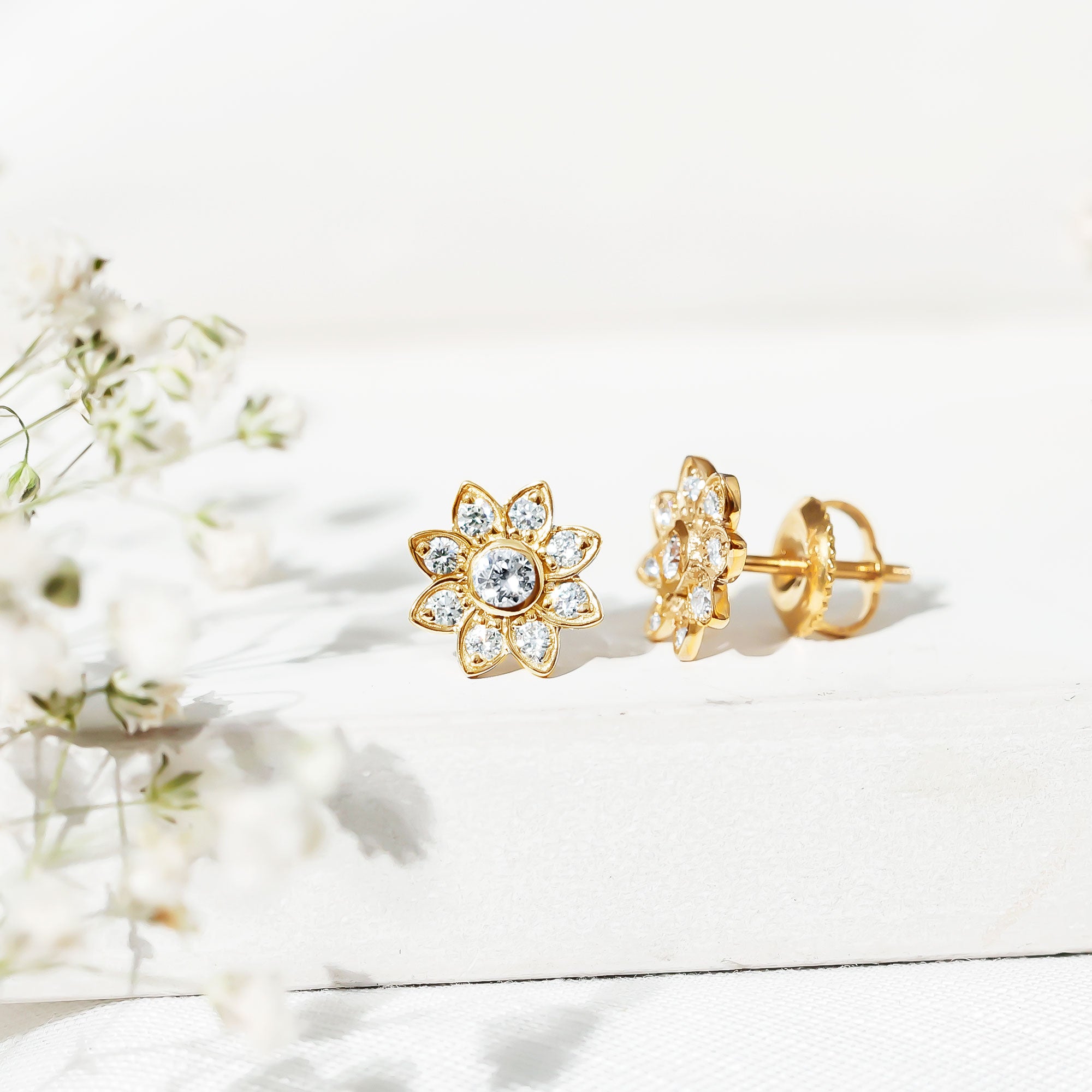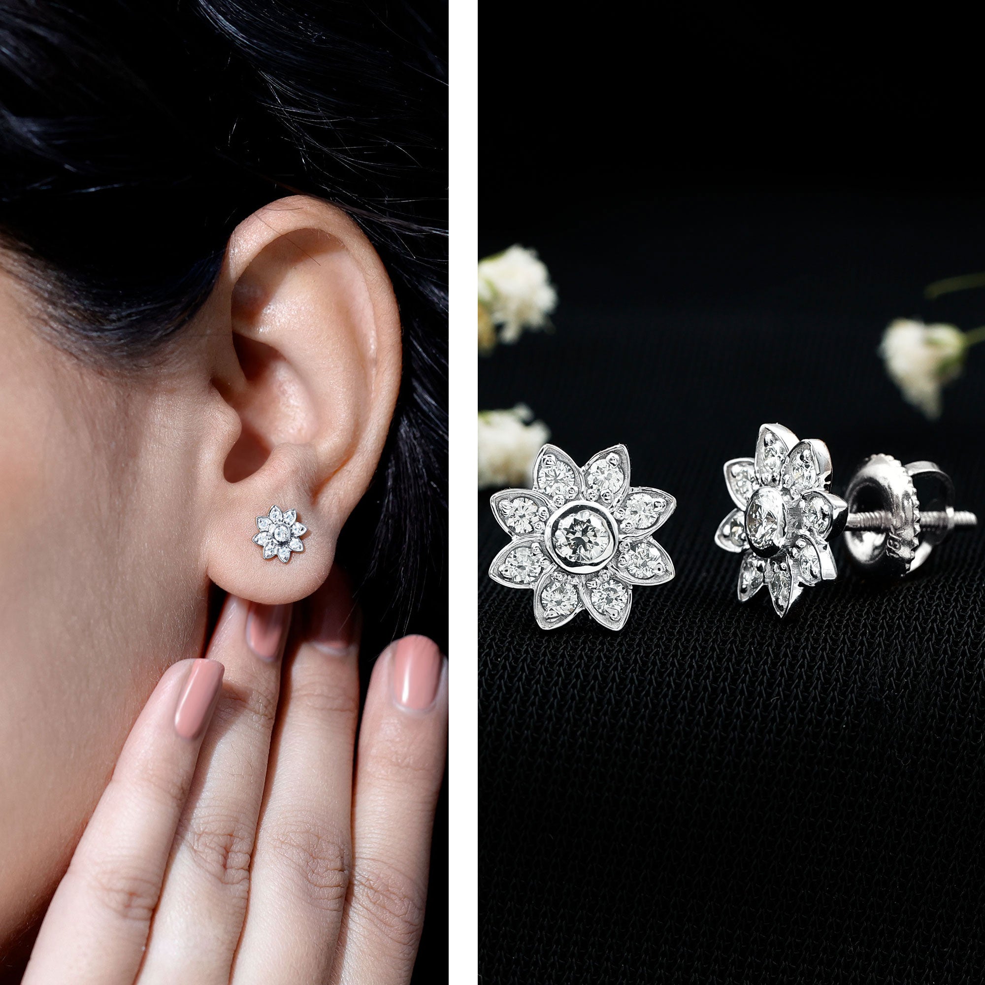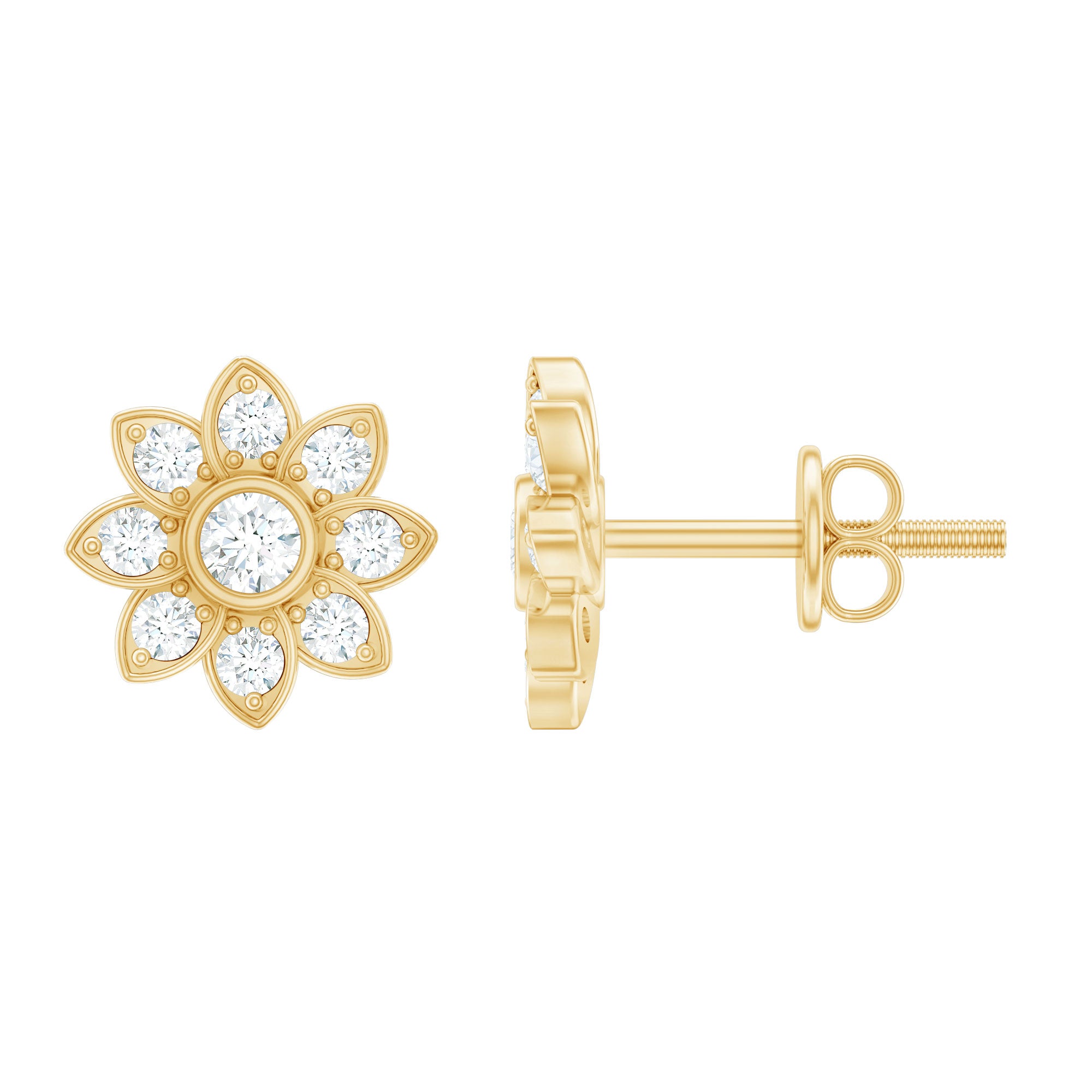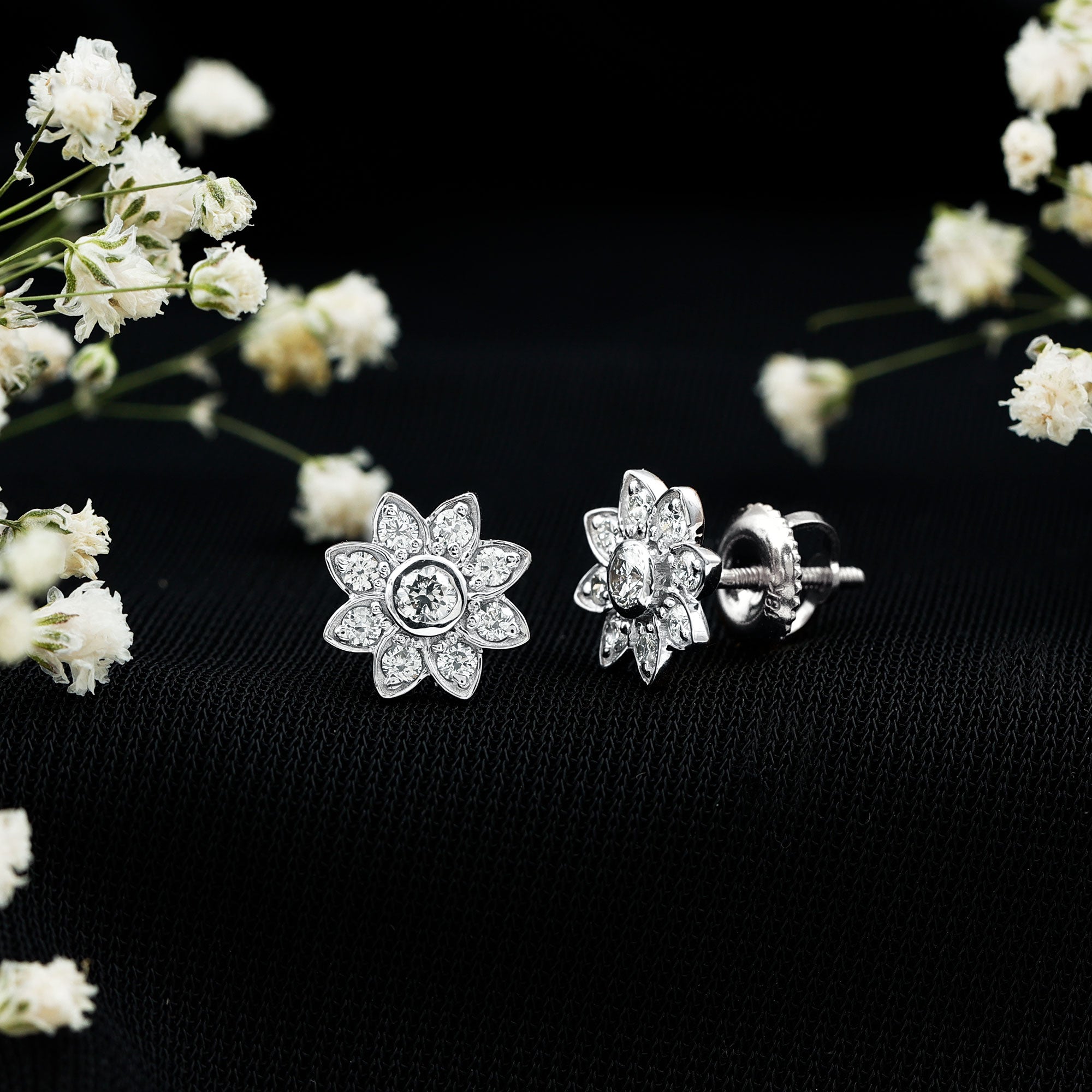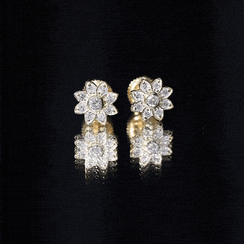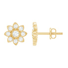 Diamond Flower Stud Earrings With Screw Back
