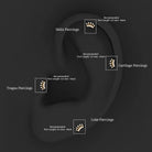 Highlight the boldness and mystery with our Diamond Helix Earring. Crafted with precision, this stunning Diamond Earring features captivating Diamonds. The earring embraces a unique and edgy look with their gothic inspired design. This stunning earpiece is perfectly suited for Helix and Cartilage piercings. Exude mystique and elegance with these earrings, a striking addition to your ear stack collection. This Diamond Earring is ideal for those who seek unconventional beauty and a touch of enigmatic.