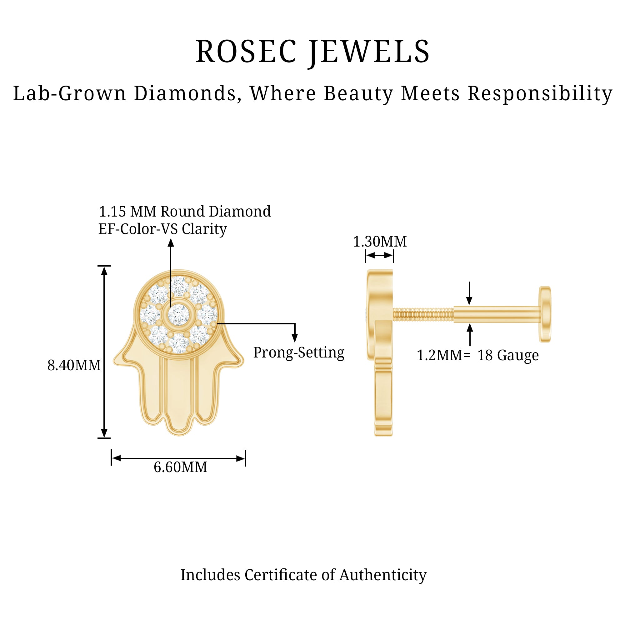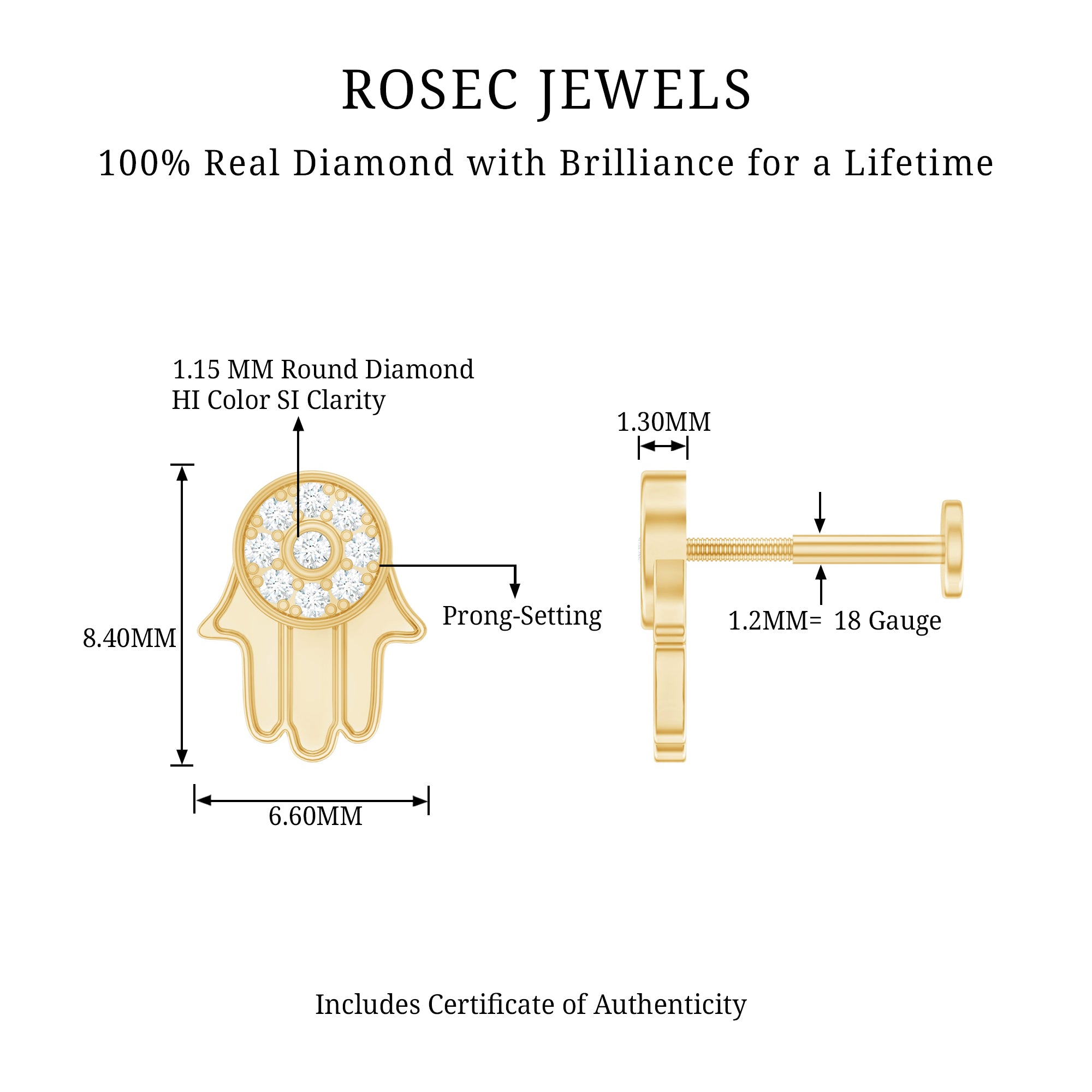 Unveil the magic of the Hamsa – a symbol of protection, health, and pure joy! Behold an artful depiction in this swirling earring, adorned with Round Shape Diamonds in a dazzling Pave Setting on the powerful symbol. Whether on your helix, cartilage, or upper lobe, this meaningful and trendy Diamond Hamsa Earring will elevate your style game. Did not just wear jewelry, adorn yourself with good fortune and happiness! Perfect for you or that friend who deserves a touch of magic.