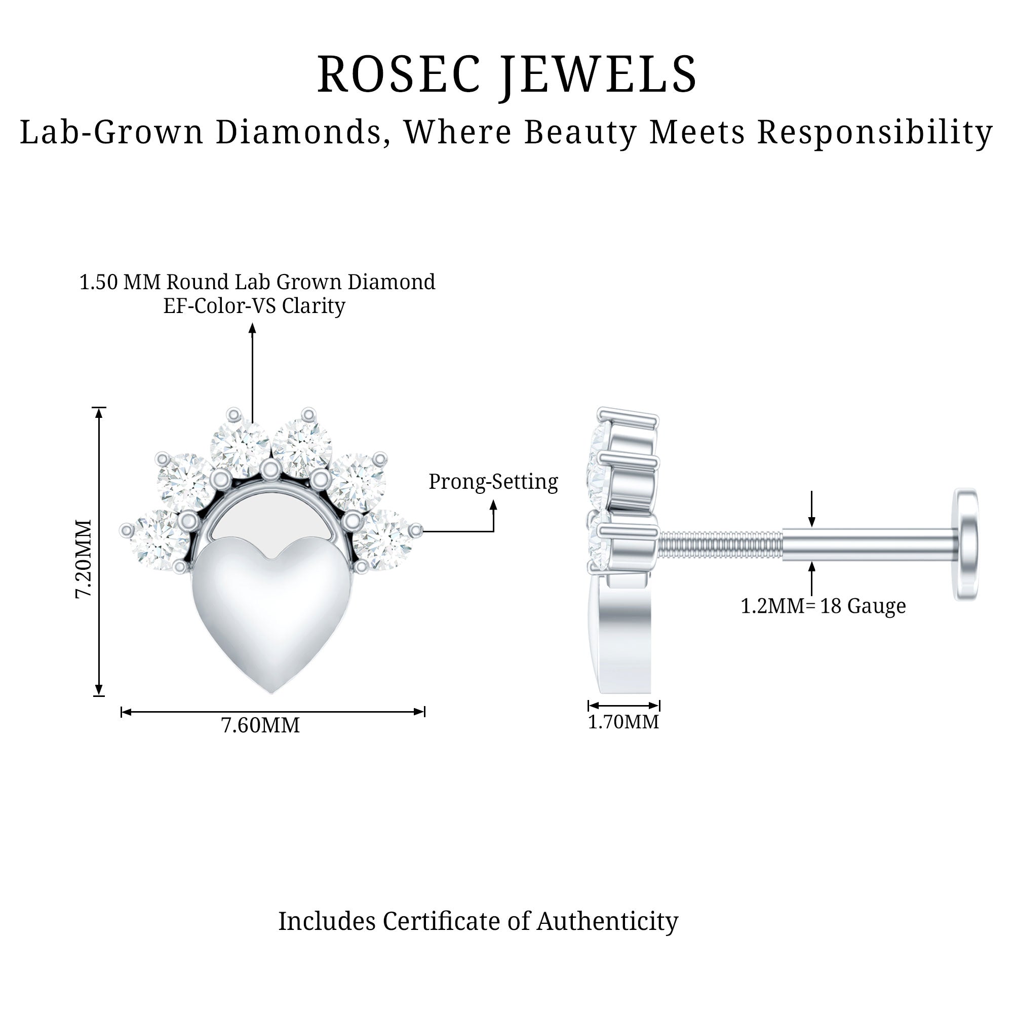 Everyone will be astonished when they will witness you flaunting this Diamond Heart Conch Earring. Bejeweled with Round Diamond in Prong Setting studded on the top of a unique heart design for an eye-catching appearance. This Diamond Earring is perfect to be worn on your Helix, Cartilage, Tragus, Conch, or Upper Lobe Piercing. The Piercing Earring is best known for its incredible charm that will complement your casual, formal, and party attire beautifully. Grab this Diamond Helix Earring for your beloved wife as an anniversary, birthday, or mothers day gift, and wait for her priceless reaction.