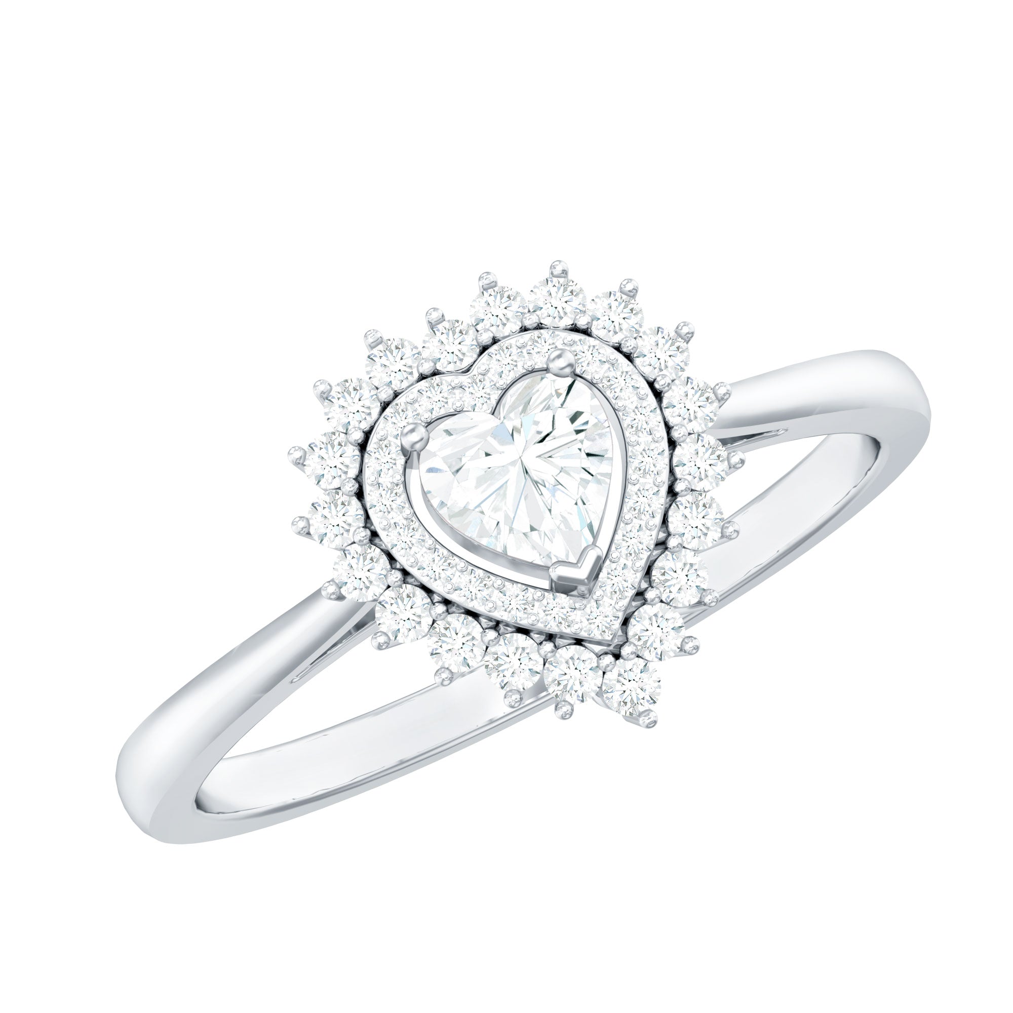 Diamond Heart Engagement Ring with Double Halo