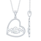 Present your mother with a beautiful token of love in the form of a gold heart pendant, featuring a tilted open heart frame inscribed with the word Mom in a hammered style. This stunning pendant is also adorned with a sparkling round diamond at its center, adding an extra touch of elegance to the already exquisite design. Its a heartwarming gift that she will cherish for years to come.