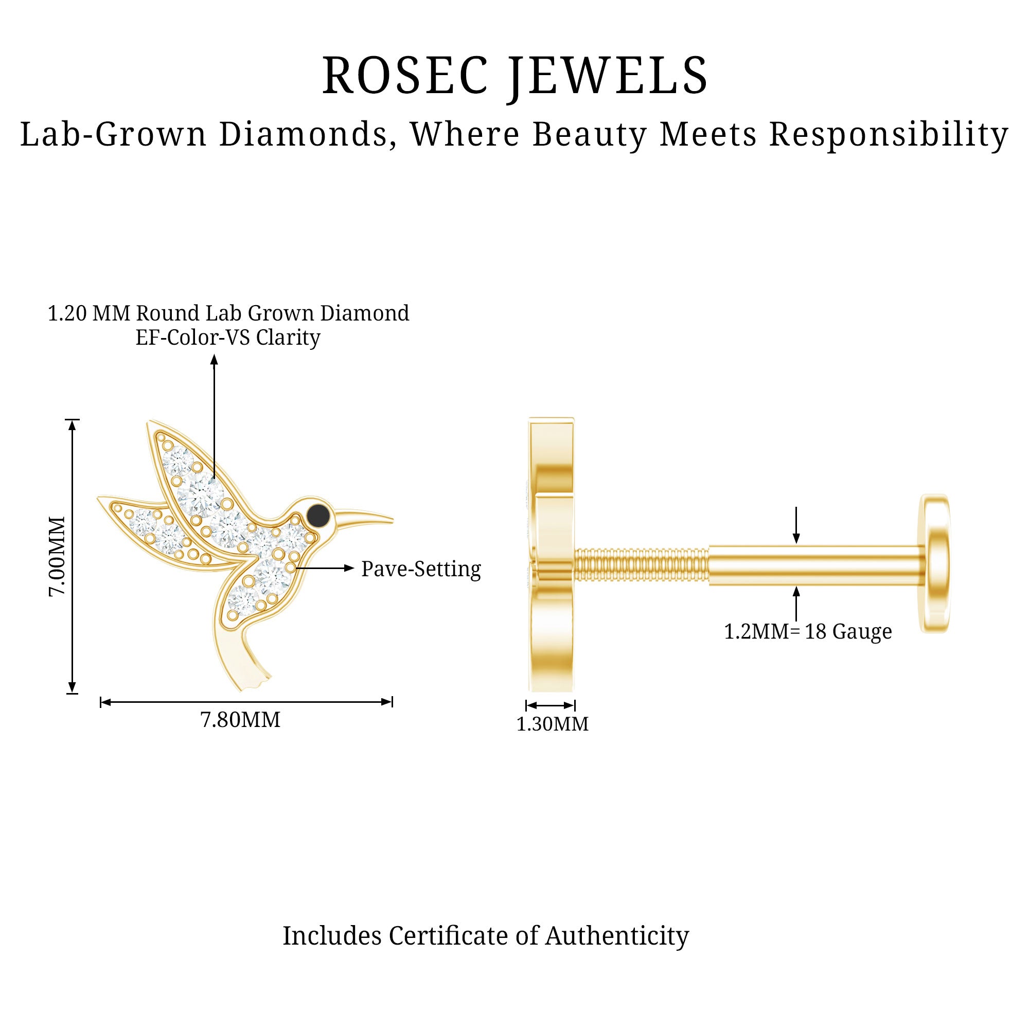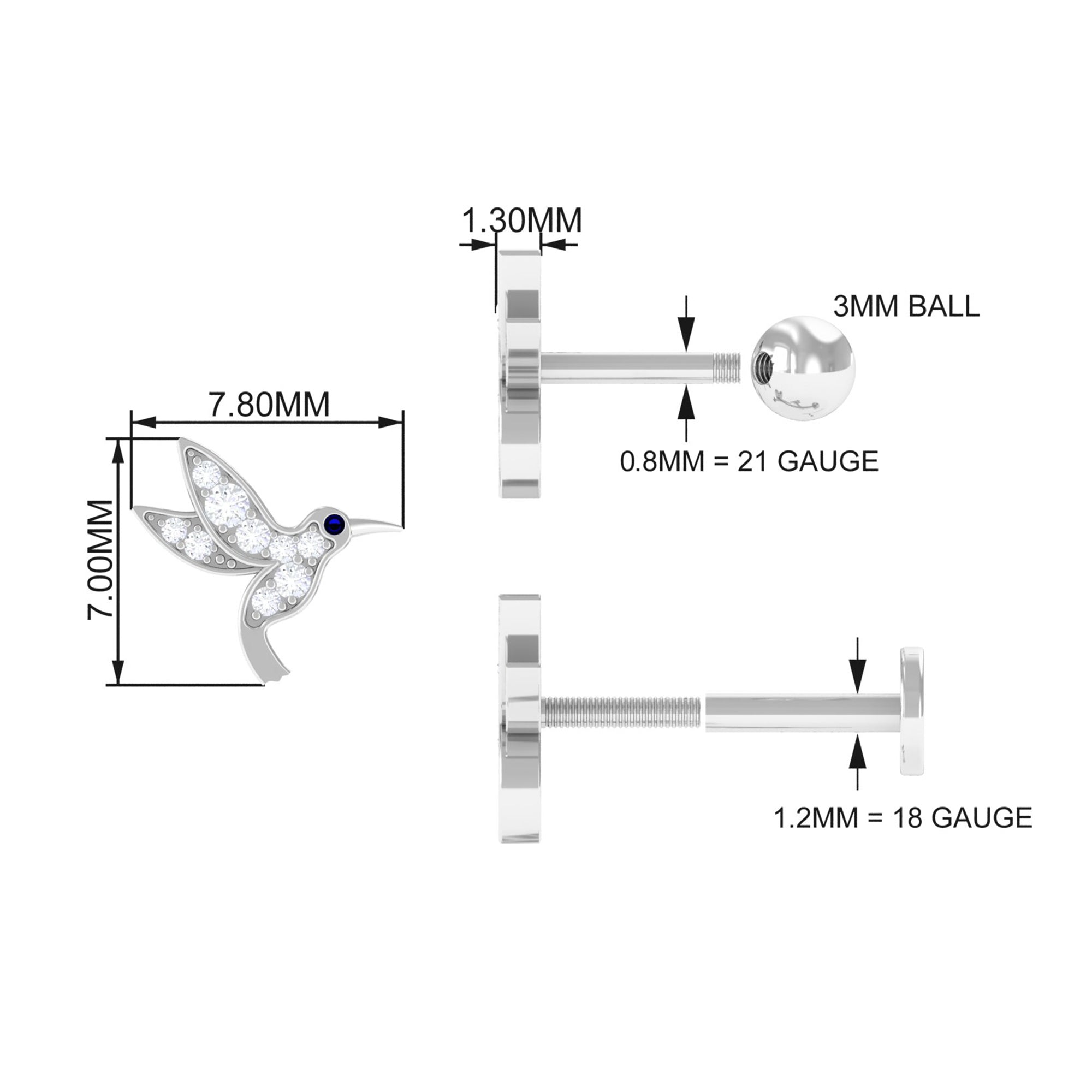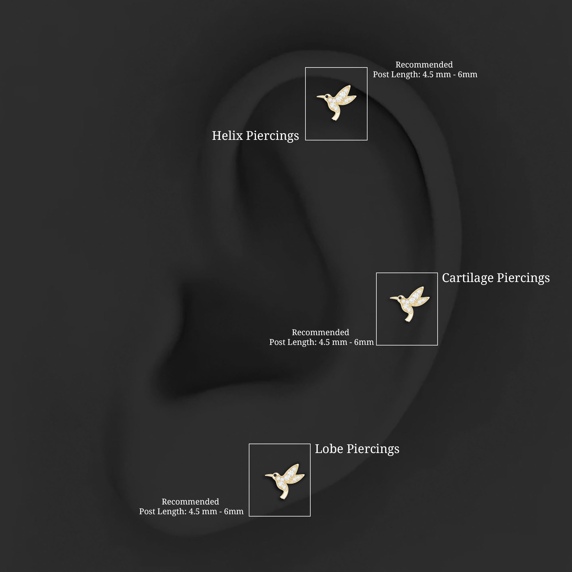 Love a playful and chic look in your earring stack? Then you need this Diamond Hummingbird Earring.This earring features a cute hummingbird bird design, encrusted with sparkling Diamonds, making this earpiece more unique and special.Grab this Piercing Earring to create the ear stack of your dreams! This earring will be ideal for your Helix, Cartilage, Conch, or Upper Lobe Piercing. Surprise your special ones with this Diamond Earring to make them special and loved.