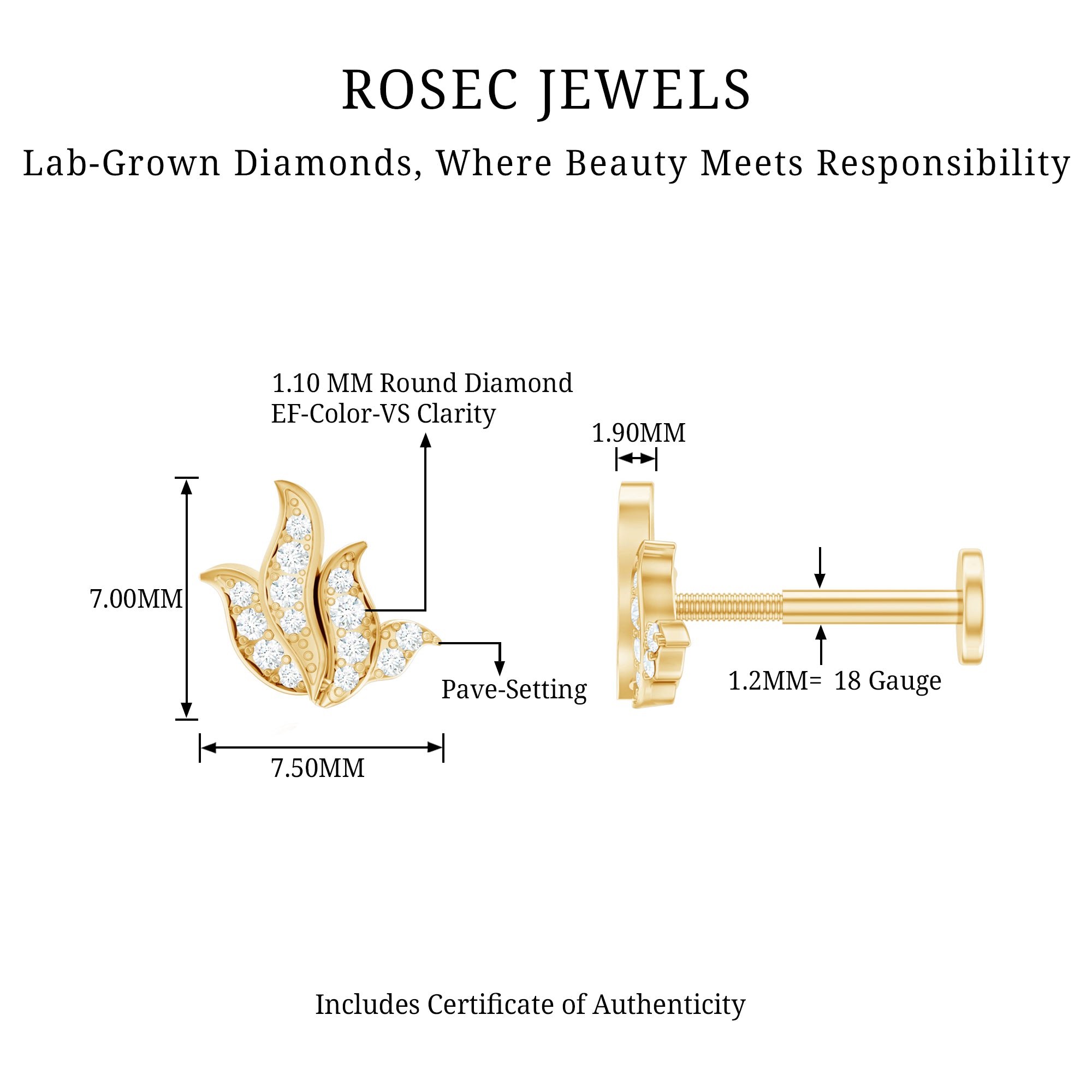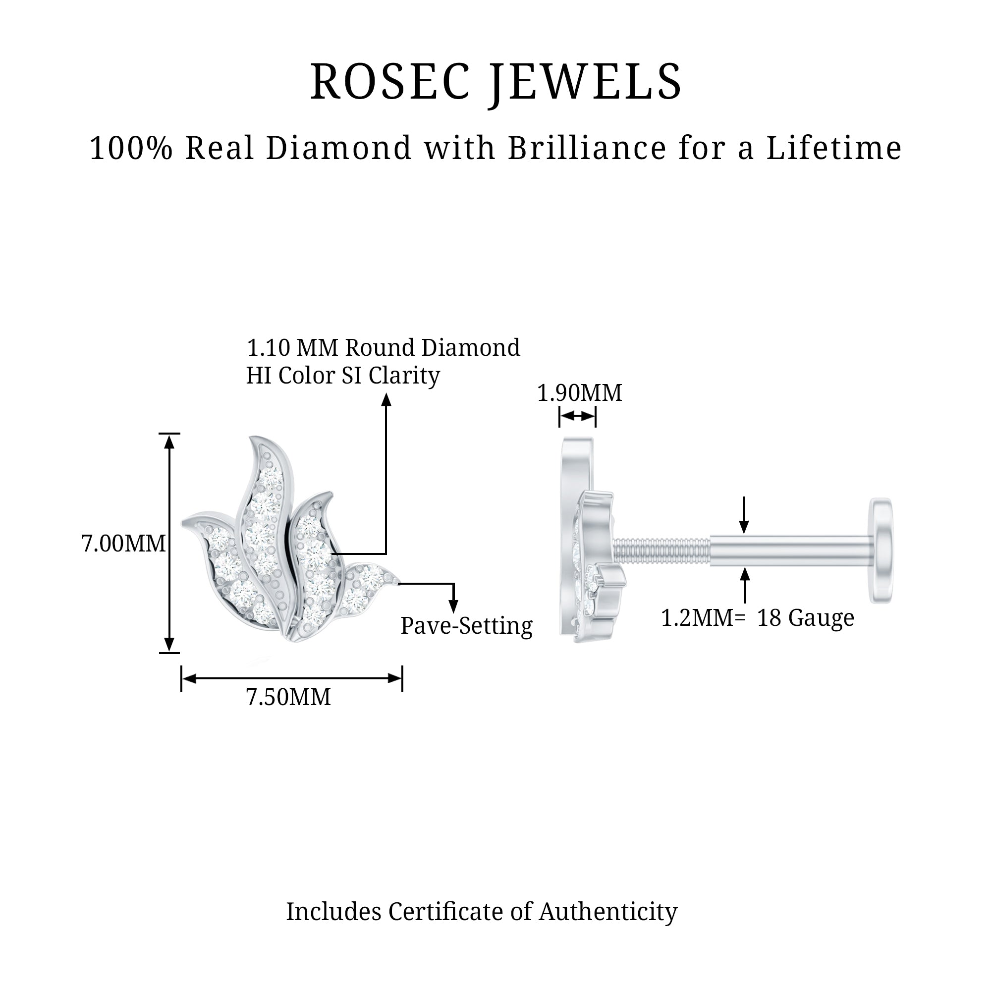 Let your beauty bloom with the stunning Diamond Leaf Earring! Elevate your look with this Nature-Inspired dazzler, adorned with Round Diamonds in a Prong Setting on a Leaf Branch Design. Style this radiant Diamond Earring on your Helix, Cartilage, or Upper Lobe Piercing, featuring a Flat Back Closure for that snug and secure fit. Because why settle for ordinary when your partner deserves extraordinary? Gift your leading lady a symbol of affection with our breathtaking Diamond Leaf Earring. Its time to let her shine!