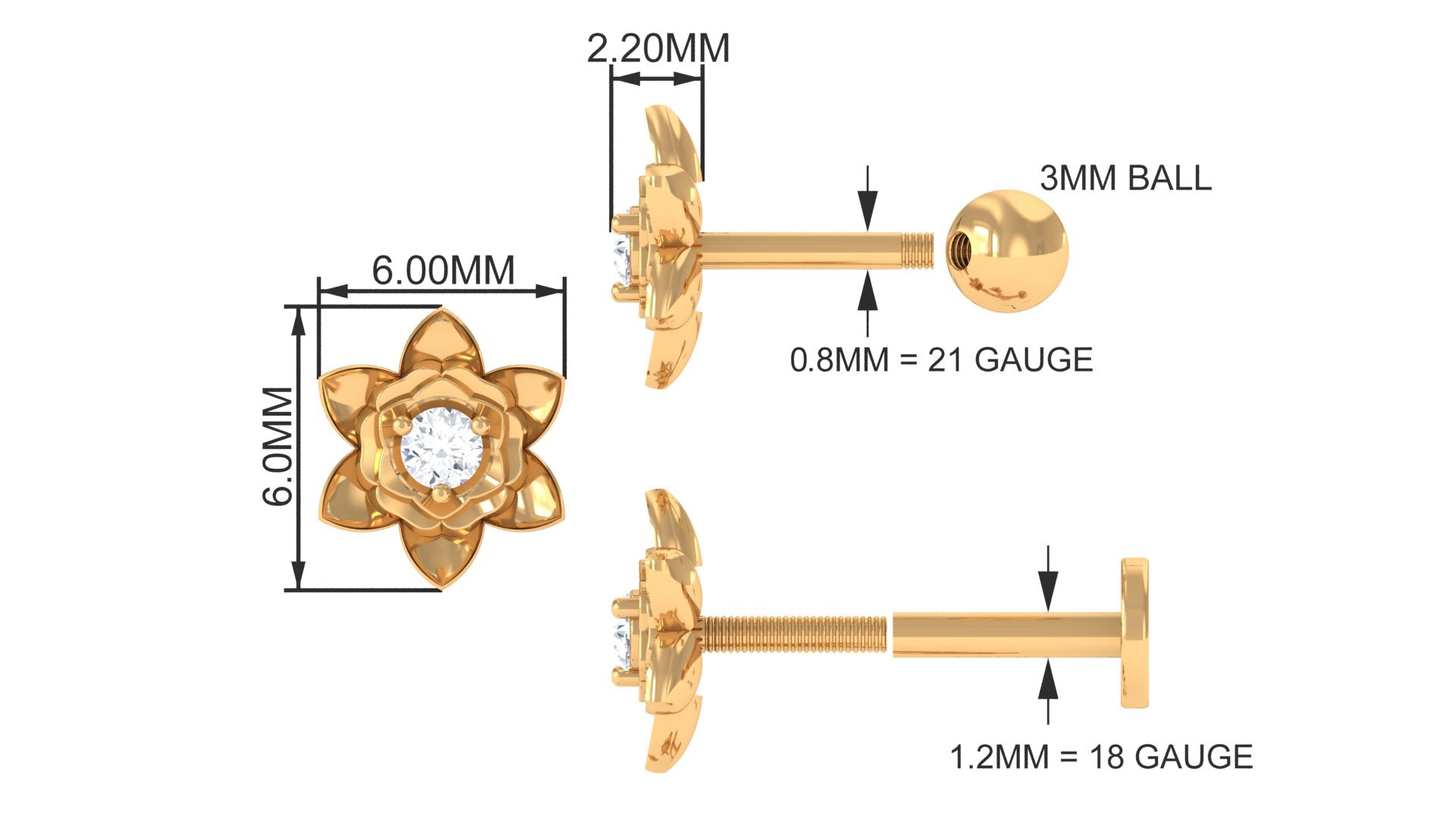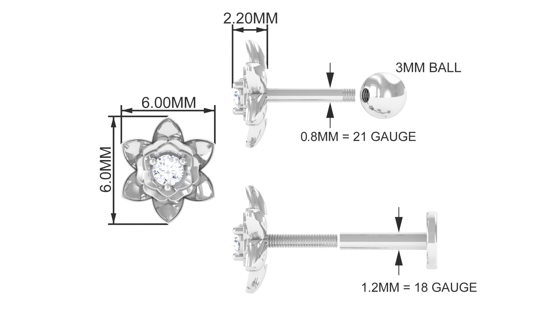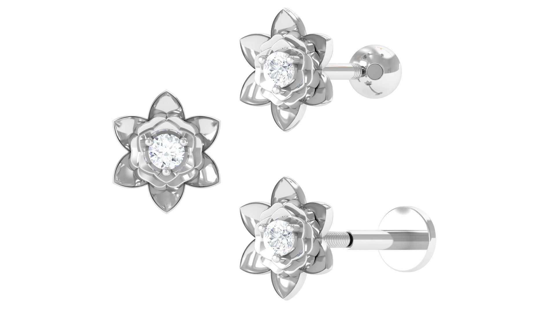 This Diamond Lotus Flower Earring makes every piercing sparkle. Featuring a Round Shape Diamond (Authentically Certified) secured by 3 Prong Setting in the center of a floral design. You can slide this Diamond Floral Earring into your Helix, Cartilage, Conch, or High Lobe Piercing. This earring is crafted with Hallmarked Metal for a shiny look. Here is a tip - You can effortlessly ace any look by stacking this Floral Earring with your other piercing earrings. Want to treat yourself then Grab this Diamond Piercing Earring and shine bright (you know to want to).