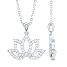Add a touch of nature-inspired elegance to your look with this stunning Diamond Lotus Necklace. The pendant features a delicate lotus flower design, expertly crafted in gleaming metal and encrusted with a sparkling Round Diamond in Pave Setting. This elegant Lotus Flower Necklace is perfect for adding a touch of sophistication and glamour to any outfit, and makes an ideal gift for someone special. This Diamond Lotus Floral Pendant Necklace is sure to captivate with its intricate design and timeless beauty. Let its shimmering diamonds and delicate floral motif elevate your style and make you feel like a true natural beauty. The simplicity of the Diamond Necklace for Women is punctuated with charm and serenity that radiates wherever you go. The luxury, drama and mystery of this Diamond Pendant Necklace is designed to evoke the spirit of the show in a fun and playful way. So, shimmer and sparkle just as the lotus comes up from the bud, which is pure when it opens. Symbolizing enlightenment and determination, this Real Diamond Necklace combines the timeless beauty of the lotus flower with the captivating beauty of Natural Diamond.