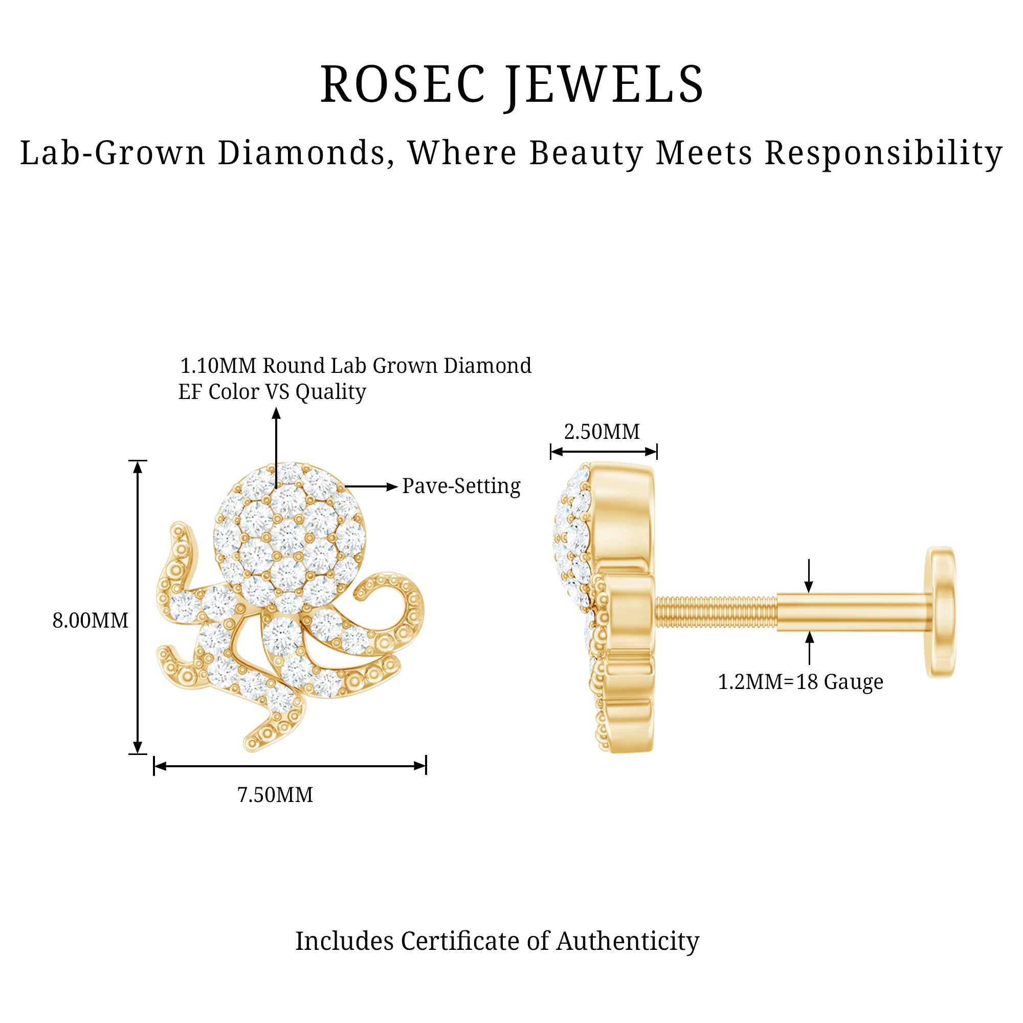 - This Stud Earring features round cut diamonds set in pave setting over a octopus shape, exuding an unmatched sparkle and complemented by hallmark metal.