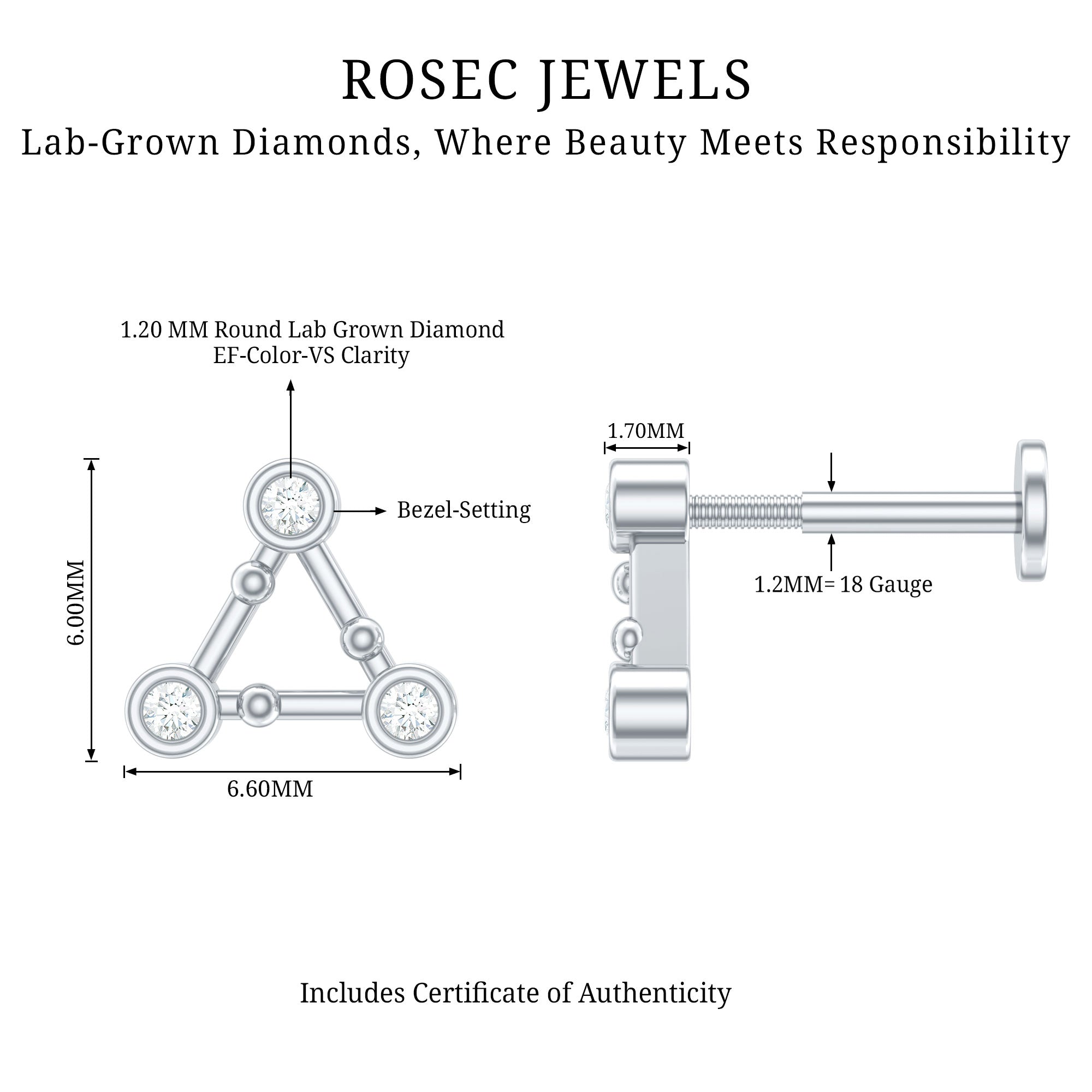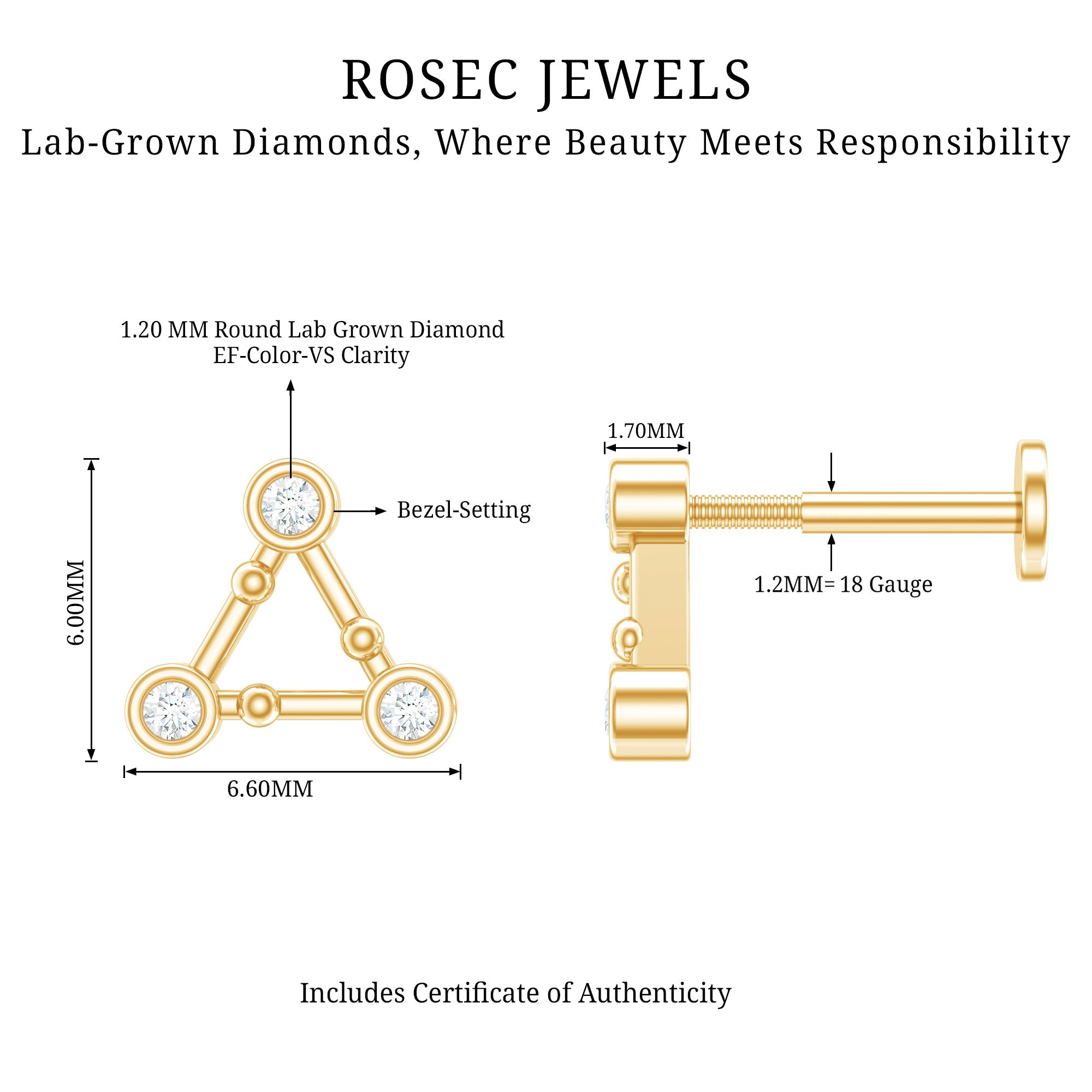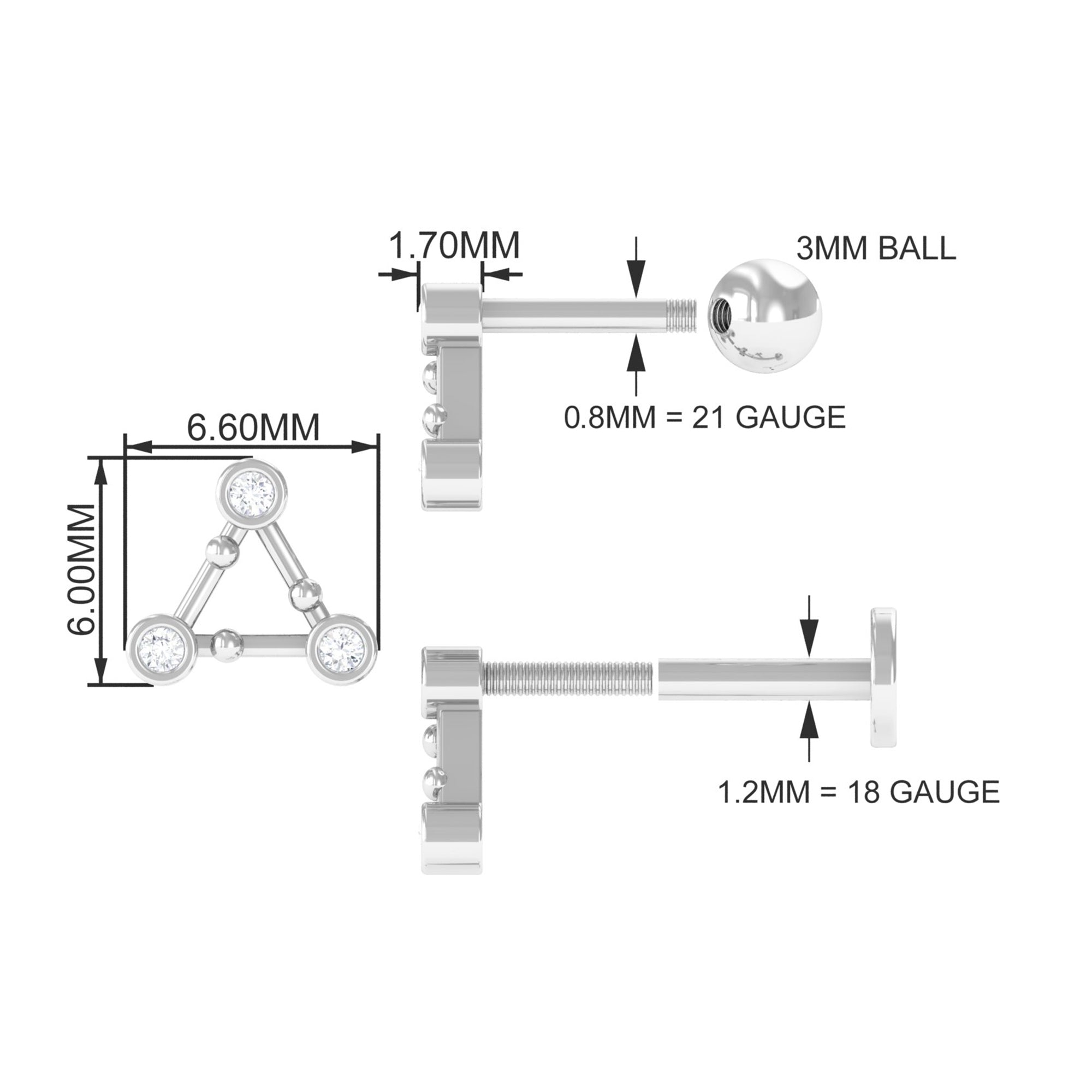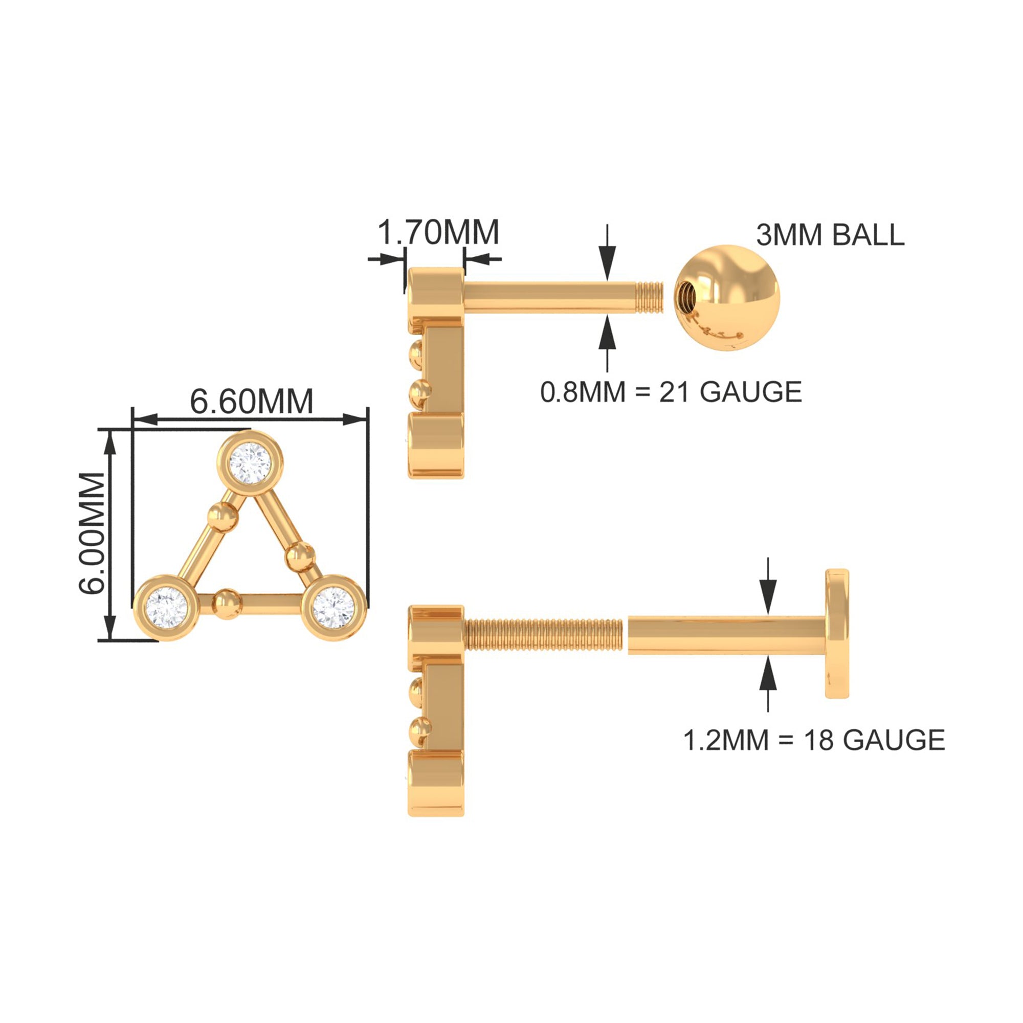 If you have enough room to stack your earrings and express your style in a unique way. All you need is this Diamond Open Triangle Earring.It showcases dainty Round Diamonds secured by Bezel Setting on a triangular design, crafted with Solid Metal. Perfectly designed to adorn your Helix, Cartilage, Tragus, or Upper Lobe Piercing, its the ideal piece of jewelry to effortlessly elevate your everyday or special occasion ensemble. Give the mesmerizing Diamond Geometric Earring to someone close to your heart as it makes a precious gift for her.