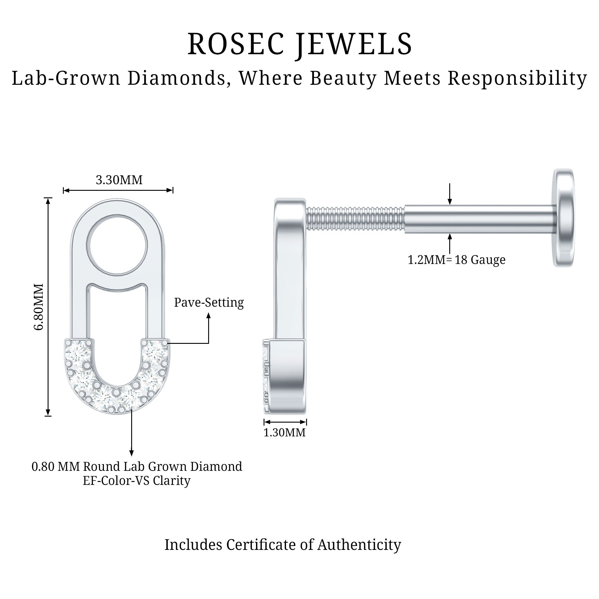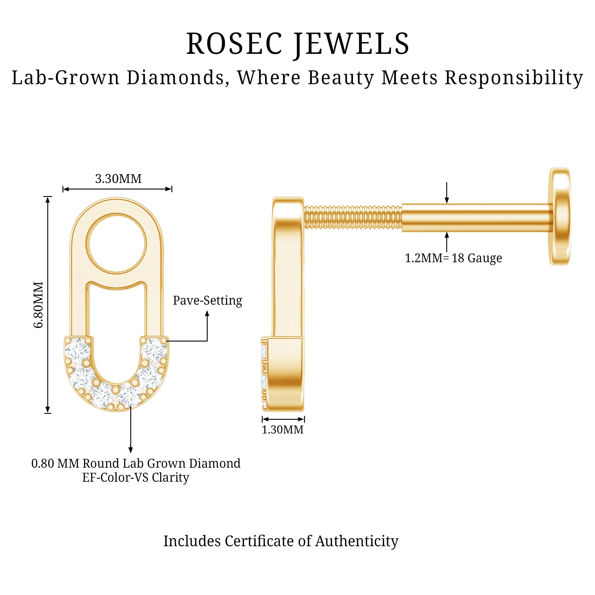Indulge in the irresistible allure of our trendsetting safety pin motif – a dazzling fusion of elegance and edge! This safety pin earring is embellished with shimmering diamonds, ensuring you strike the perfect balance between chic and daring.Slip on this comfortably chic Minimalist Earring, effortlessly enhancing your Conch, Helix, or Cartilage Piercing with an instant burst of dazzle and style.Go ahead, and treat yourself or a cherished one to the allure of the Diamond Earring today. Unveil a world of sophistication and sparkle!