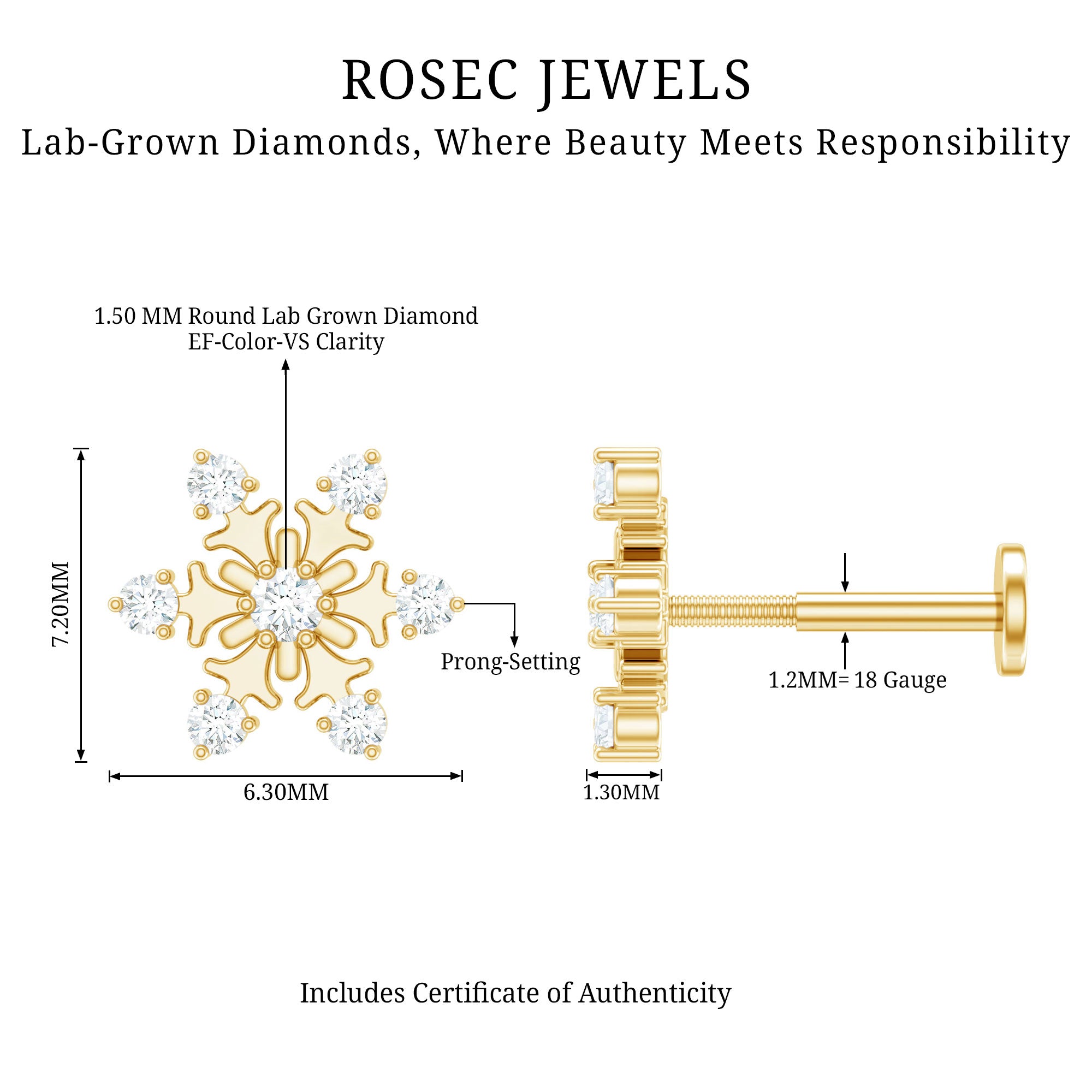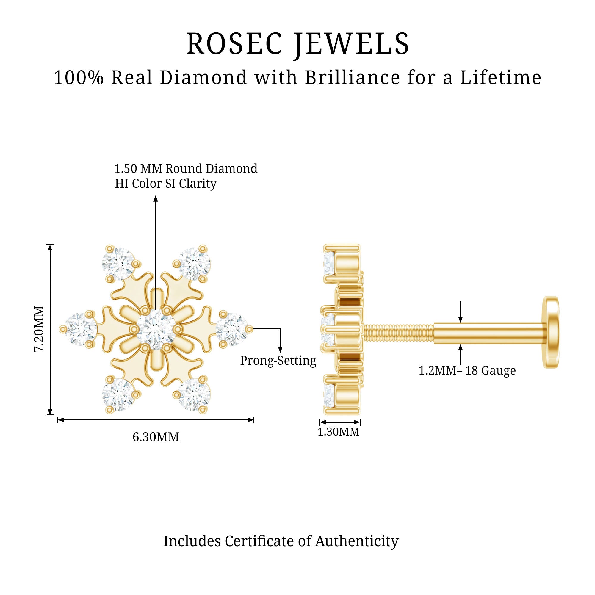 Embrace the unique beauty of snowflakes with this exquisite Diamond Snowflake Earring. This earpiece features a stunning snowflake design encrusted with dazzling round Diamonds in prong setting. This Snowflake Earring is uniquely designed to match your persona. You can wear this earring on your multiple piercings like Upper Lobe, Conch, Cartilage, or Helix Piercing to add a sparkling effect to your look.Surprise your loved one with this amazing earring, a thoughtful and stylish gesture to celebrate any special moment.