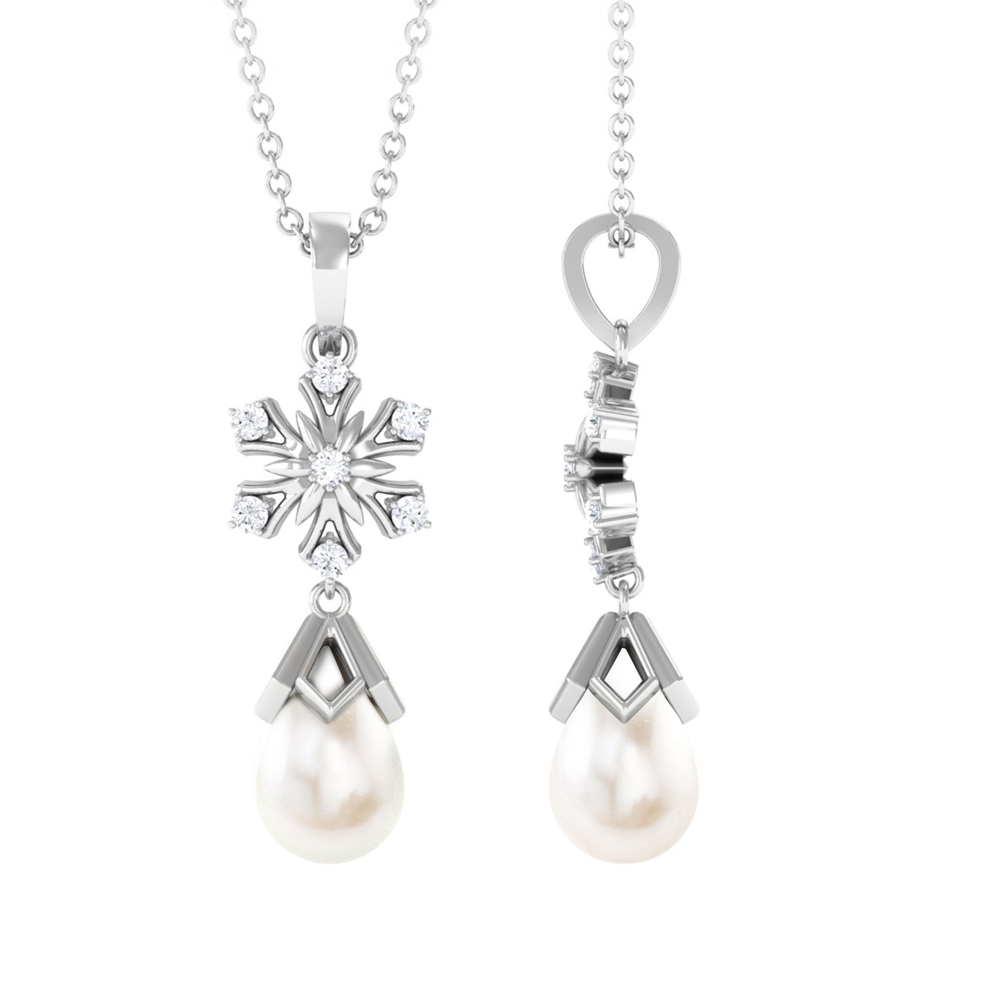 Diamond Snowflake Freshwater Pearl Dangle Drop Pendant