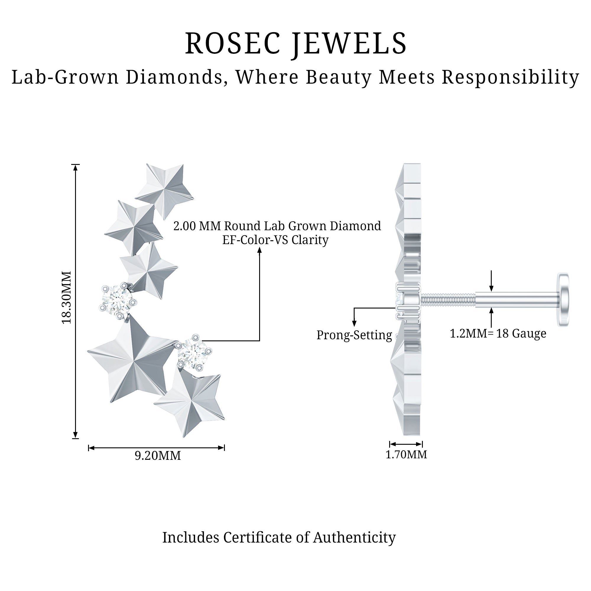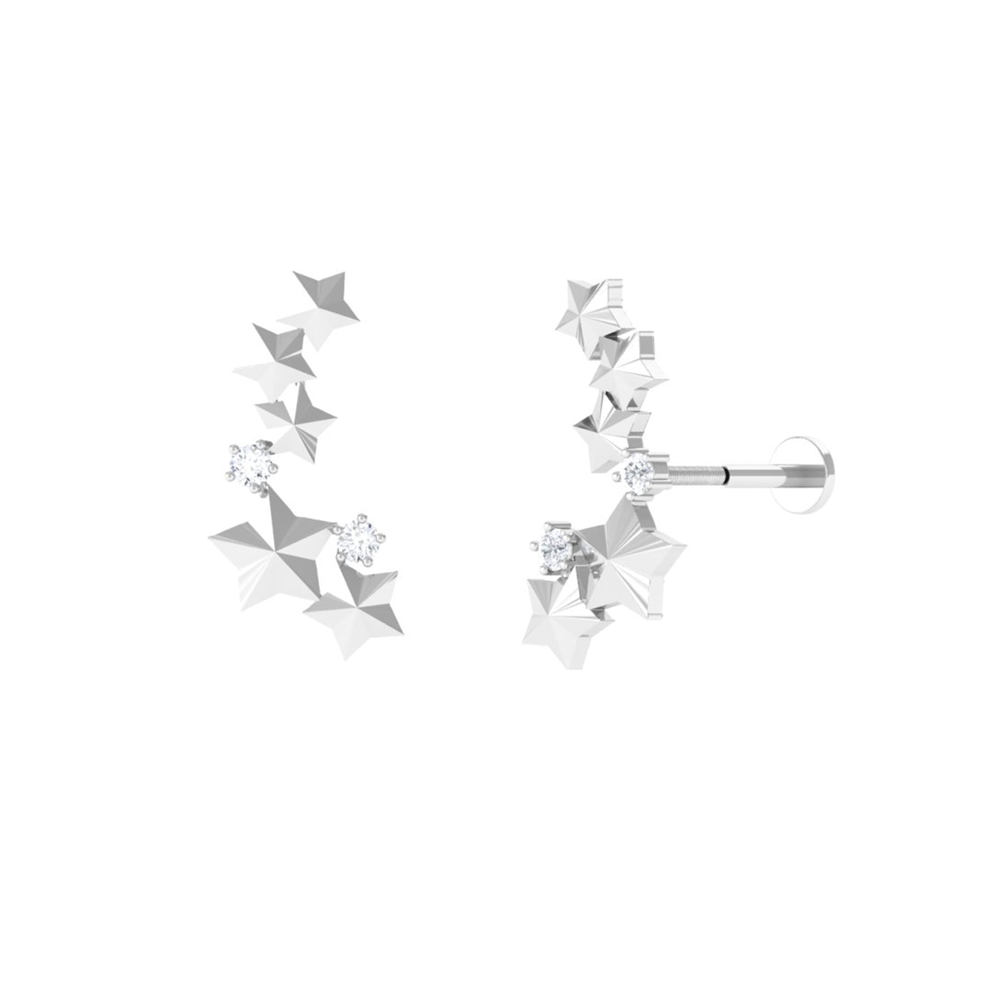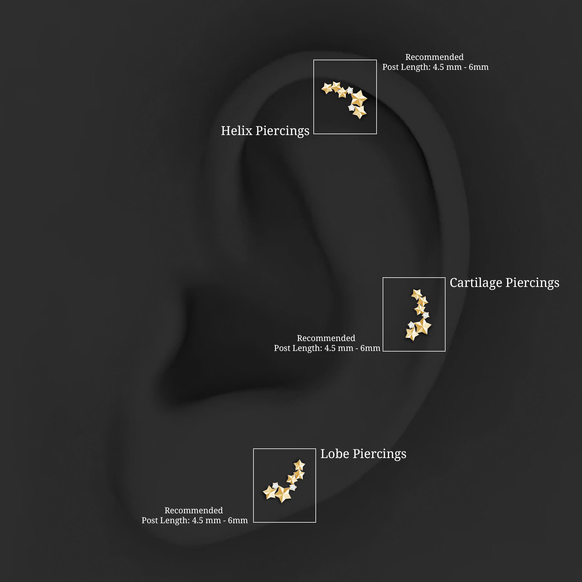 Get our stunning Diamond Celestial Earring – a celestial masterpiece that will elevate your style to new heights. Adorned with brilliant diamonds, this earring sparkles like a constellation in the night sky. The unique crawler design gracefully ascends your ear, creating a mesmerizing celestial trail. The earring is perfect for any occasion, from casual gatherings to formal events, this earring adds a magical touch to your overall look. You can wear this earring on the Helix, Cartilage, or Upper Lobe Piercing. This Star Celestial Earring is ideal as a gift for a loved one or as a self-indulgent treat to celebrate life special moments.